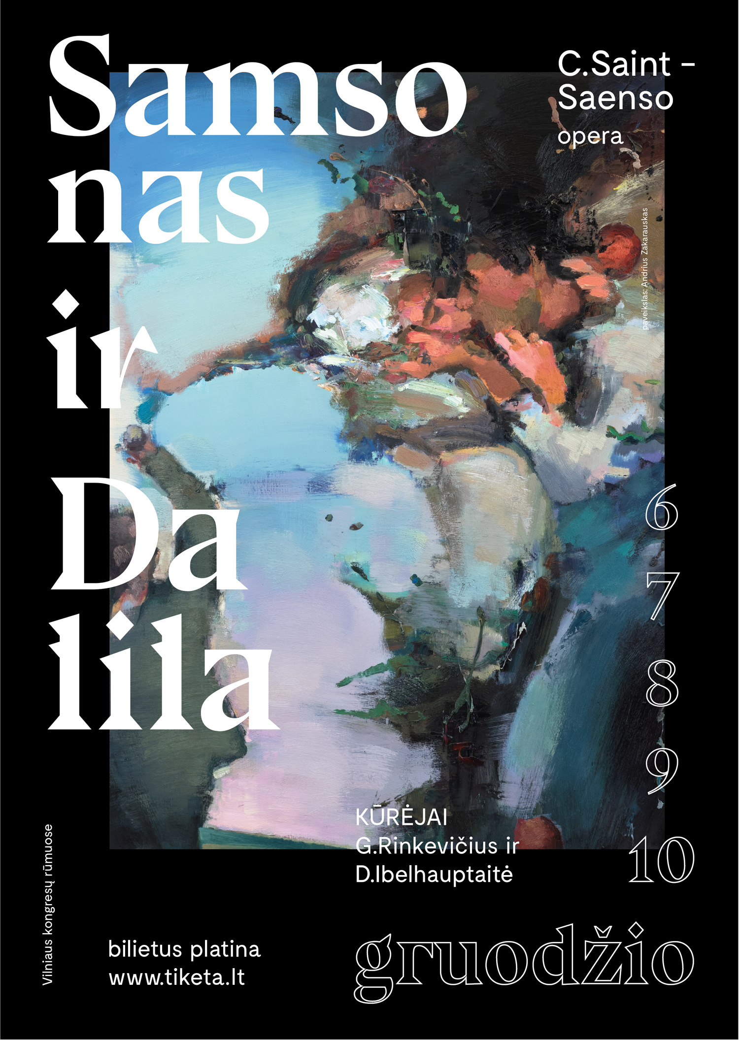 Poster for the performance of Camille Saint-Saëns’ opera Samson et Dalila at the Vilniaus kongresų rūmai (Vilnius Congress Hall), directed by Dalia Ibelhauptaitė and conducted by Gintaras Rinkevičius.