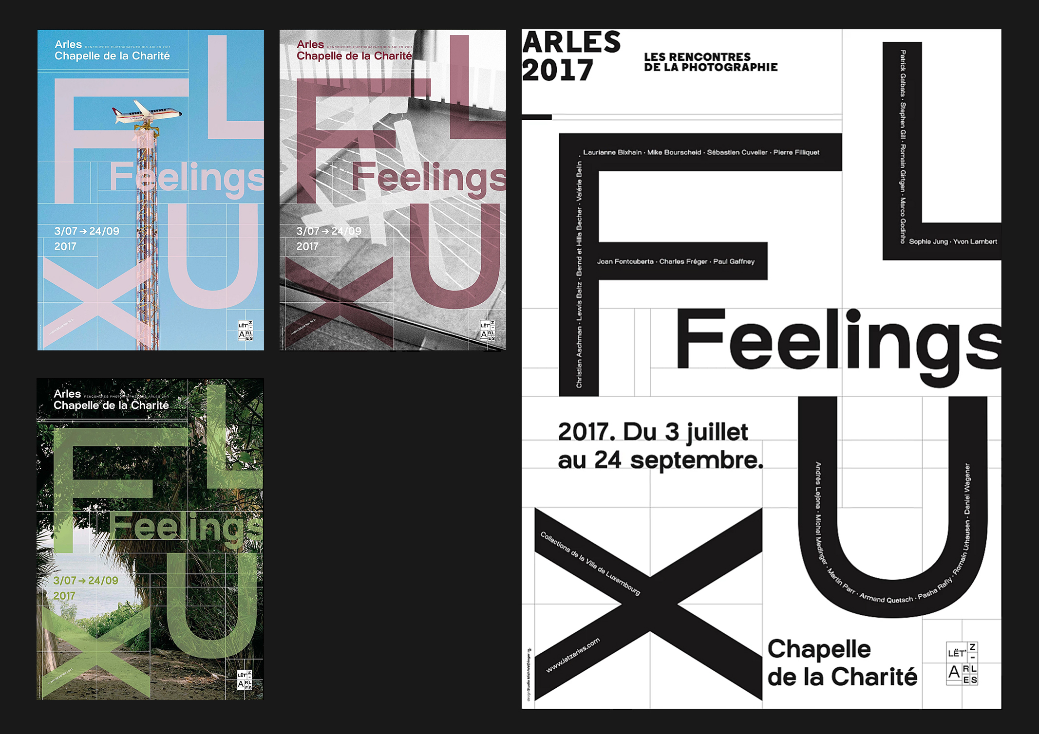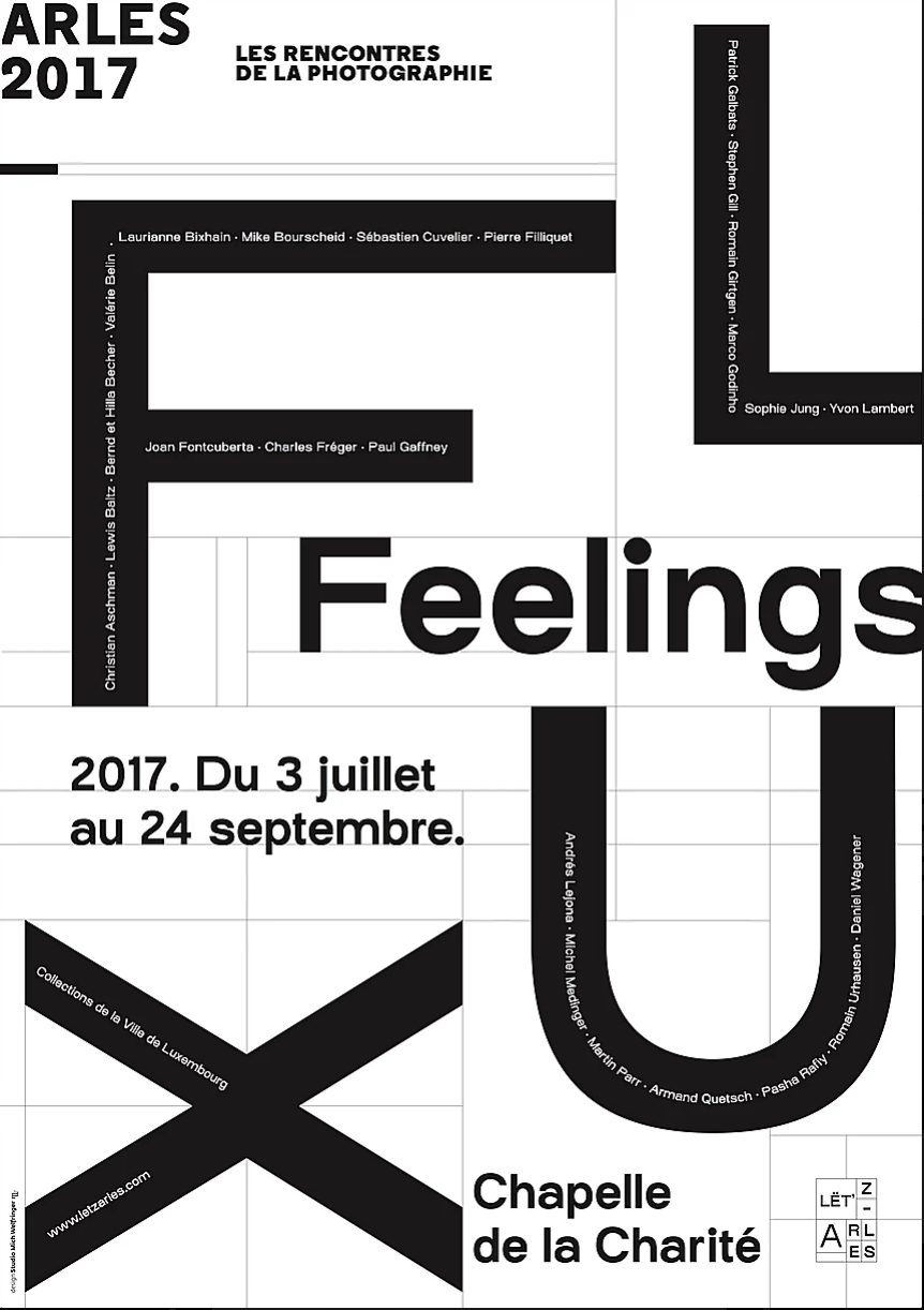FLUX Feelings posters Contributed by Blaze Type on Jan 7th, 2018. Artwork published in circa 2017. License: All Rights Reserved. FLUX Feelings posters announcing the exhibition for the Rencontres de la photographie de Arles Under the theme “Territorial”, gathering 31 artists, the exhibition FLUX Feelings was a great success during the 48th edition of the photography festival from the very opening of the exhibition with about 10,000 visitors. License: All Rights Reserved. License: All Rights Reserved. License: All Rights Reserved. License: All Rights Reserved. Typefaces More about OsmoseGet Osmose Formats Posters/Flyers (5872) Topics Event (3289) Art (4781) Designers/Agencies Michel Welfringer (2) Tagged withphotography (992)FLUX Feelings (2)Rencontres de la photographie de Arles (2)art exhibitions (890)exhibition posters (768)big type (1741)rotated/upside-down glyphs (251)hyper-extended glyphs (343)Lët’z Arles (2)arrows (778) Artwork location France (2909) Arles (13) In SetsPOSTER (Sara Valdés) (8)Favorites (Lauren Rose) (129) Post a comment Name Email – will not be published Website Your response Submit Comment More Osmose in use Focus Ireland fundraiserc. 2020Clare Lynch DesignContributed by Clare Lynch Stockholm International Film Festival 2024202425AHContributed by Blaze Type Des racines pour bâtir l’avenir — Groupe SMA2019Angélique Blanchardba-baContributed by Angélique Blanchard Sponsor More in Event The 15th Gwangju Biennale Japan Pavillion 2024Goto TetsuyaContributed by Greg Gazdowicz Festival Internacional de Solos 2018c. 2018Oscar MaiaContributed by Lewis McGuffie Les uns envers les autres2018Ateliers Saint-LazareContributed by 205TF Staff Pick Eyes and Ears: A Survey of Visuals in Music 2020–20242025FISKContributed by Daniel McQueen (TDF) Staff Pick More in Posters/Flyers Sugar Loungec. 2019Kelly ShieldContributed by Kelly Shield E-Werk Freiburg Posters2011Clovis ValloisContributed by Nouvelle Noire Respira poster series2017Erik CarterJustin SloaneLucas SharpContributed by Love Lagerkvist “Parole… parole” poster2009Tomaso MarcollaContributed by Tomaso Marcolla More Fonts In Use Wooden Spoon Herbs2022GanderContributed by Out of the Dark Staff Pick La Ciudad by Scientific American (Alianza Editorial, 1969)1969Daniel GilContributed by Florian Hardwig Staff Pick The Wizard of Oz theater posters2024Stas TuchinskyContributed by Matan Iontef Staff Pick Yr Skull a Cathedral / Psychic Arpeggiator by Param Anand Singh2018Param Anand SinghContributed by Param Anand Singh Staff Pick
