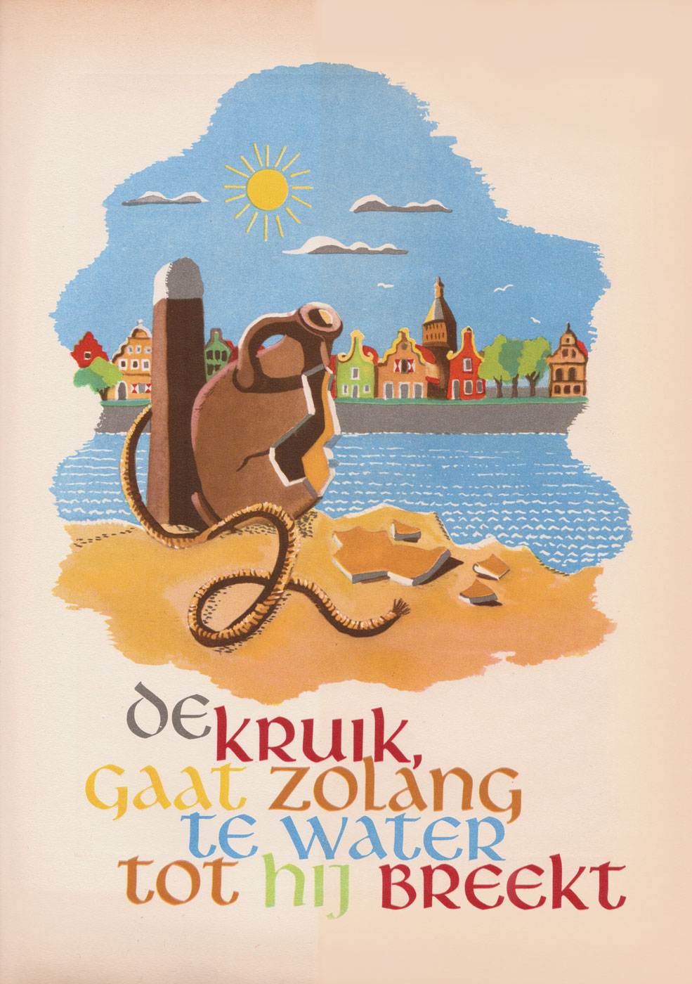 This piece by Dutch designer Nan Platvoet for Tété magazine visualizes a Dutch proverb that has its English equivalent in “The pitcher goes often to the well, but is broken at last,” and “Der Krug geht so lange zum Brunnen, bis er bricht” in German.