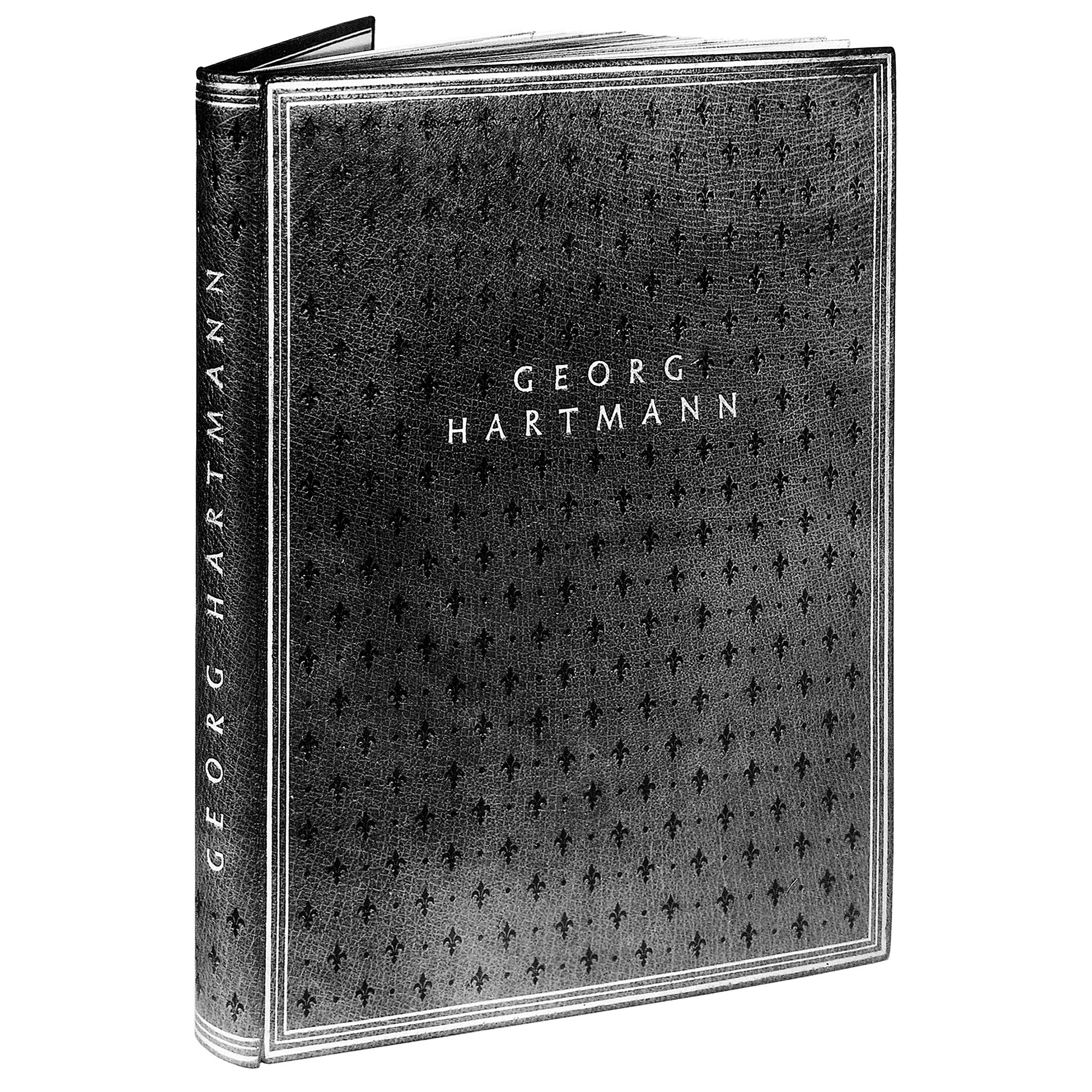 At Bauer, Gudrun Zapf von Hesse watched the punch cutters as they carved out the faces of letters from metal blocks using gravers and files. She soon cut her own alphabet from brass and mounted the punches on wooden handles so she could use them to letter-stamp titles on leather book covers and spines. By 1947 she finished the alphabet that was later known as Hesse Antiqua (a name given by her husband). Its very first use was on the cover and spine of the Georg Hartmann monograph no. 1/100 as a unique specimen presented to Hartmann himself. Zapf von Hesse produced a second specially-bound version that features her lettering on the spine, different from the first: the name in gold with blind-stamped years. This copy remains in the designer’s possession.