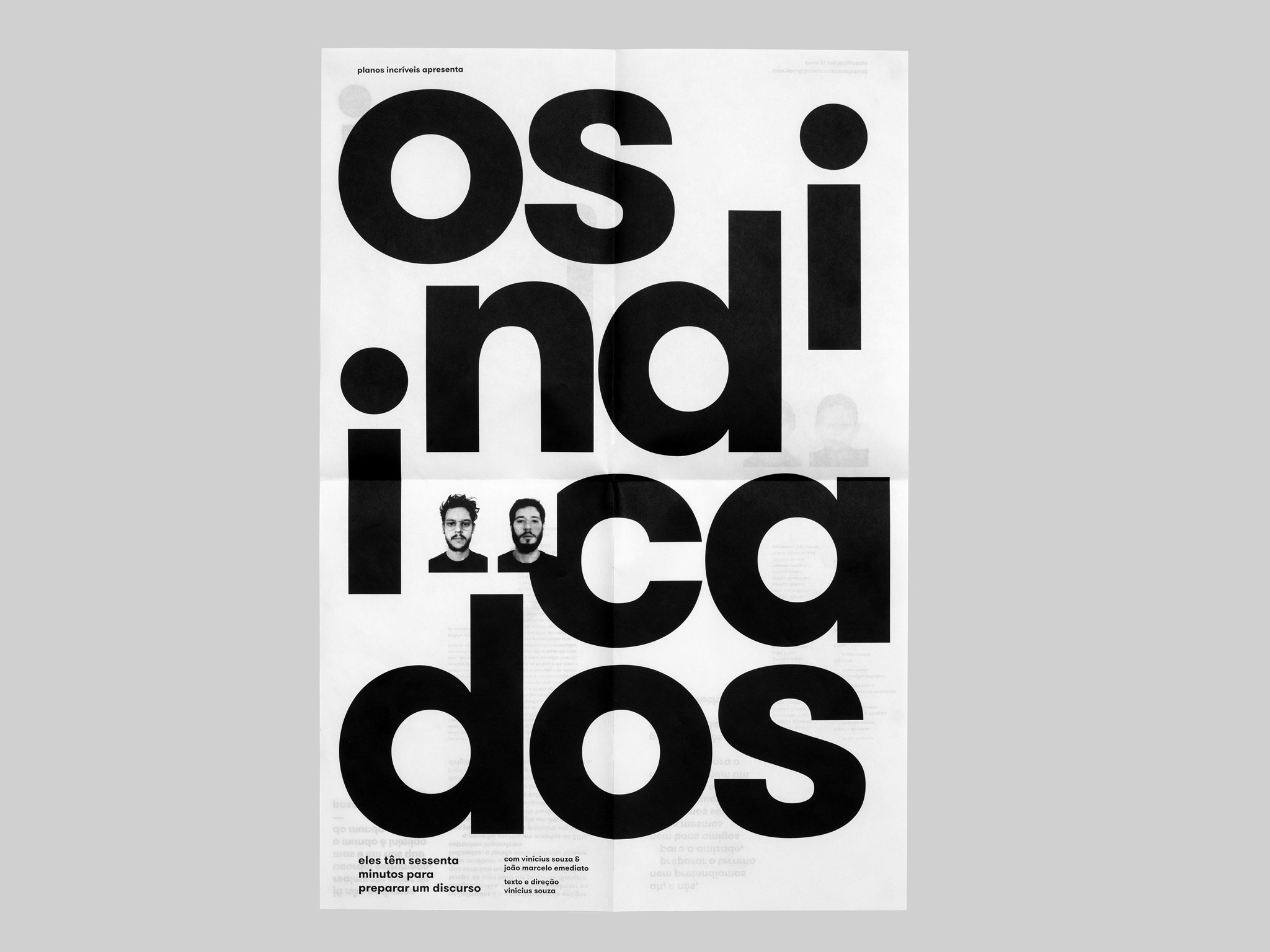 Graphic identity and poster for a play written and directed by Vinícius Souza, featuring two anonymous childhood friends who are supposed to rehearse a speech for an award that they might win. The one-hour play’s fast-paced and sober structure revolves around the struggle to find a voice and take a stand amidst a political crisis.