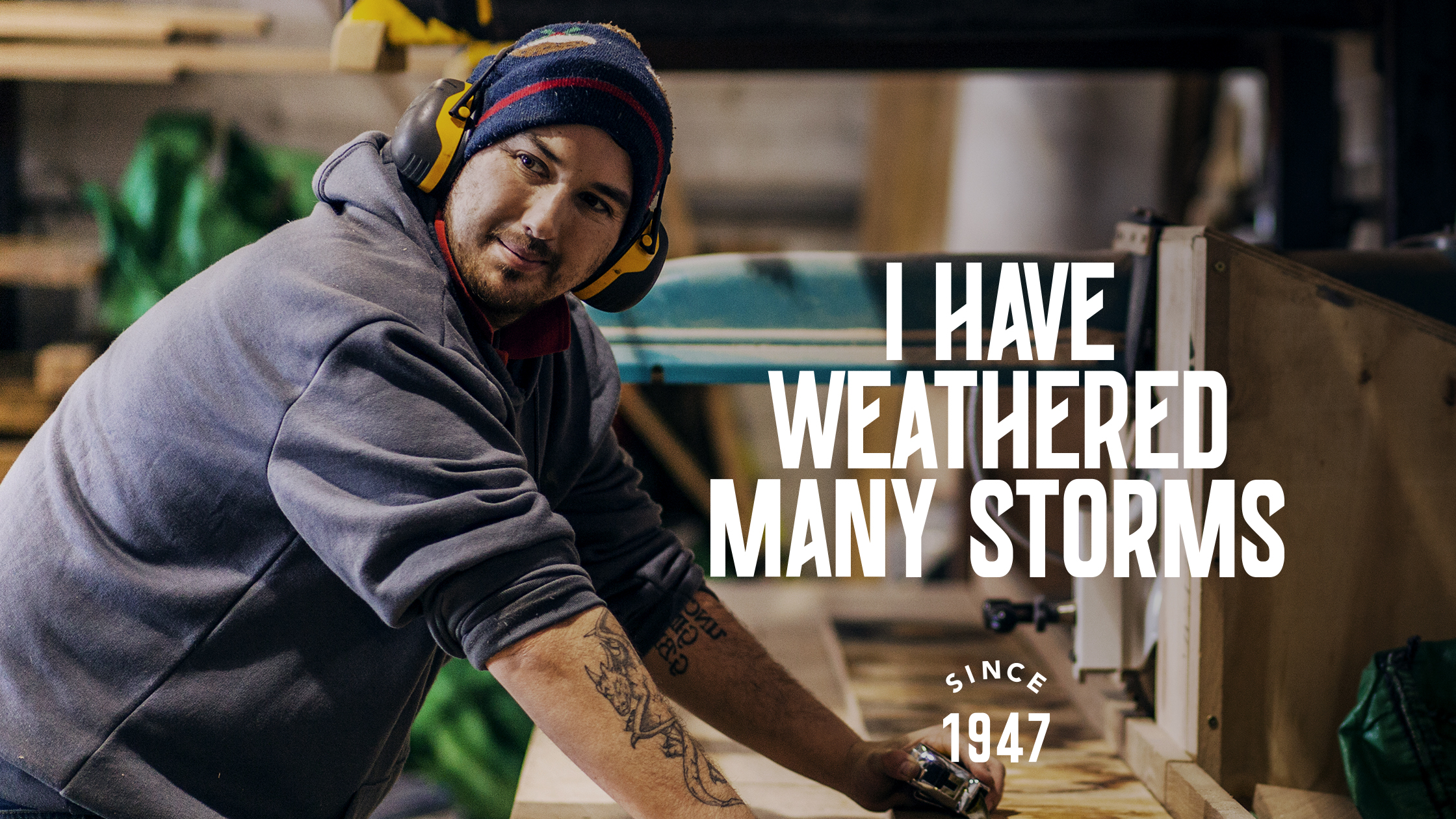 Lantern celebrated the imperfections of the company’s oak, and its folk, through a suite of powerful creative headlines and textural photography, designed to personify the character and personality of their people and products. They told these stories using BIG — a raw, condensed display font developed by João Miranda and Bruno Rodrigues. Coming from a series of handprinted wood type specimens, the letterforms not only reflect the era of timber typesetting, but the angular forms also compliment the quarter-sawn styling of the logo.