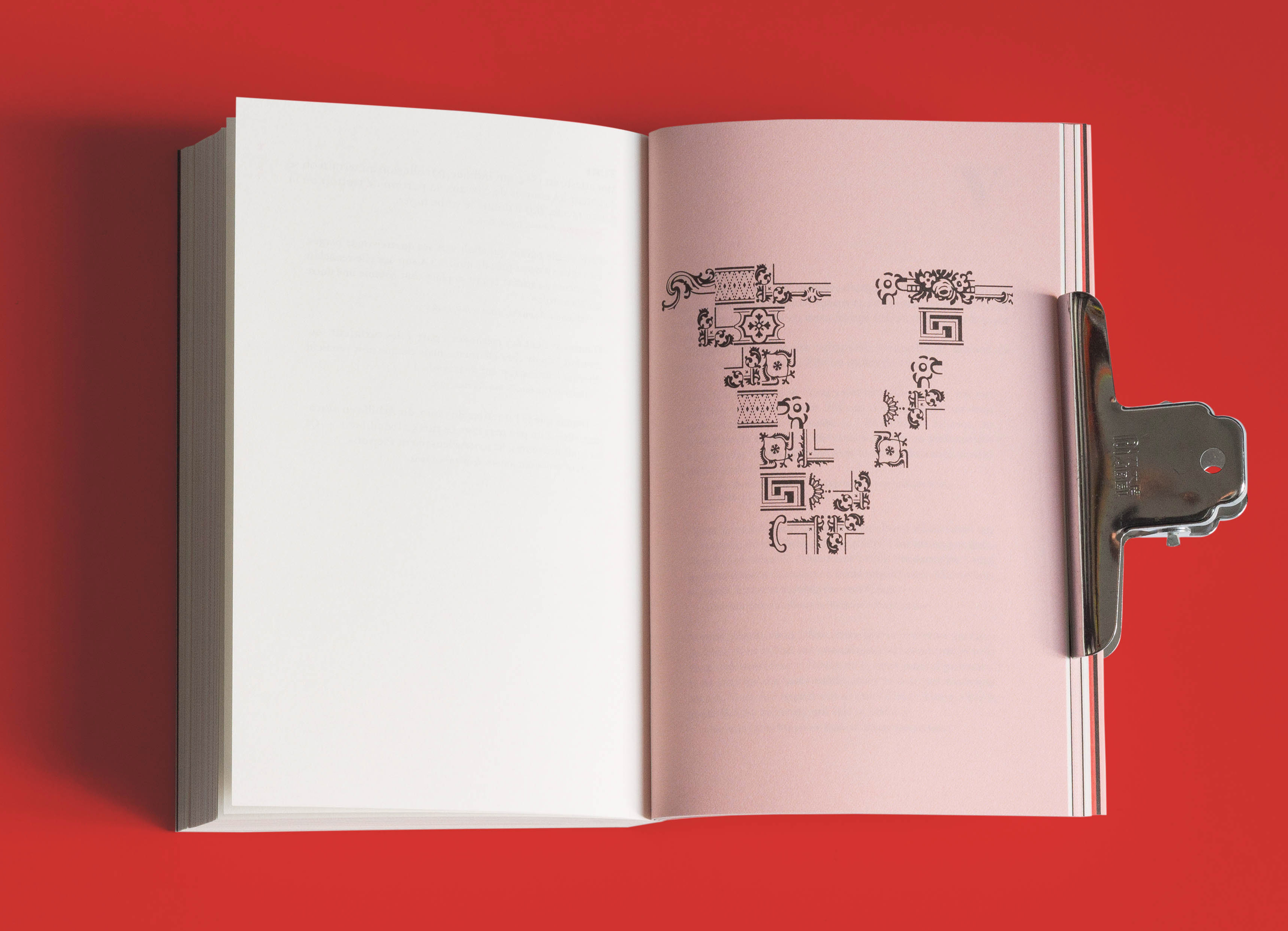 PS Fournier was chosen for its elegancy and delicacy. We aimed to use the font with all its characteristics and even used the included ornaments and border elements to compose capitals for the chapter openings.