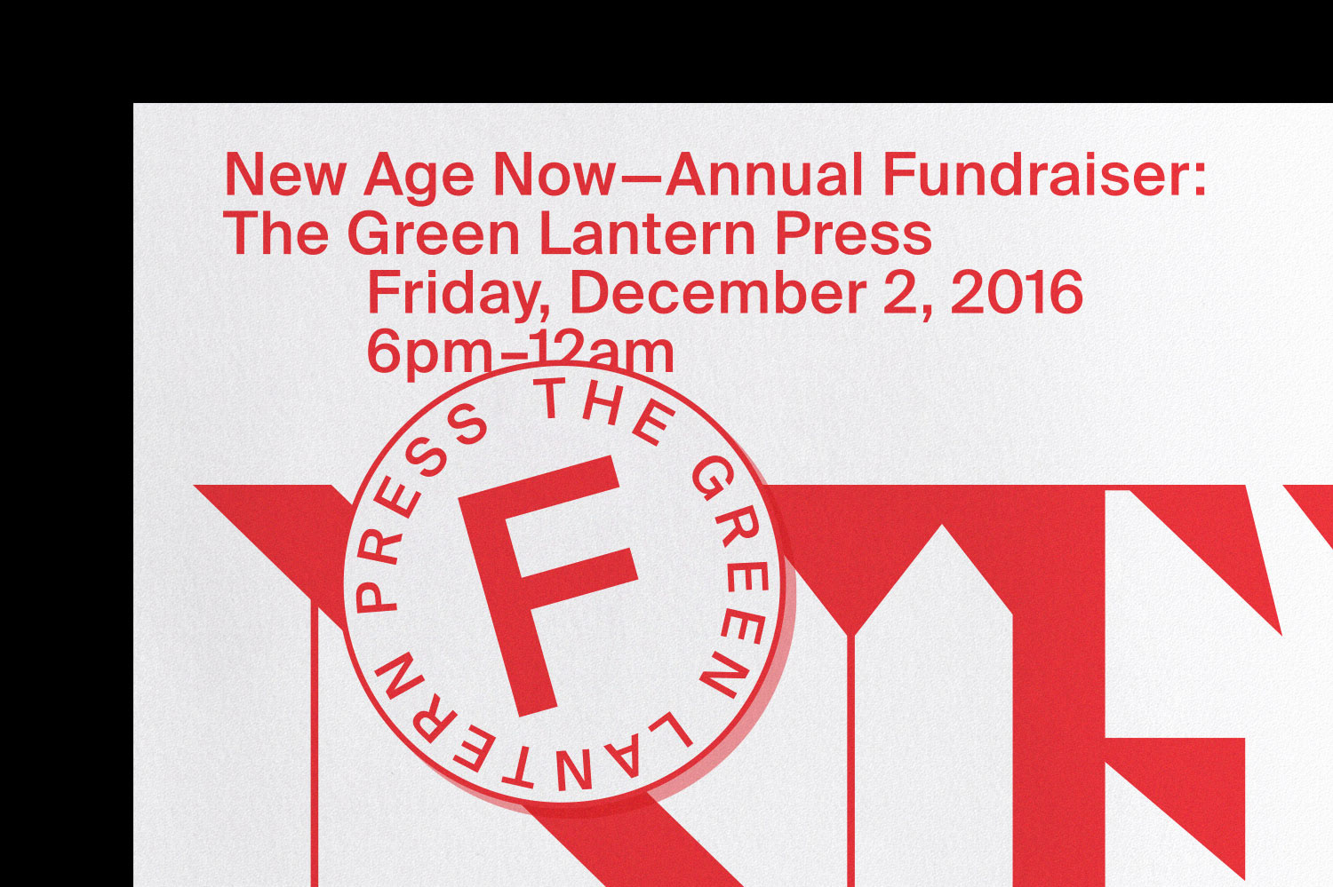 Pouya Ahmadi worked on the identity of New Age Now exhibition. The typographic identity for this exhibition merges Modern and contemporary type design as well as 1700 Transitional genre in order to produce an edgy identity that reflects the work exhibited throughout the year by Sector 2337 as well as the featured work at the fundraiser event.