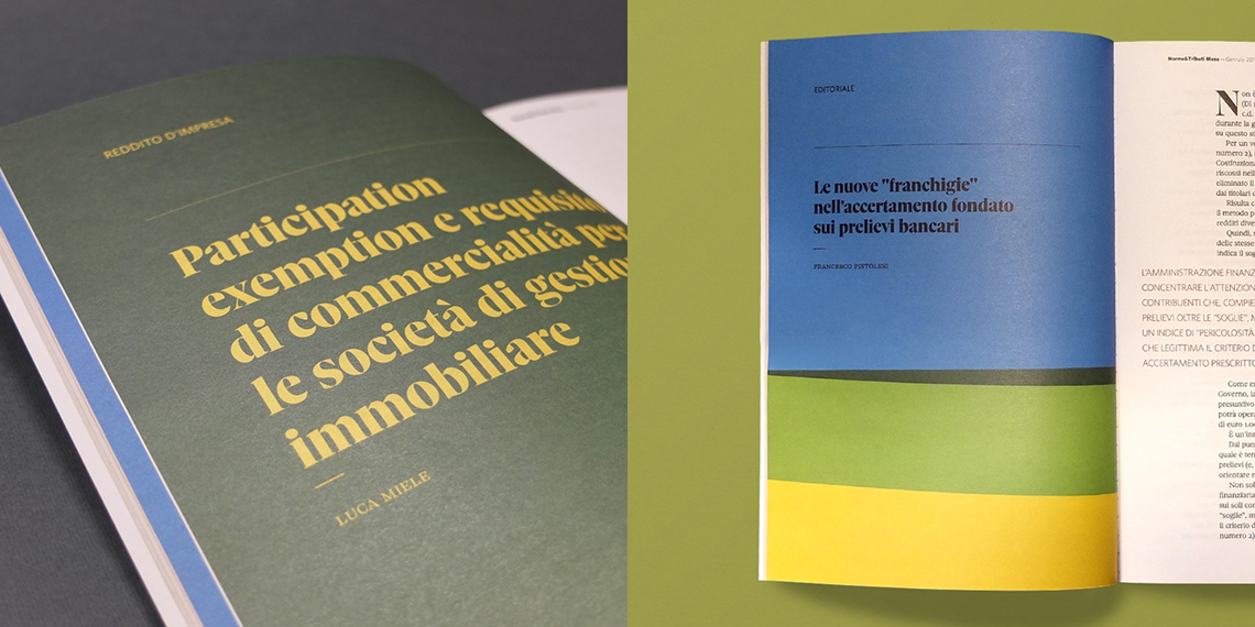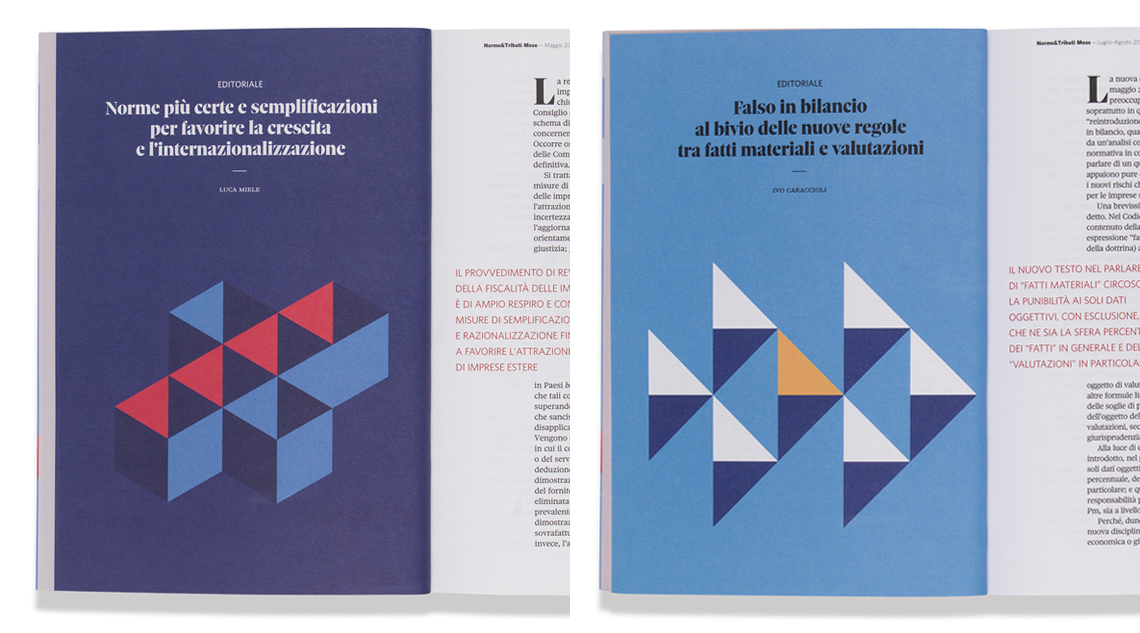 Norme & Tributi Mese journal covers topics including taxation, accounting, and corporate law. Working for them gave Bunker the chance to deal with complex and intricate themes, using a streamlined, well-balanced, and graphically refined tool. Since it first launched, this journal has always aimed at providing high quality contents, with an editorial board that includes the most influential and popular names in this field.