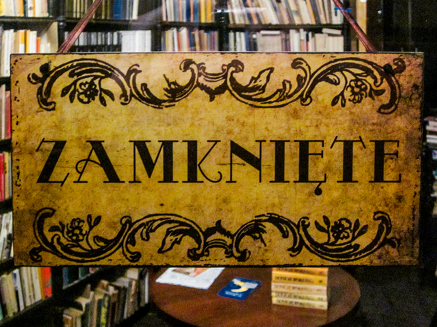 The typeface, Odalisque by Nick Curtis, is based on Morris Fuller Benton’s Chic (1928), of which no faithful digital rendering is available. In terms of letter shapes, Odalisque is quite close to Chic (though minor divergences exist); the main difference is that Chic is an inline design, whereas Odalisque has solid letters. Looking closely, we also notice a divergence between out-of-the-box Odalisque and the sign: The ogonek in the font as sold on MyFonts is a hook that, while tiny, still exceeds the right boundary of the E (thereby managing to neglect most of the recommendations Adam Twardoch gives for designing ogoneks). On this sign, the default ogonek has been replaced by a larger one that stays within the boundaries of the base. It has a lacrimal terminal that is found in none of the base letters, but fits the style of the typeface fairly well: a small change, but a substantial improvement.