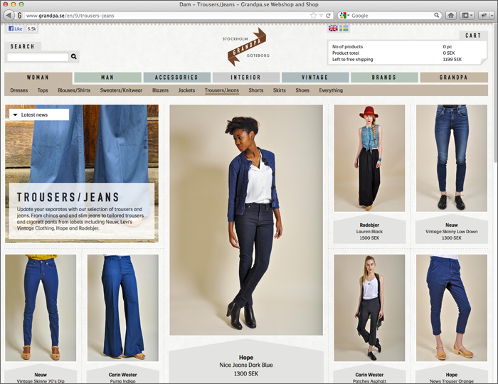 In the heart of Sofo in Stockholm you’ll find Grandpa. They sell Scandinavian and international fashion, interiors and vintage furniture. Recently they redesigned their webshop for a whole new shopping experience. Typefaces used are DIN 1451 Engschrift Standard for headings and Siri Core “Schoolbook” as the main text face.