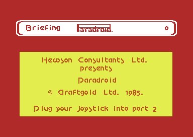 Paradroid is a Commodore 64 computer game written by Andrew Braybrook and published by Hewson Consultants in 1985. It is a shoot ’em up with puzzle elements and was critically appraised at release. The objective is to clear a fleet of spaceships of hostile robots by destroying them or taking them over via a mini-game.