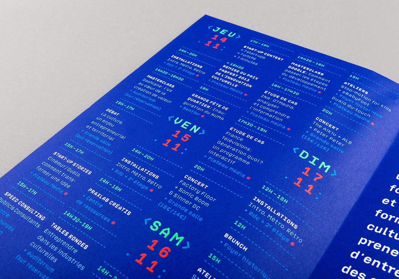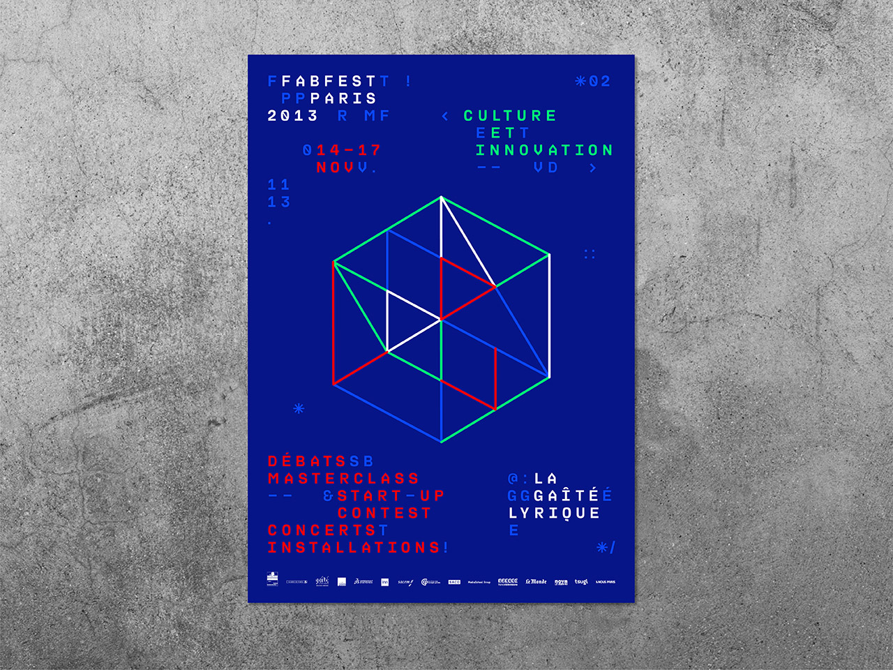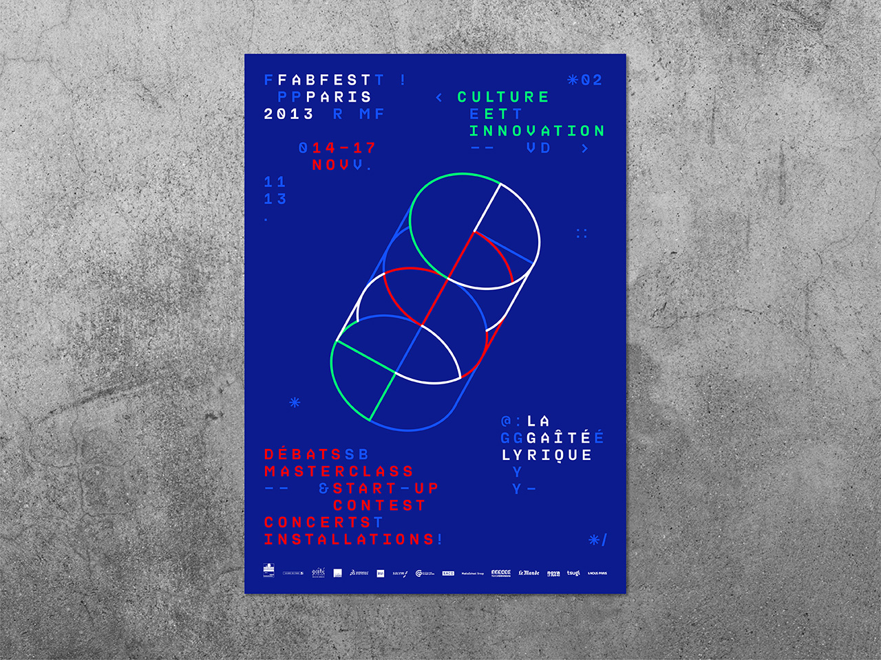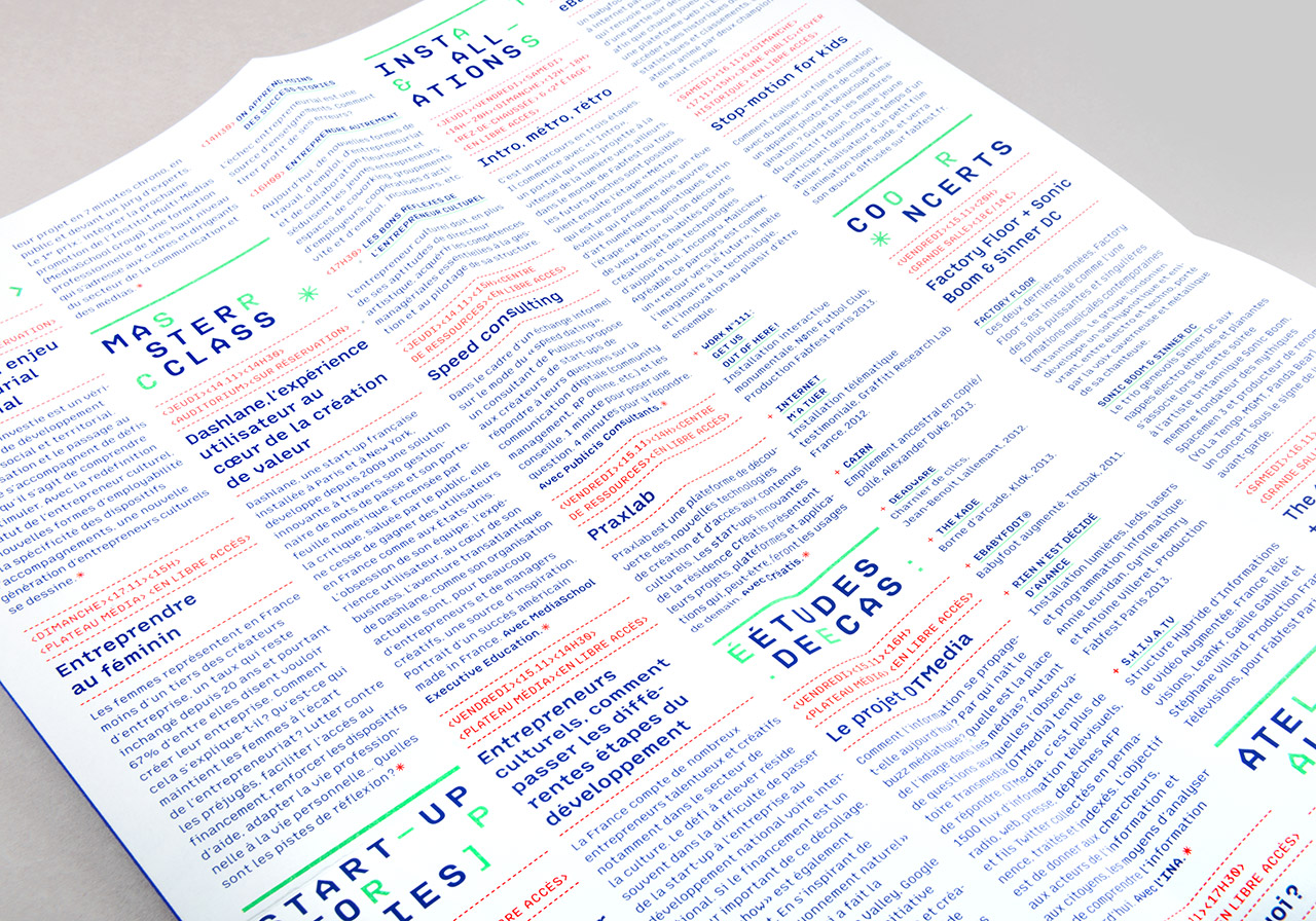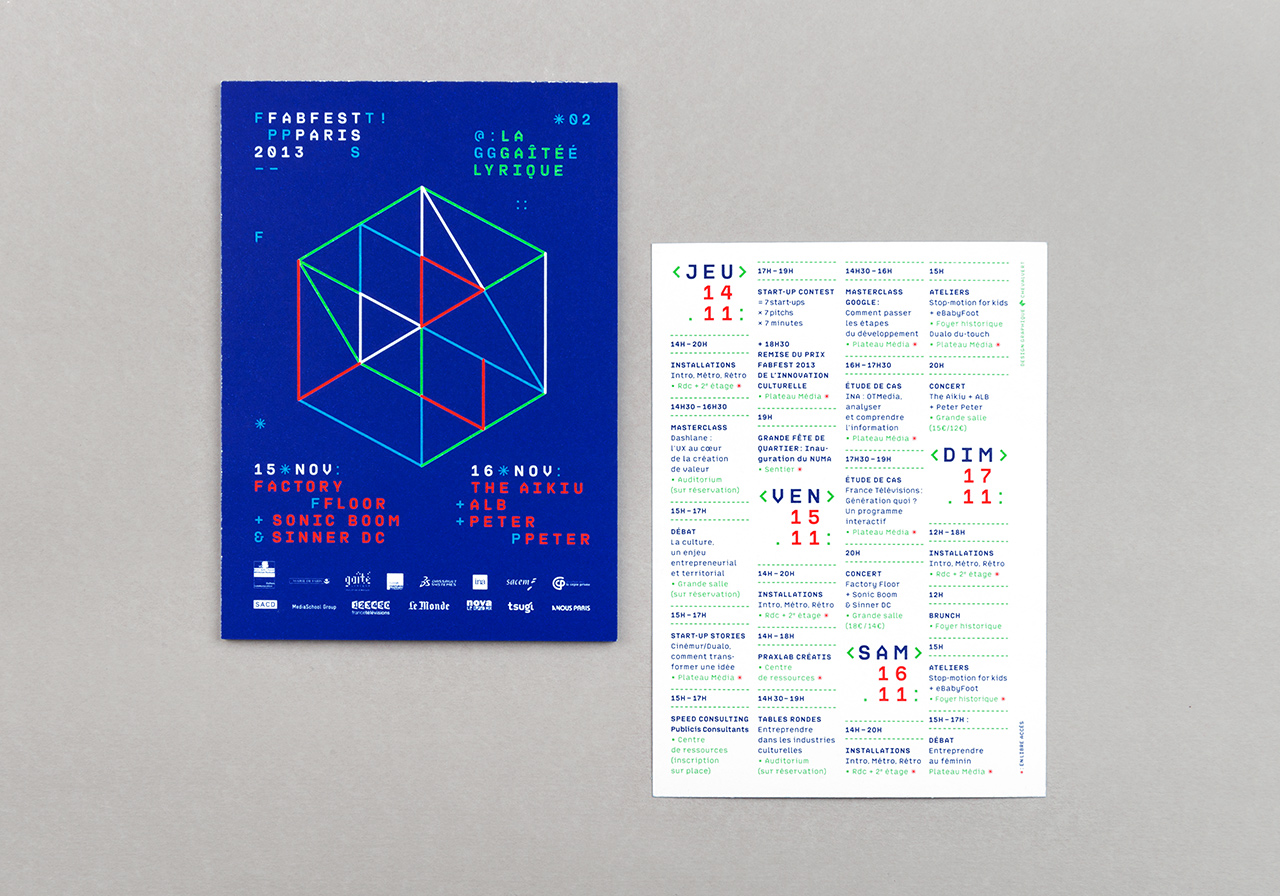 In 2013, Chevalvert studio designed the visual identity for the second edition of Fabfest, a cultural & technological innovation festival taking place at la Gaîté Lyrique, Paris.