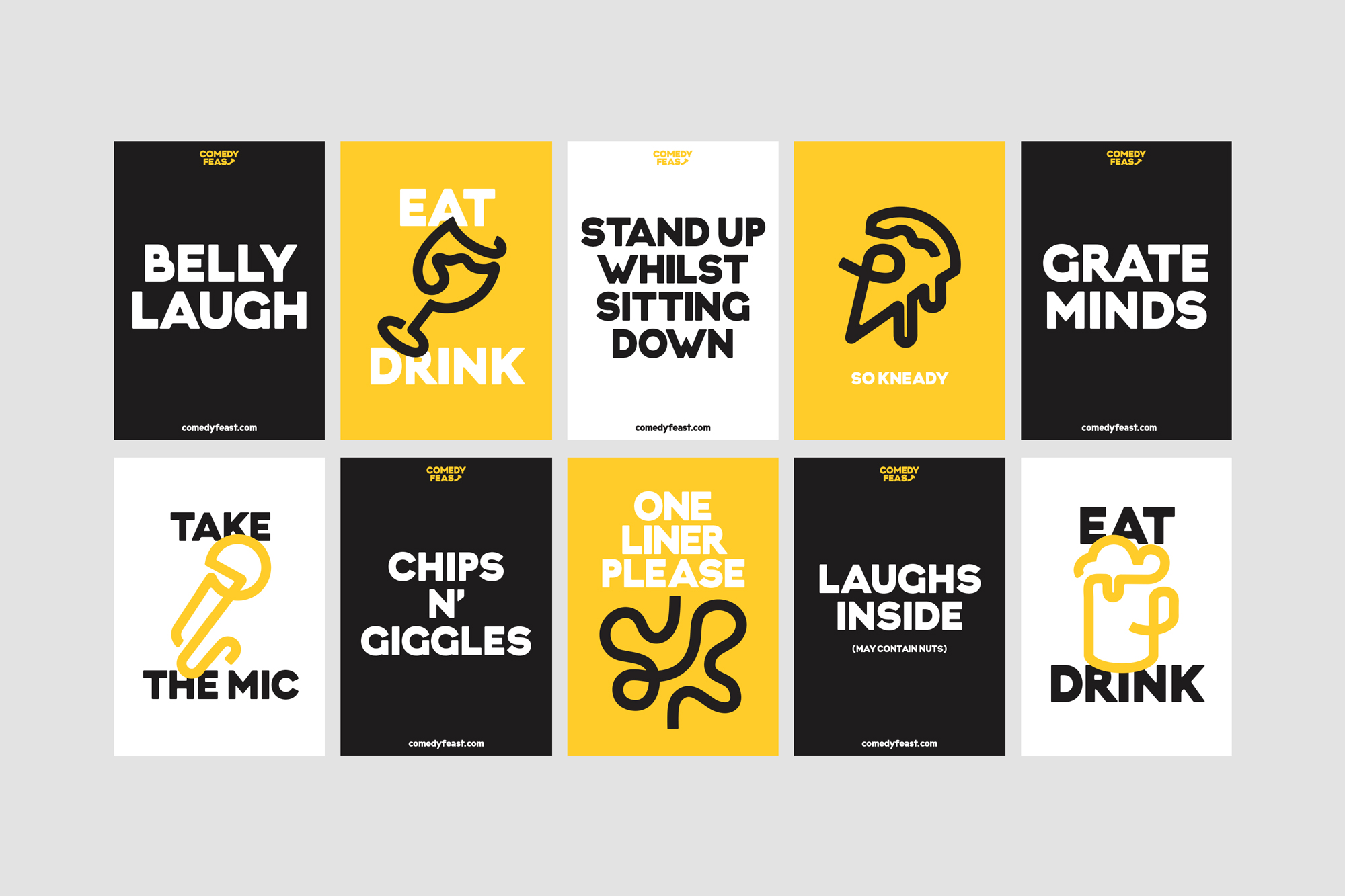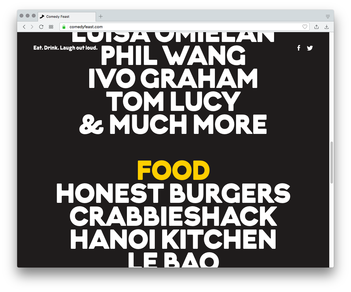 Comedy Feast is a new roaming family festival combining three of life’s greatest pleasures — food, drink and laughter. For the launch of the pilot experience at Lincolnshire Castle, Only were commissioned to create a simple brand identity that would inspire audiences to engage with the experience. Over time, the identity would need to flex to accommodate new locations spanning the length and breadth of the UK.