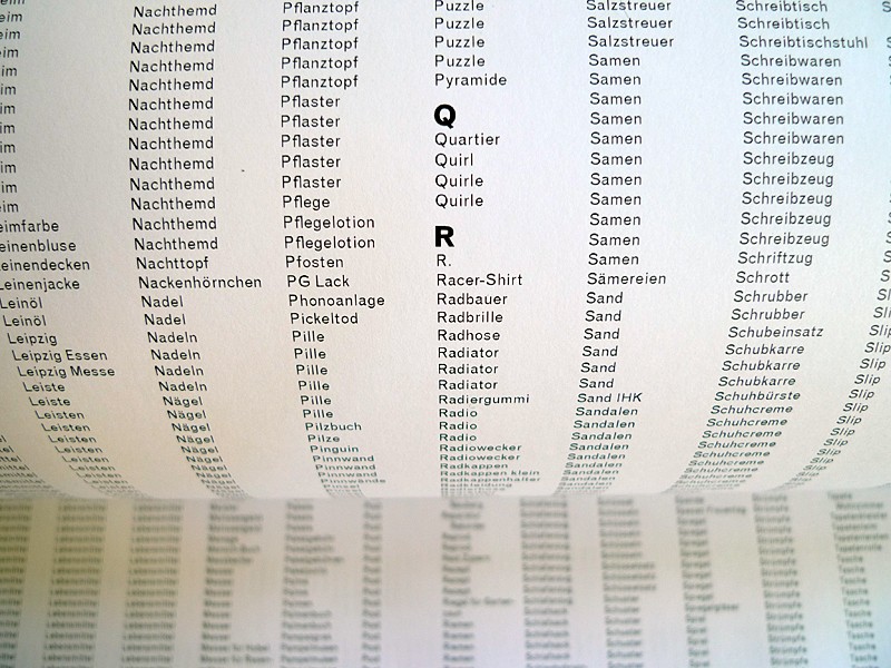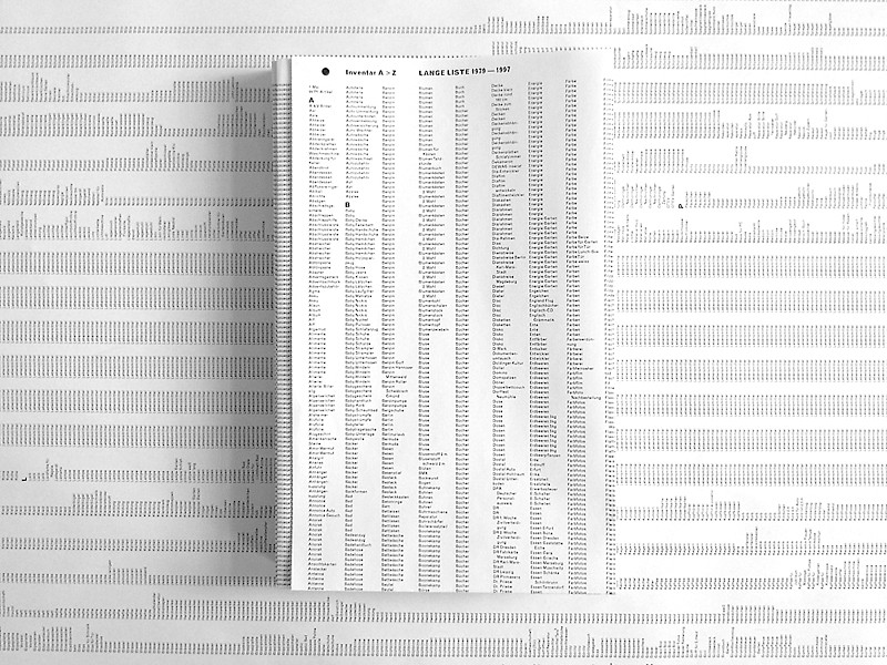 With its 12.051 items, Lange Liste 79–97 grants a detailed impression of the hidden desires, pleasures and losses of a family’s household kept in two different political and economical systems. The story of childhood and youth in form of a housekeeping book. A meticulously calculating mother who had to watch her money provides inspiration for experimental literature. Lange Liste 79–97 is a unique book covering everyday life during the late GDR and the German Republic shortly after unification.”