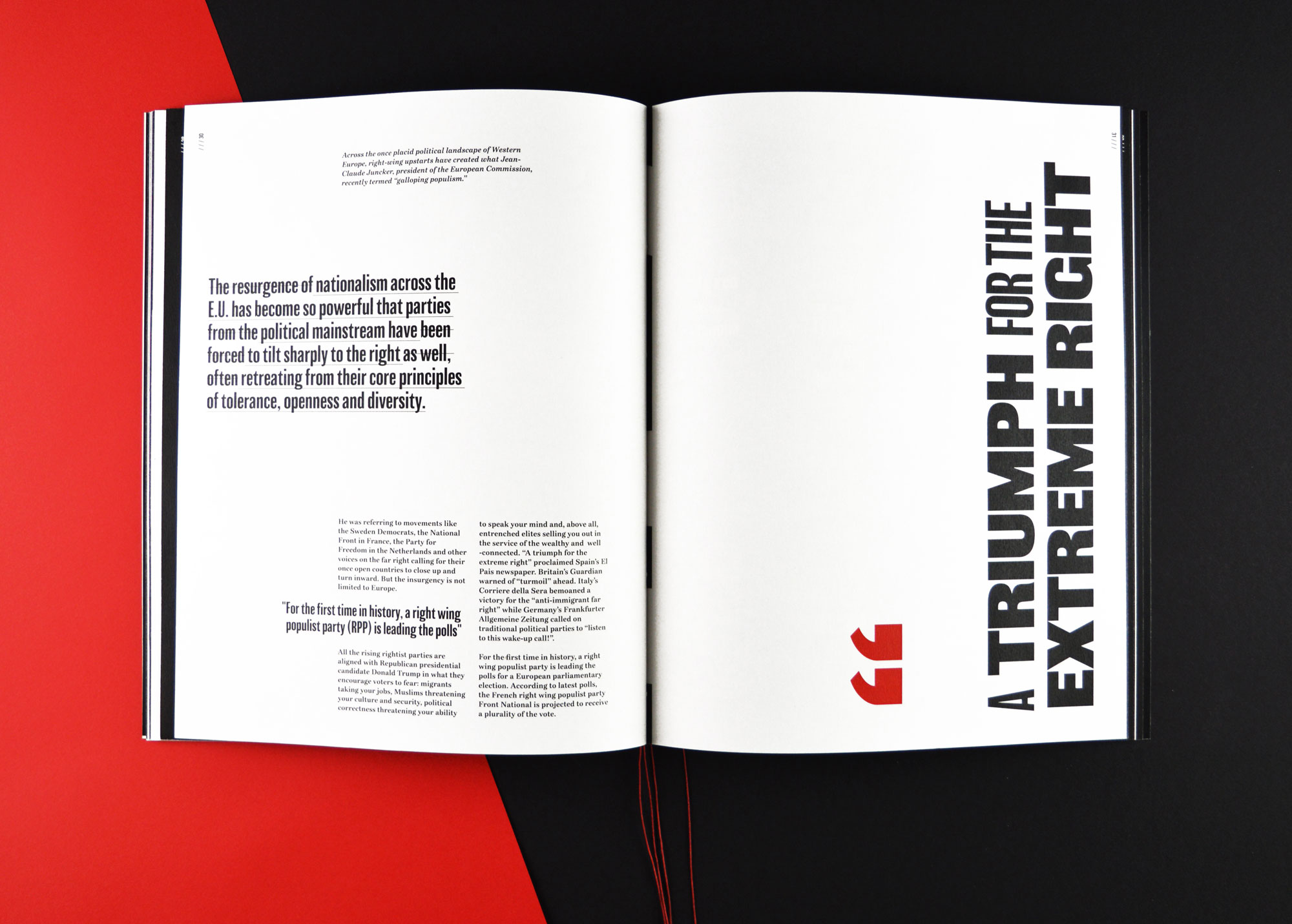 Rise of the Right is a zine created in response to the rising trend in right-wing politics in 2016–2017. The book explores this trend as a fad from the rise of the nazi party in the 1930s to the state of the political landscape in 2016.