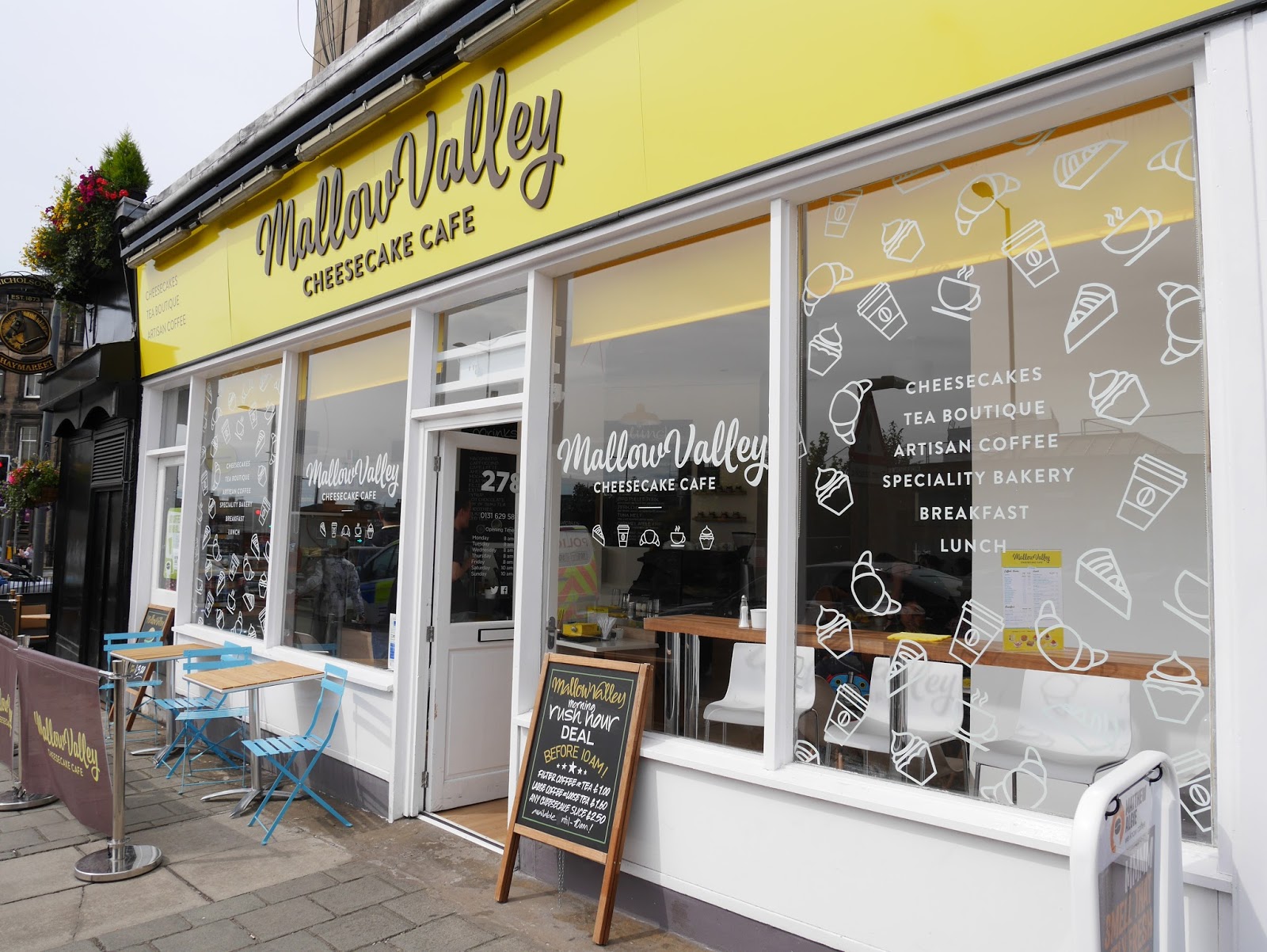 Branding and signage for Mallow Valley – a cafe in Edinburgh which specialises in luxury cheesecakes, boutique tea and a speciality bakery.