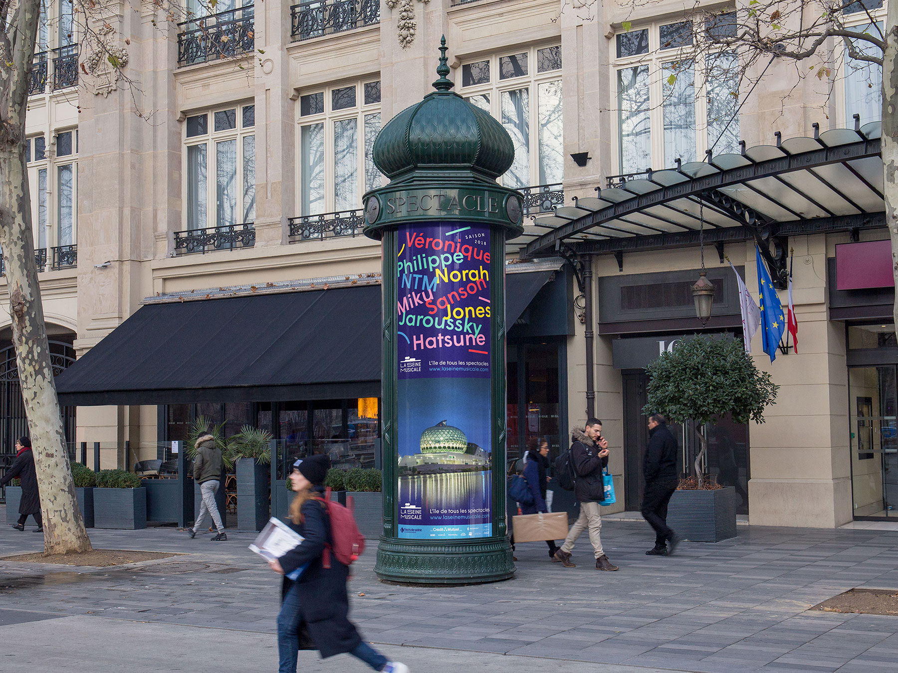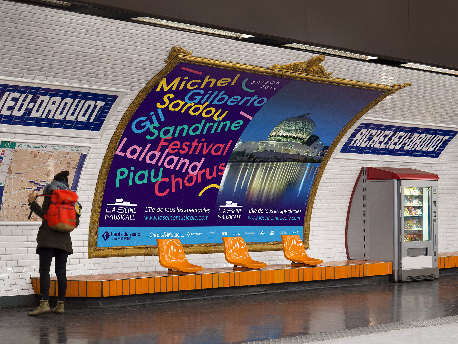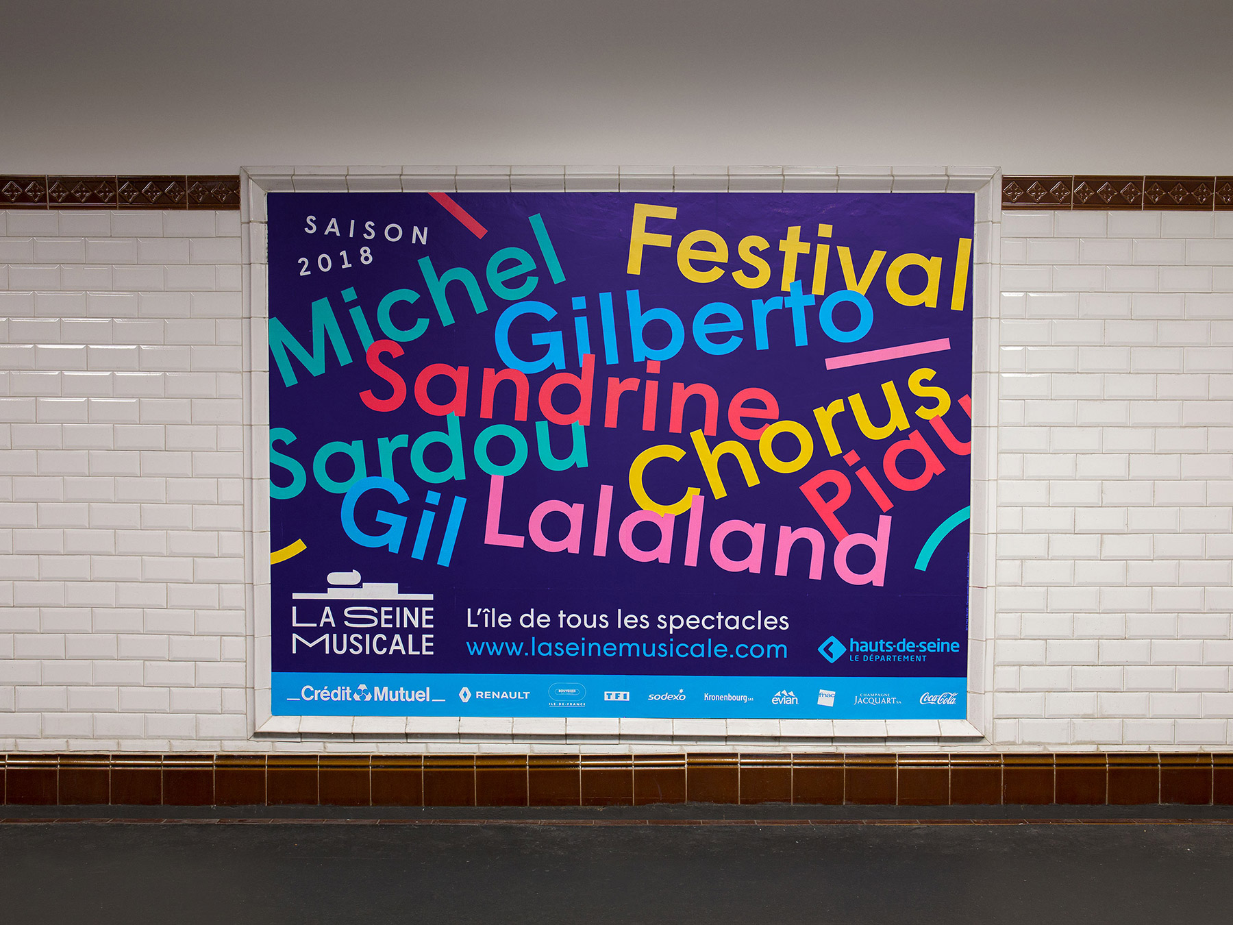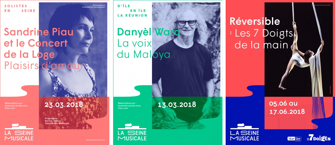 Wigrum gets its groove on in the 2018 ad campaign for La Seine Musicale, a brand new music and arts center located on the river in western Paris. Colorful piles of names constitute this season’s image and underscore the wide variety of the cultural offer for the months to come.