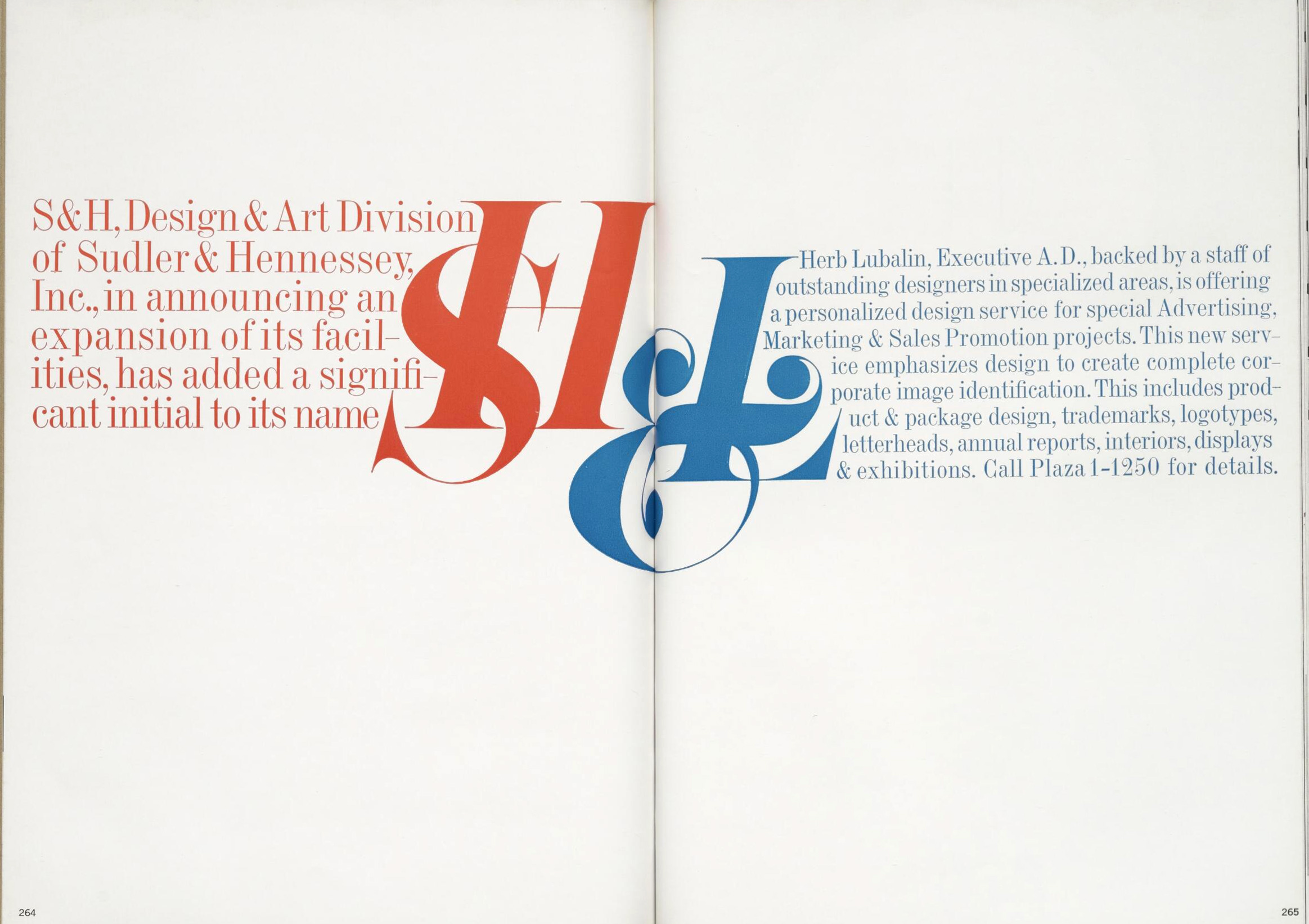 Ad in the 37th Annual of Advertising and Editorial Art and Design of the Art Directors Club, 1958. The “SH&L” is likely Lubalin’s hand lettering, not type. The text is set in Torino.