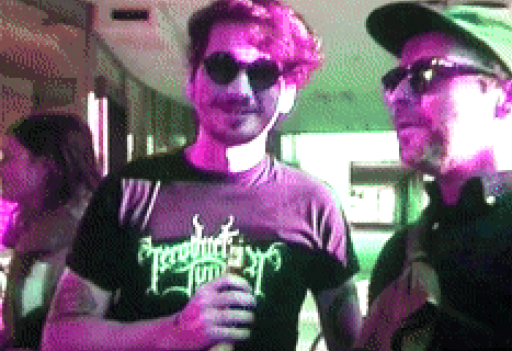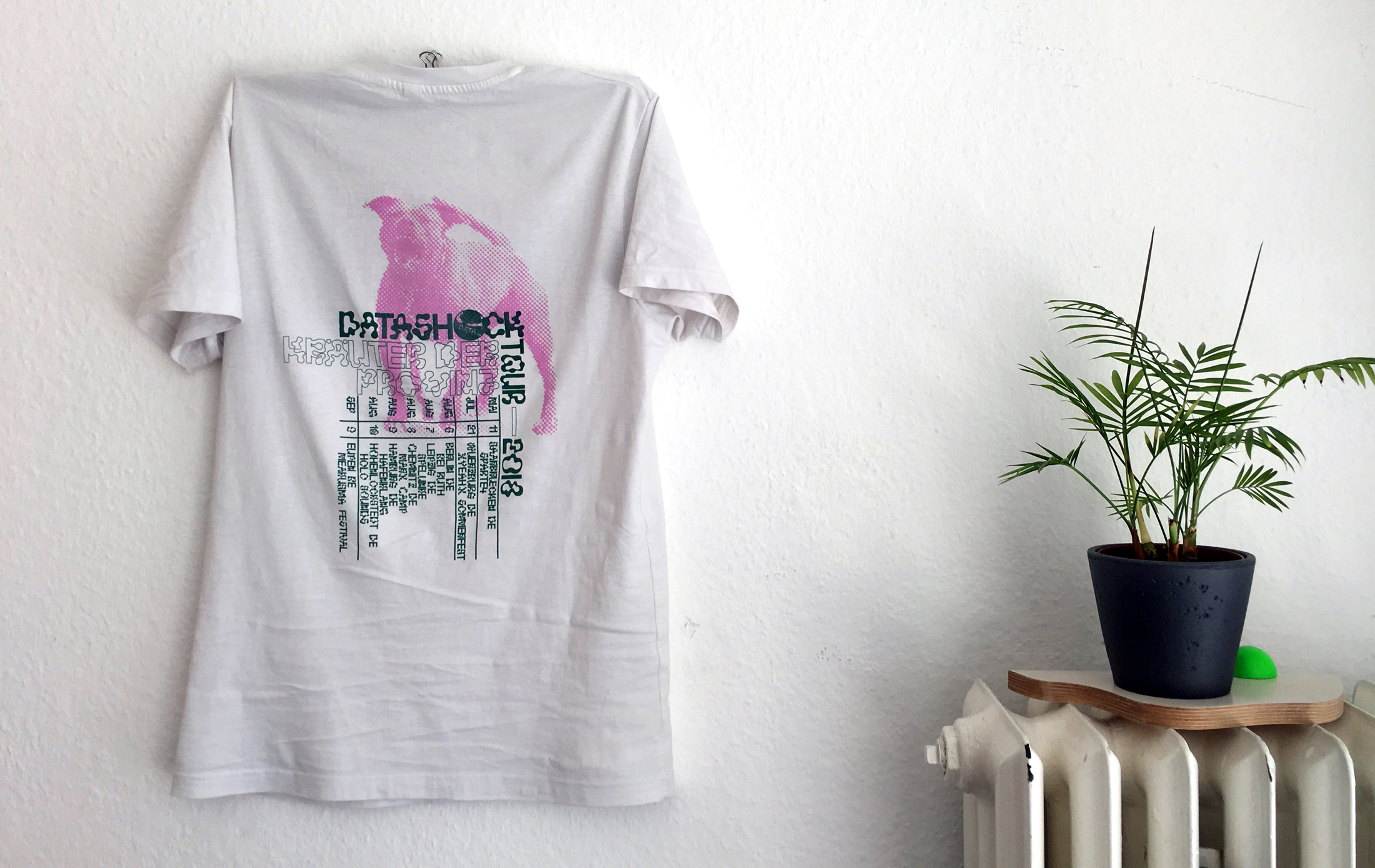 In the meantime, friends of Datashock produced two video clips. One of them provided inspiration for the cover of the digital single “Langustenclown (am Atlantik)”. The other one (“Hullu Gullu, wir liefern Shizz”), recorded during the aforementioned release party, features cameo appearances of all Datashock family members, including us designers Cone (right) and Manu (left) — check out the GIF!