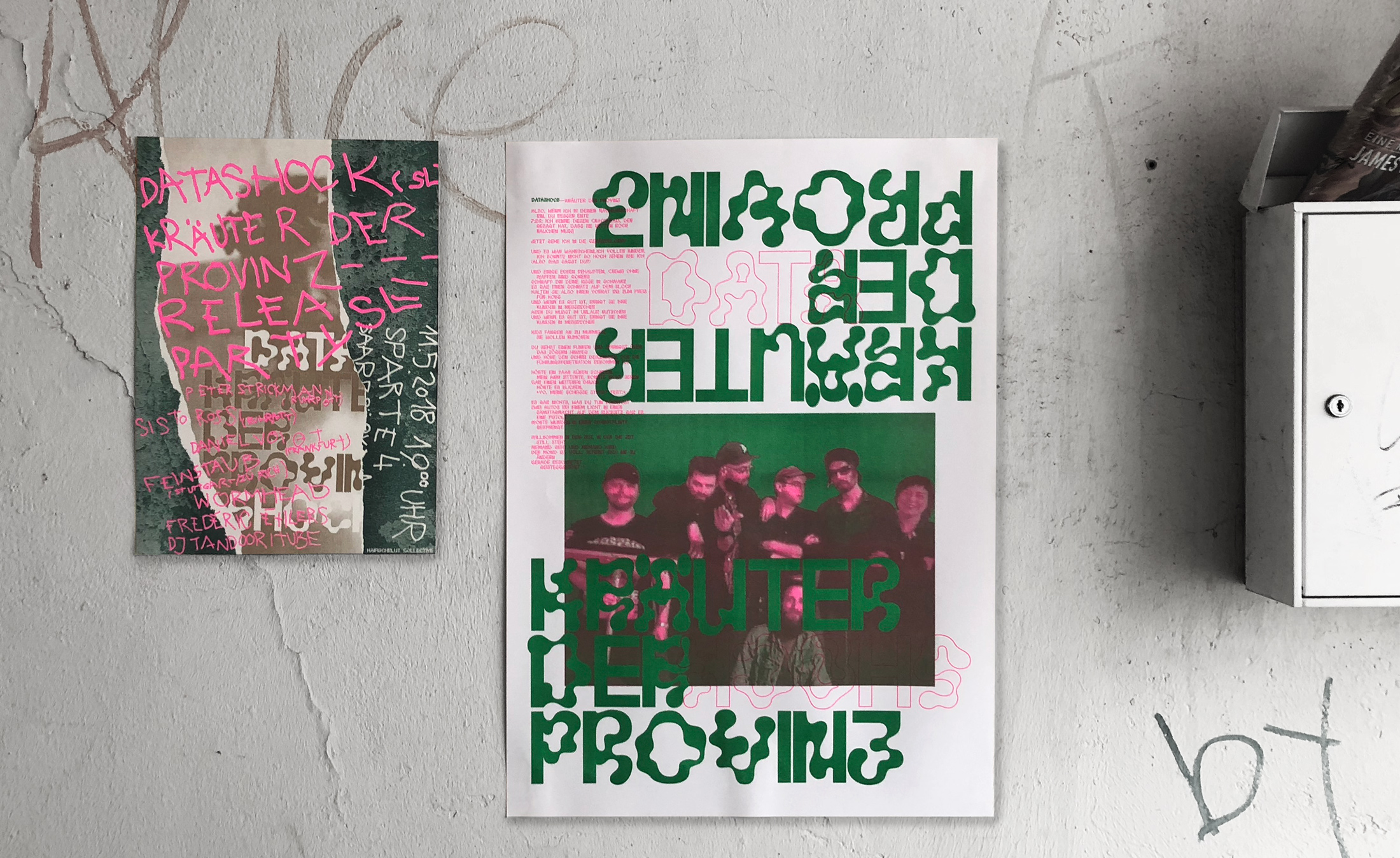 To promote the release party at Sparte 4, Saarbrücken’s finest theatre, we designed a three-color, A3 Risograph poster with the magnificent graffiti help of our colleague and buddy ConeTheWeird.