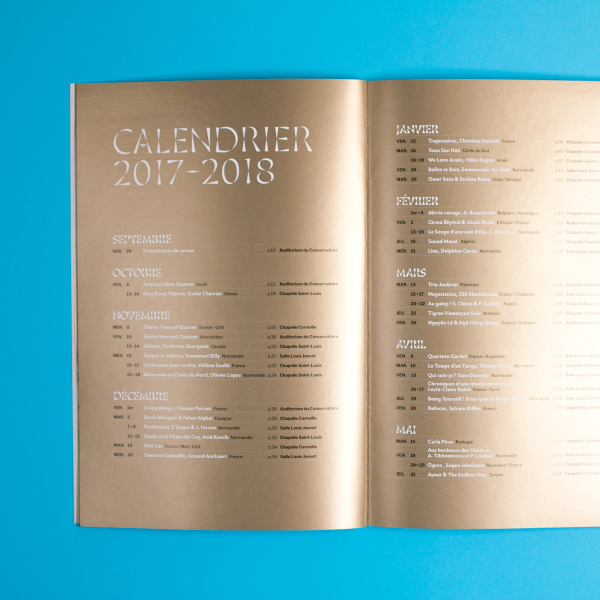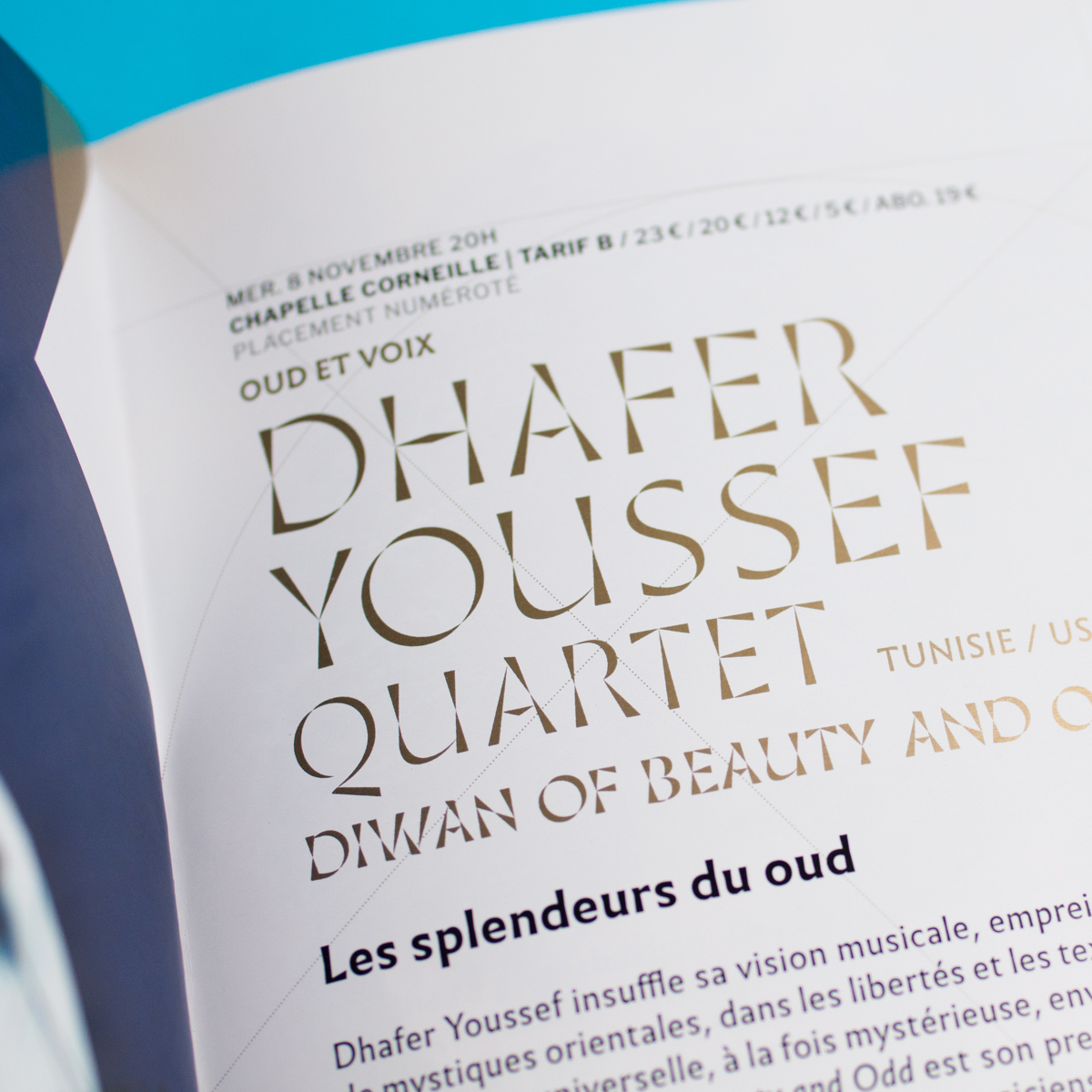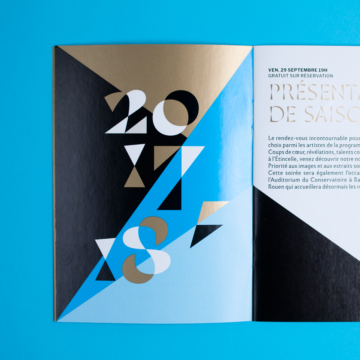 Thomas Huot-Marchand created the visual identity of Rouen’s theater, L’Étincelle, with his Minérale typeface, available on www.205.tf. Minérale is paired with Sandrine Nugue’s Infini, another recent French typeface design with similar lapidary qualities.