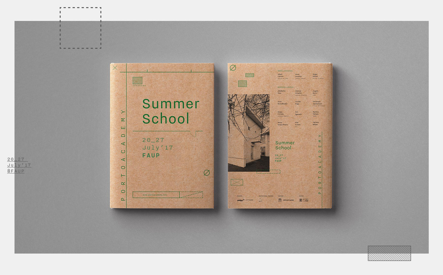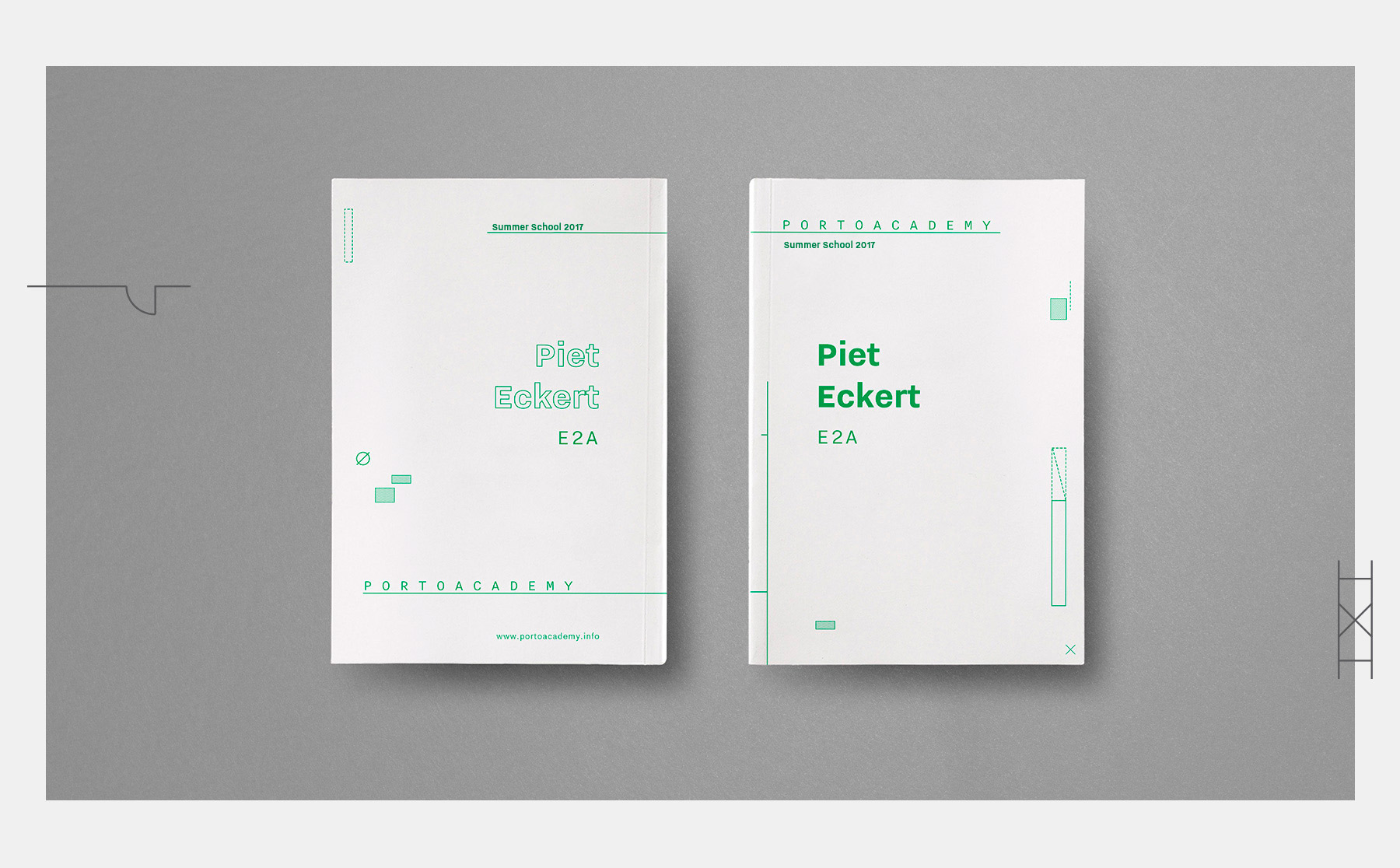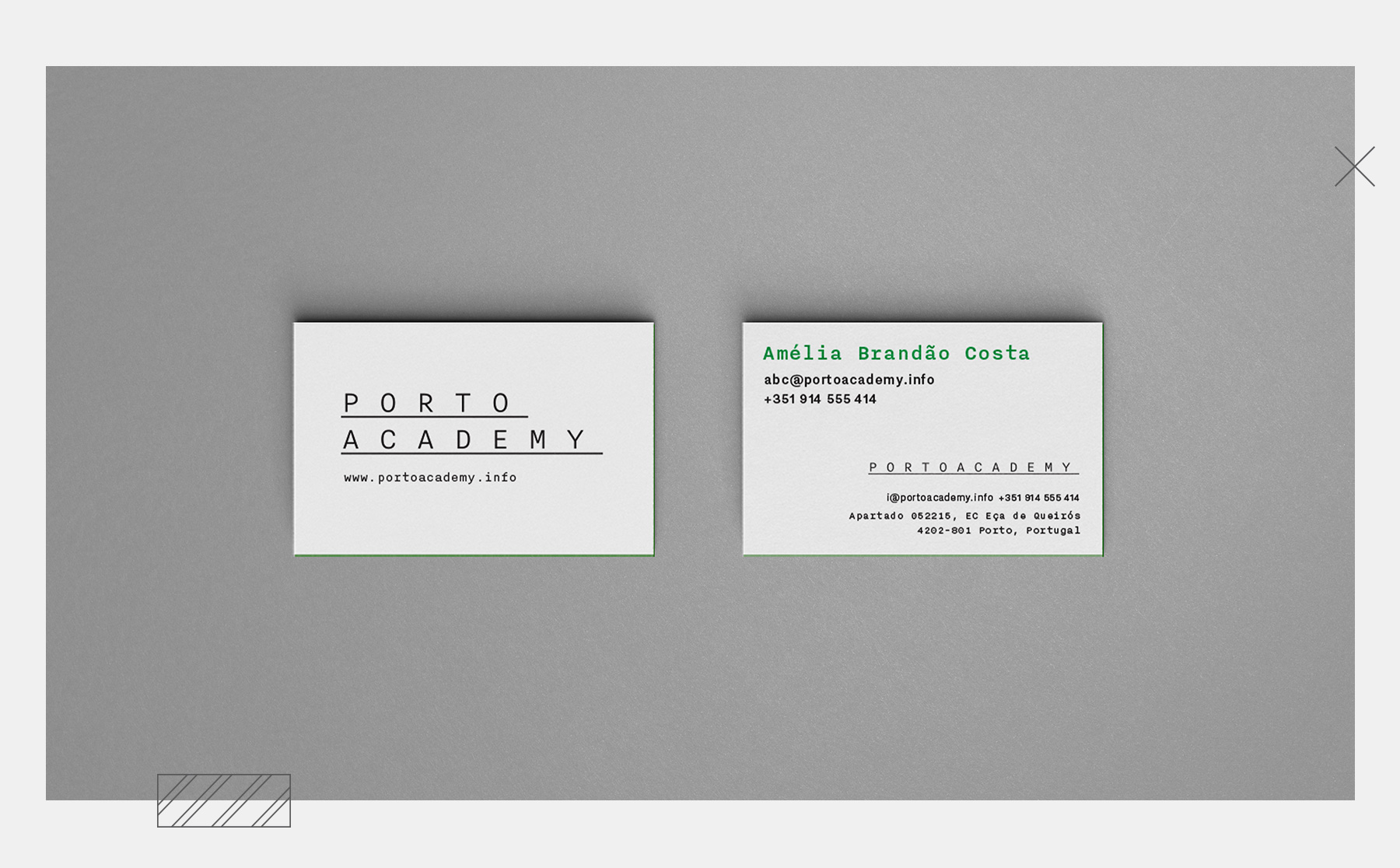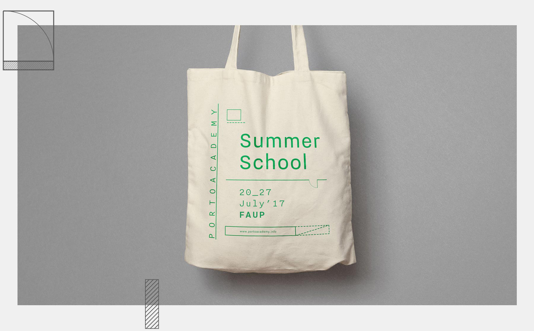The logo can stretch and collapse in 2 lines, as if it was in an editable text box. All of the identity was inspired by the architecture technical drawings graphic language (like blueprints, sections, facades…), that are present in each single piece created. The stationery, merchandising and website design are good examples of the possibilities the graphic language of the new Porto Academy identity can give to its multiple applications.