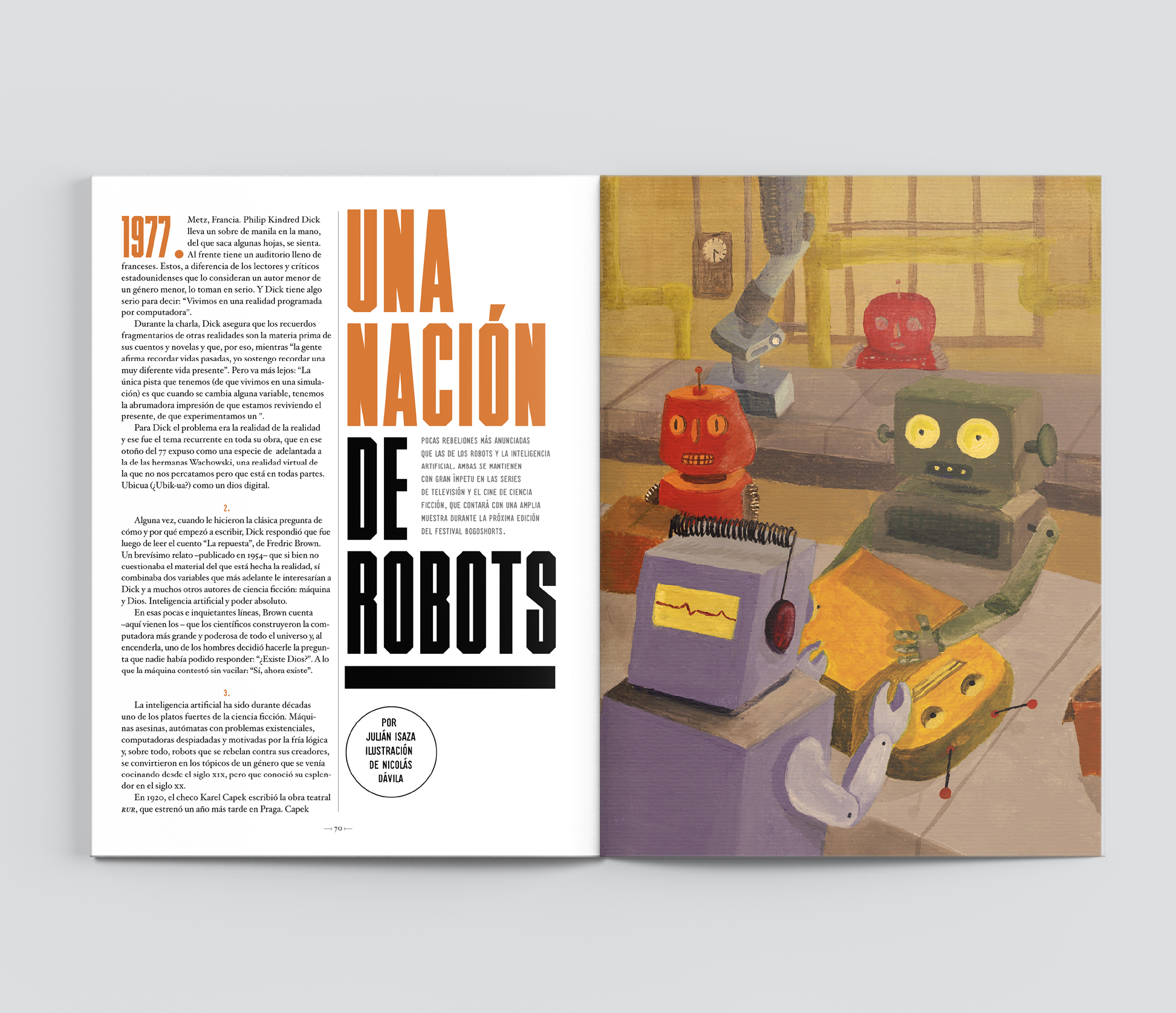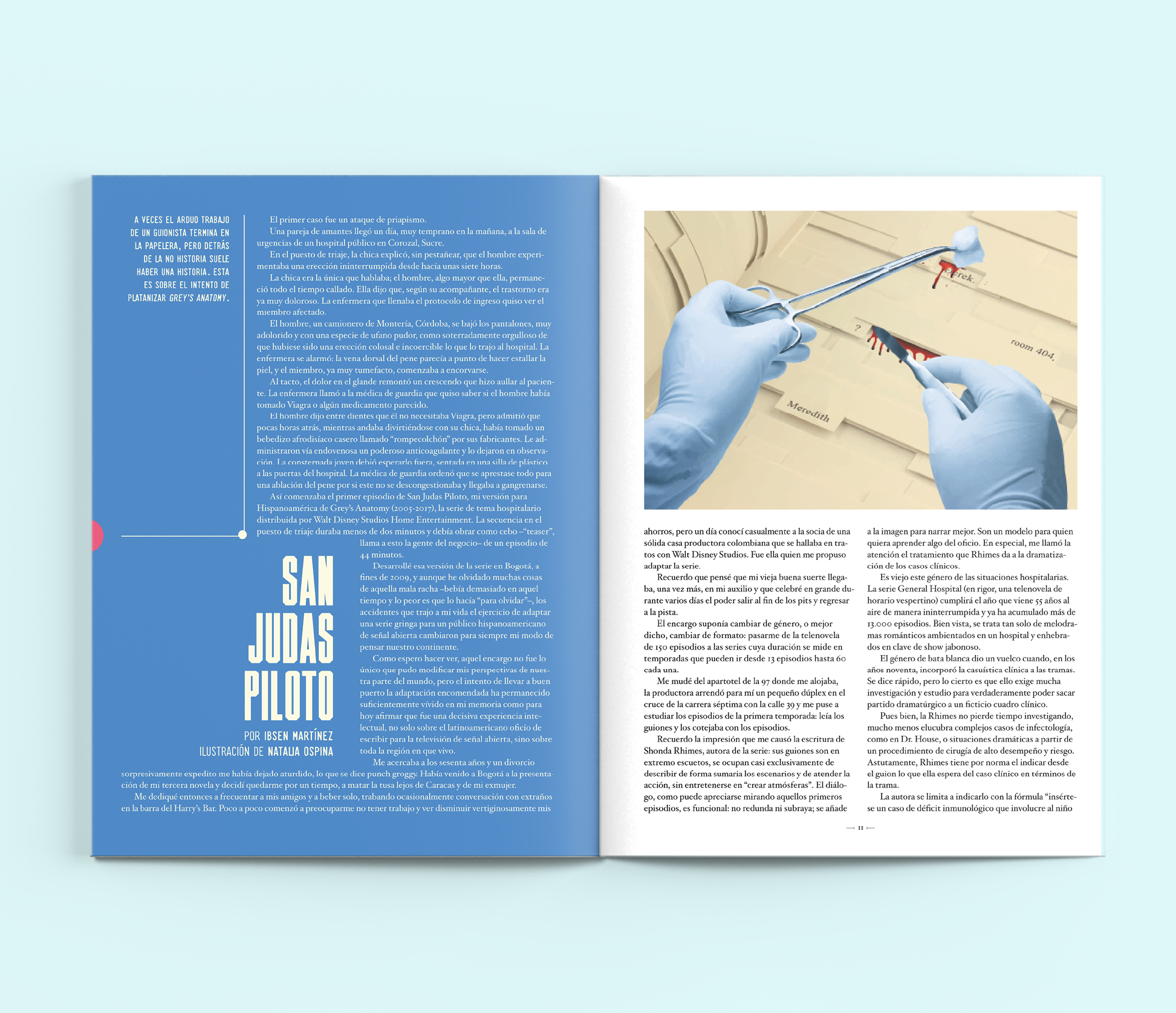 Issue #192 of El Malpensante is a small dossier about contemporary television. In this edition we used Matt Willey’s all-caps-typefaces Timmons NY and BWord for titles and page navigation, and Hoefler Text for body copy.