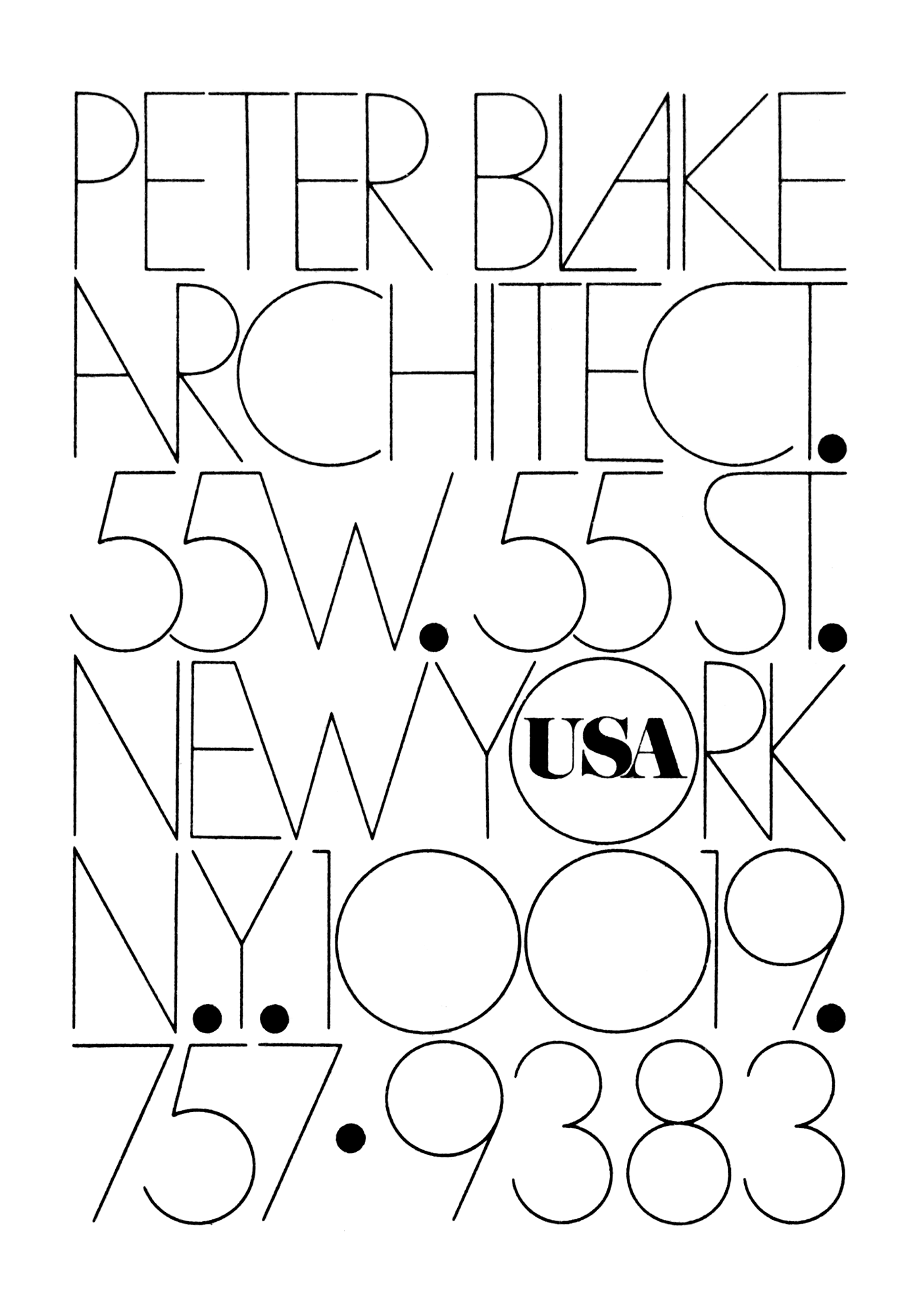 Peter Blake Architect logo Contributed by Stephen Coles on Apr 2nd, 2018. Artwork published in circa 1965. Source: readymag.com Image: Herb Lubalin Study Center. License: All Rights Reserved. Typefaces More about L&C HairlineGet L&C HairlineMore about Pistilli RomanGet Pistilli Roman Formats Branding/Identity (8357) Topics Architecture (1395) Designers/Agencies Herb Lubalin (32) Lubalin Smith Carnase (5) Tagged withstacked and justified (643)logos (4930)period (.) (147)modified typeface (1732)alternate glyphs (1427)only type (1270)contrasting weights (178)architects (176)wall of type (258)early uses (2204)uses by the typeface’s designer (1249)type in a circle (594)punctuation (27) Artwork location United States (9838) New York City (2890) In SetsPersonal Favorites (Stephen Coles) (106)fashion (HUMBERTO CUNHA) (5)Fav Pairings (Juan Ortega) (177)REF (Longwen Wei) (25)Print (Tony Bevan) (66)Moodboard (eschenlauer sinic) (256)70s (Giles Inara) (10)non-letters (Matthijs Sluiter) (56)Le Rêve (Theodore Ian Iagö) (24) 2 Comments on “Peter Blake Architect logo” Quan says: Apr 4th, 2018 4:59 pm This brings me joy!!! Robert King says: Apr 17th, 2018 1:00 pm This is wonderful! Post a comment Name Email – will not be published Website Your response Submit Comment More L&C Hairline in use Charles Mingus — Mingus Moves album art1973Bob DefrinContributed by Chris Purcell Thayer Coggin, Designed by Milo Baughman labelc. 1975unknownContributed by Stephen Coles Sweetcrab by Margaret Summerton (Doubleday)1971Emanuel SchongutCheryl BrownContributed by Florian Hardwig Staff Pick Sponsor More in Architecture Looking For Architecture. Dialoguer avec les milieux habités2025Éditions deux-cent-cinqContributed by 205TF Yale School Of Architecture Poster2014PentagramMichael BierutJessica SvendsenContributed by Shiva Nallaperumal Staff Pick Selection by Ronnie Sassoonc. 2021IndexAsad PervaizAna SantiagoContributed by ana santiago Group Le Monde headquarters wayfinding2020SnøhettaContributed by 205TF Staff Pick More in Branding/Identity Twin Forrest2014Twin ForrestContributed by Matt Yow Special Agent ’67 logo1967Contributed by Nick Sherman Oslo Nye Teaterc. 2021Mihail MihaylovIna BrantenbergTank Design OsloContributed by Mihail Mihaylov Staff Pick Favorite Animal2022Basar StudioContributed by Basar Studio More Fonts In Use Scape2019Toan Vu-HuuContributed by BVH Type Staff Pick Julia Born: Title of the Show2009Julia BornLaurenz BrunnerContributed by Stephen Coles Staff Pick Sperling gallery visual identity2021Astrid SemeContributed by Astrid Seme Staff Pick Fulgurances Laundromat 2022 posters2022HelmoContributed by Eliott Grunewald Staff Pick