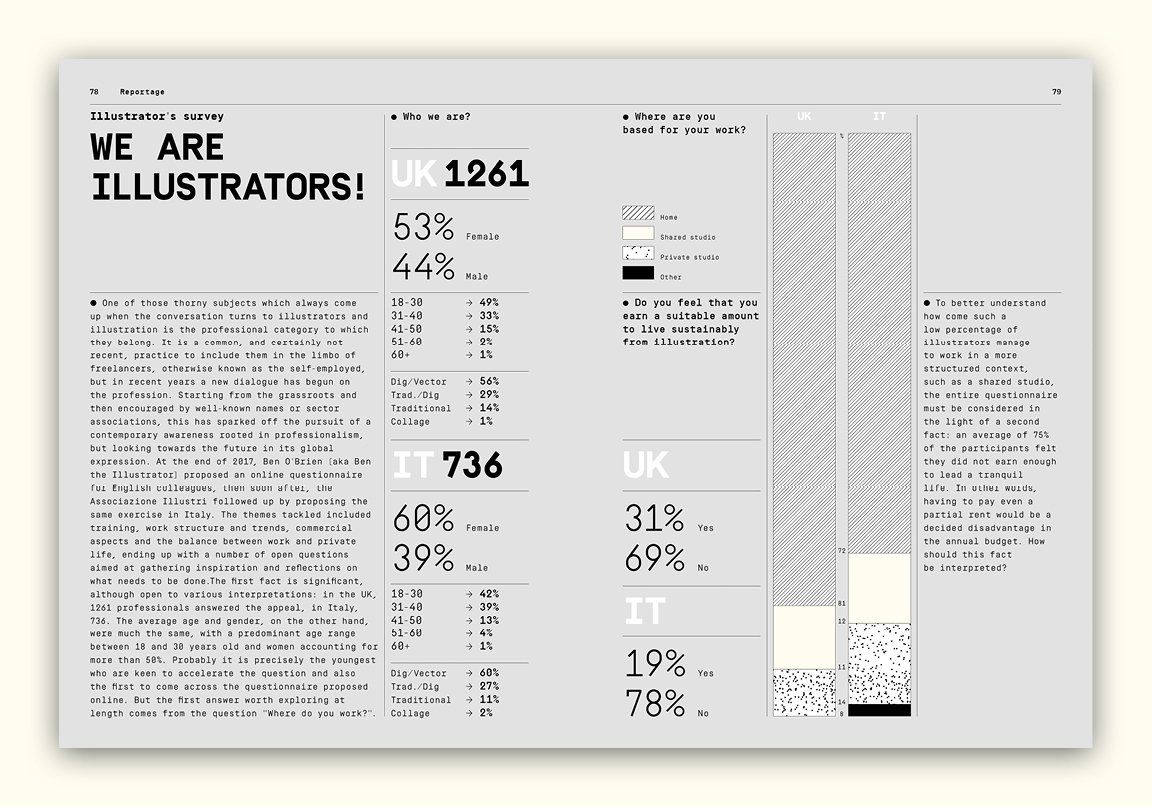ILIT (illustratore italiano) is the magazine of illustration and Italian illustrators. Published quarterly, it is designed by Filippo La Duca with art direction by MOM Studio. The images shown here are from the March 2018 issue (year 3, number 9). See more images on illustratoreitaliano.net.