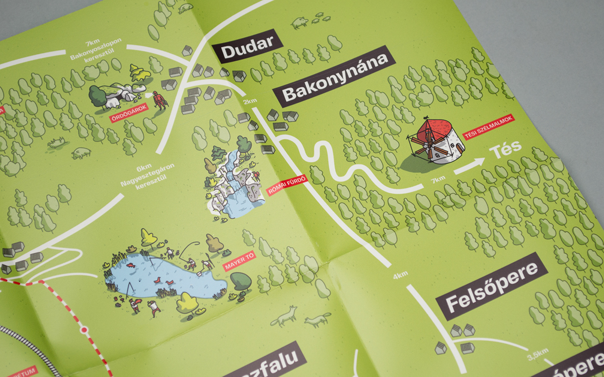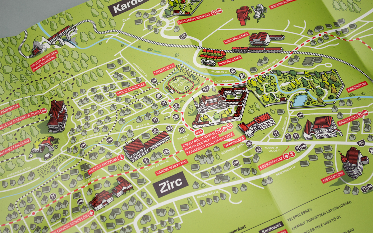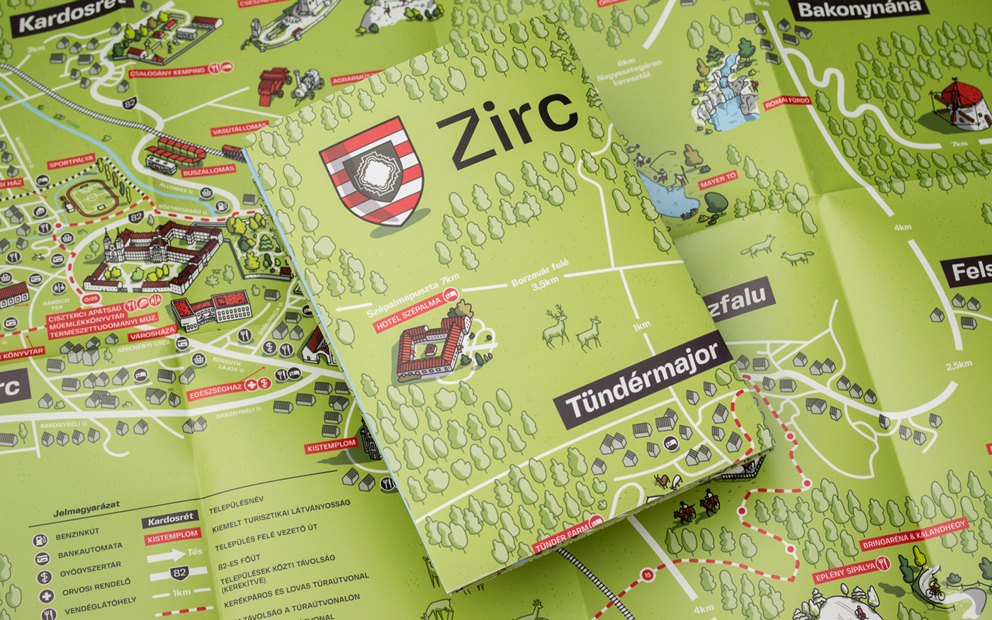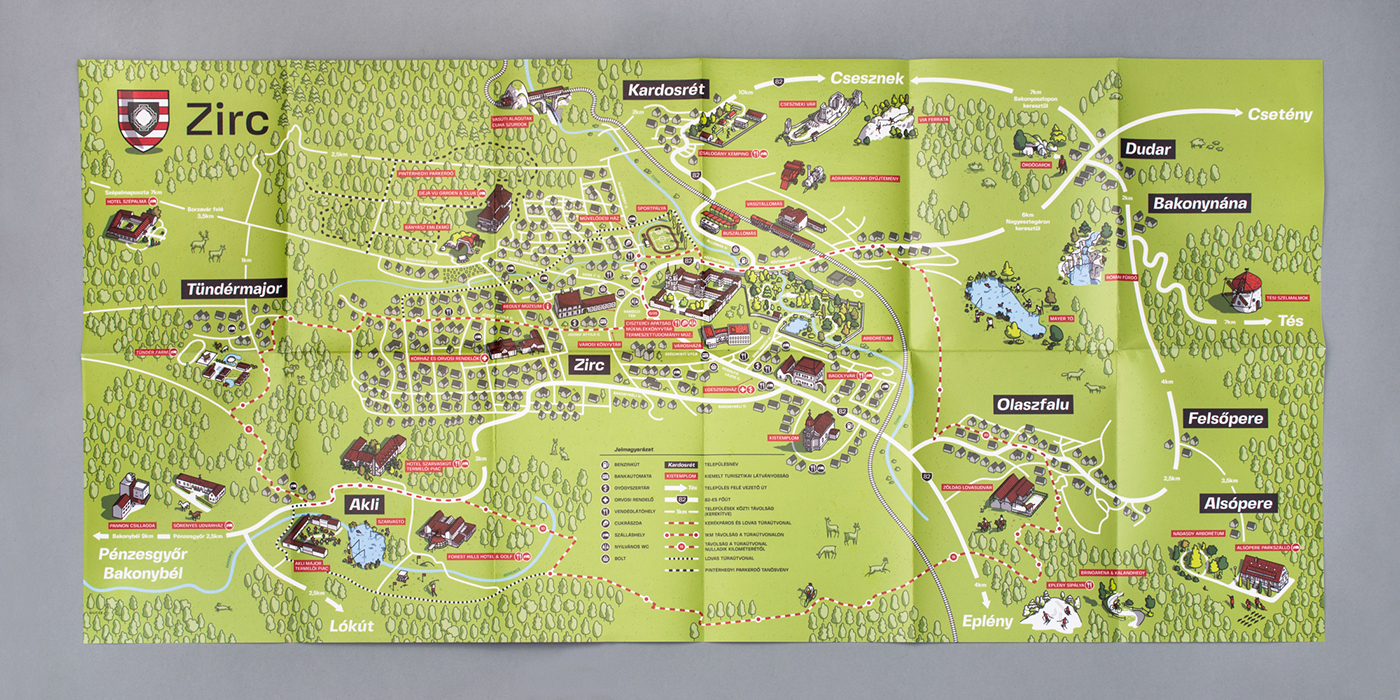 Fivo Sans Modern in use for all text on this illustrated tourist map of Zirc, Hungary, designed by Gergő Gilicze.