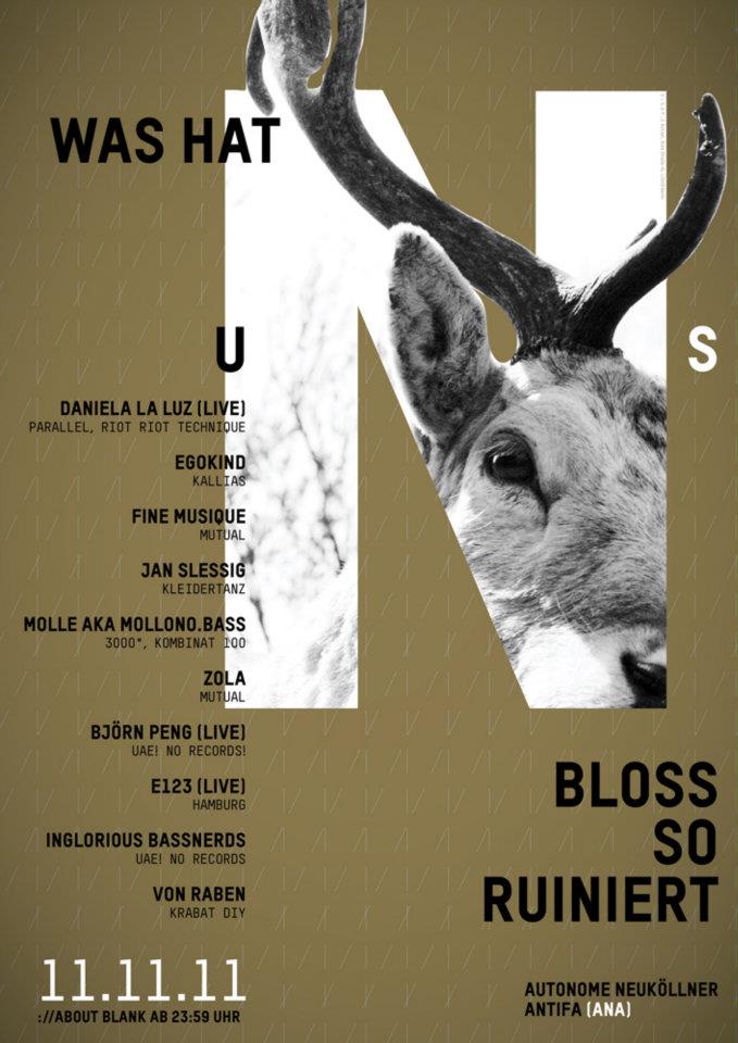 Was hat uns bloss so ruiniert concert poster Contributed by Dommä Lesüh on Sep 12th, 2012. Artwork published in 2012. Source: gegenfeuer.info Photo: Dommä Lesüh. License: CC BY-NC. Artwork by Dommä Lesüh. Was hat uns bloss so ruiniert — Chaos Typo Use! Poster for a concert organized by Autonome Neuköllner Antifa (ANA) at ://about blank, Berlin. Typefaces More about T-StarGet T-Star Formats Posters/Flyers (5768) Topics Event (3217) Activism (1111) Music (6365) Designers/Agencies gegenfeuer (2) Tagged withgold (383)deer (9)concert & gig posters (514)anti-fascism (15)German (language) (2533)lyrics (177)Die Sterne://about blank (2)lineups (291)right-aligned text (265)all caps (7613)contrasting sizes (665) Artwork location Germany (3872) Berlin (1151) Post a comment Name Email – will not be published Website Your response Submit Comment More T-Star in use DesignscheißJan KönigContributed by Florian Hardwig Blog The Norwegian Directorate of Immigration (UDI)NeueContributed by Andreas Kofler Vinaturel wine label2017Markus SchäferKatharina MoelleBüro InkContributed by Markus Schäfer Sponsor More in Event “Can you name five designers of color?”, Phase II exhibition, MICA2019Will KuriaContributed by Florian Hardwig Staff Pick Oslo Urban Peace Weekc. 2017SnøhettaContributed by Frode Helland (Monokrom Skriftforlag) 24. HfG-Rundgang Offenbach 20222022Katharina LandischContributed by Katharina Landisch Staff Pick Aldermaston to London Easter 62 poster1962Ken Garland & AssociatesContributed by Florian Hardwig Staff Pick More in Posters/Flyers Den Armen tom besten, Museum Schwedenspeicher2016Arndt und SeeligContributed by Florian Hardwig Staff Pick Adelaide Festival 20152015IS Design + DigitalVoiceDesignLabContributed by Gayaneh Bagdasaryan Architectural Planner – Varna, October 20182018Stalker StudioContributed by Vassil Kateliev FAGS*: Fightin’ Against Gay Slurs2023Dario ManzoContributed by Dario Manzo More Fonts In Use How Music Works by David Byrne2012Dave EggersContributed by Stephen Coles Staff Pick Braun TS 45 control unit1964Dieter RamsBraunContributed by Stephen Coles Staff Pick Jefferson Airplane Takes Off album art1966unknownContributed by Nick Sherman Staff Pick London Transport ad: Edward Johnston1937London TransportPhoto(s) by mikeyashworth on Flickr. Staff Pick