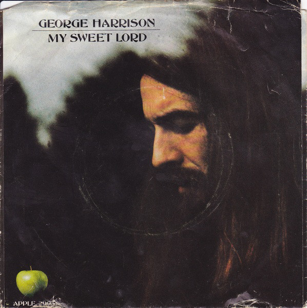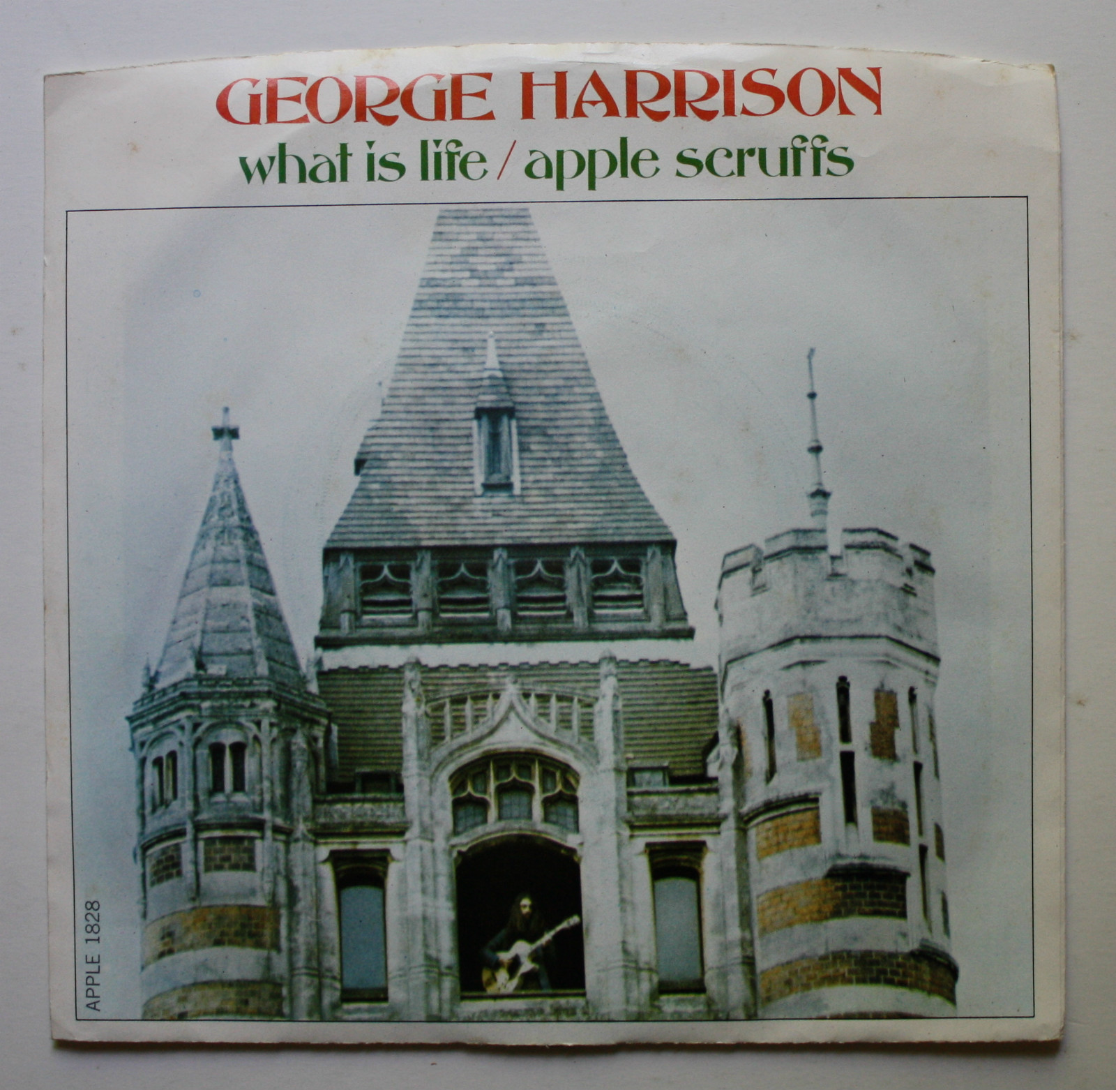 Some of Feinstein’ photographs from that session appeared instead on the picture sleeves for the singles “My Sweet Lord” / “Isn’t It A Pity” and “What Is Life” / “Apple Scruffs”. Both the 33⅓ album and the 45rpm singles feature the Abbott Old Style typeface.