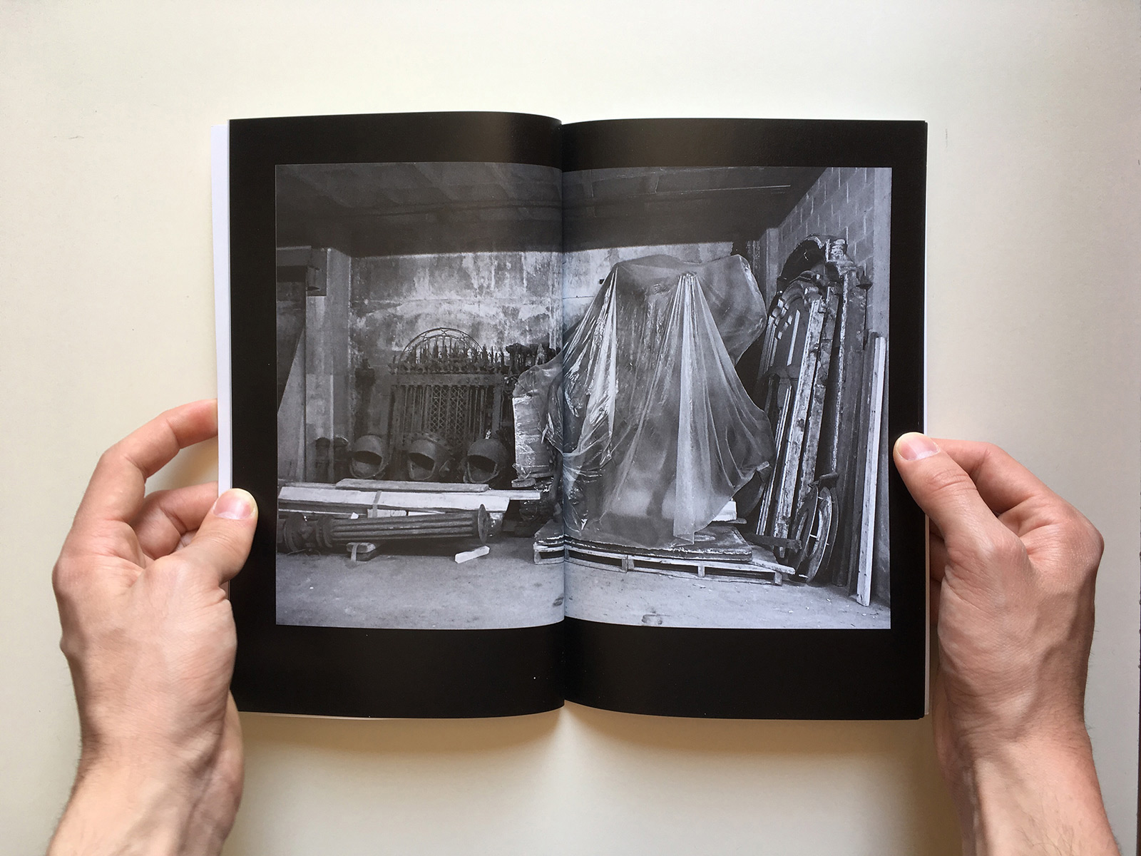 In July 2015, Matteo Guidi visited Barcelona’s municipal stores to view sculptures withdrawn from the public space. During one of his visits to the stores, Guidi met a group of curators and architects who were working on the exhibition Franco, Victory, Republic and who were there to examine the equestrian statue of dictator Franco, the work of Josep Viladomat. To do this, they asked one of the guards – a quiet man who till then had opened and closed the doors so that the group could gain access to the sculptures – to remove the sheet of plastic covering the statue. Guidi’s interest was kindled at that moment, leading to this work by him.