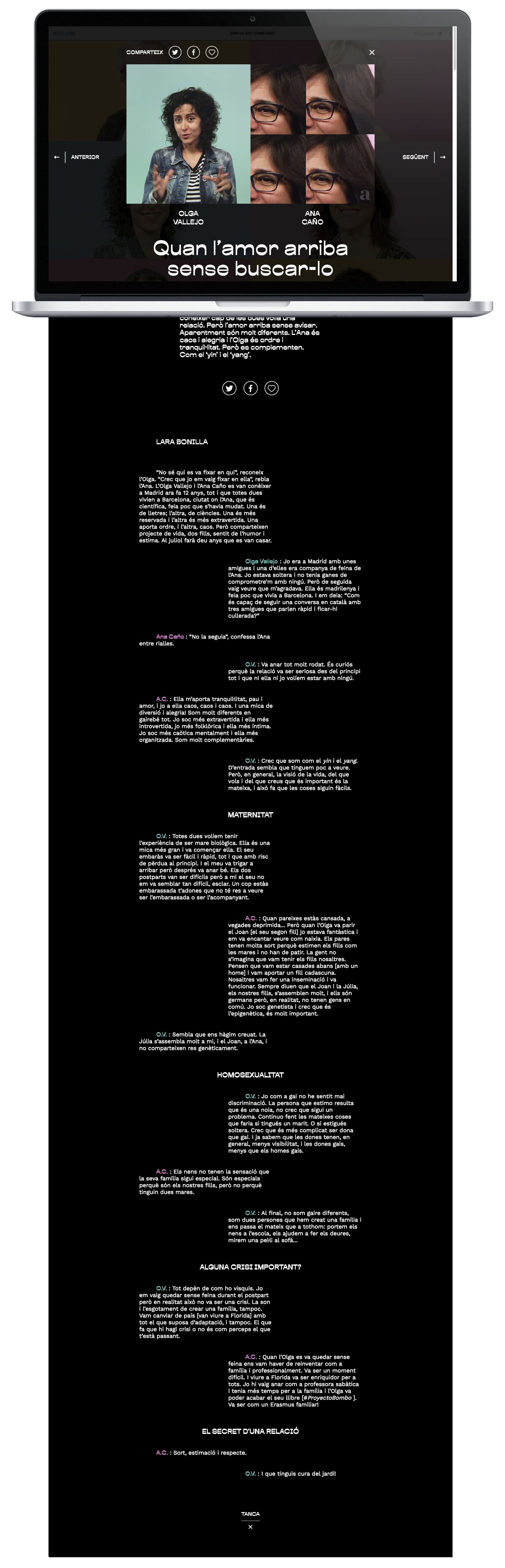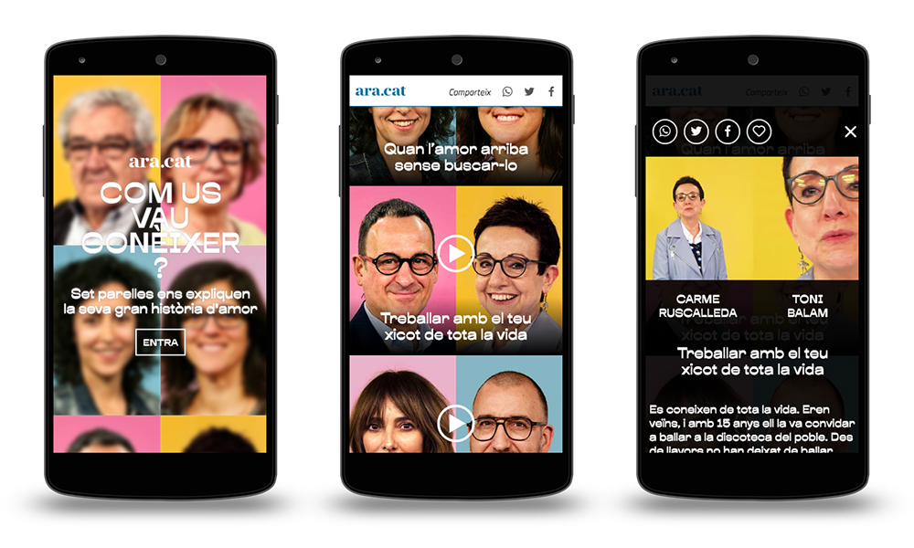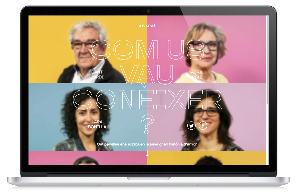 Com Us Vau Conèixer? (How did you meet?) is a special feature for ara.cat newspaper. In both video and text, couples tell about how they got to know each other –– in other words, they share their love stories, to celebrate Saint George’s day. On this day, people celebrate the national patron saint of Catalonia by giving each other books and roses.
