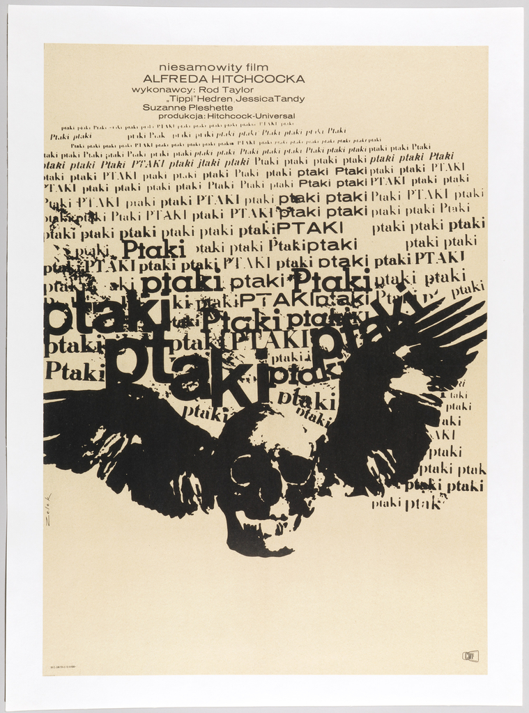 Shown here is one of Zelek’s most striking posters, designed only a few years after he graduated from Henryk Tomaszewski’s class at the Warsaw Academy of Fine Arts in 1961. It’s a movie poster made for the Polish release of Hitchcock’s The Birds (1963).