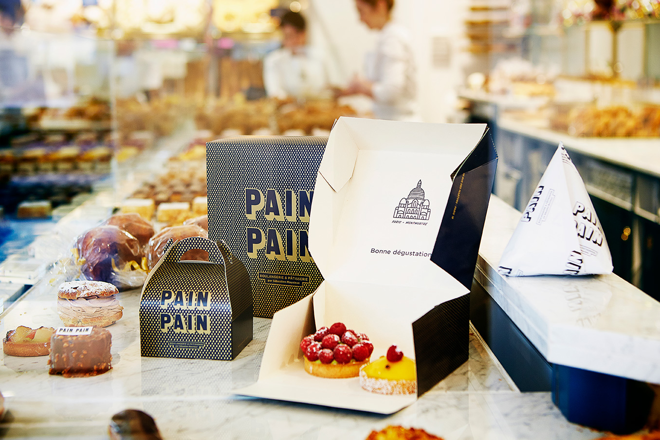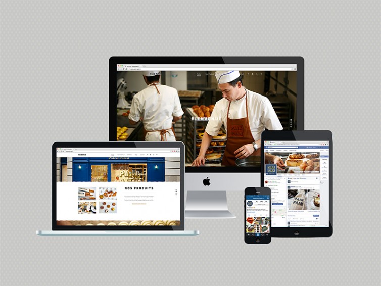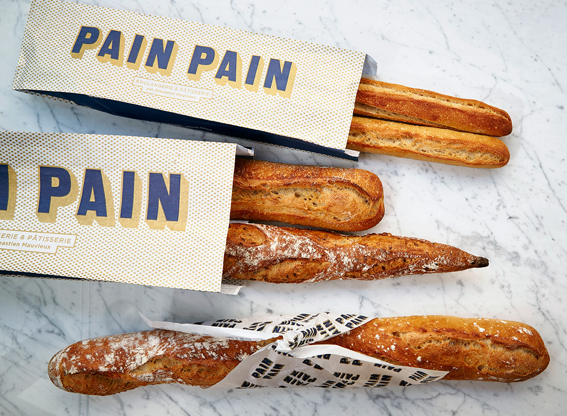 Award-winning baker Sébastien Mauvieux asked La Petite Grosse to create a high quality, mouthwatering look for his new Parisian bakery Pain Pain (Bread Bread). The design was rolled out from window lettering and staff clothing to packaging and a showcase website.