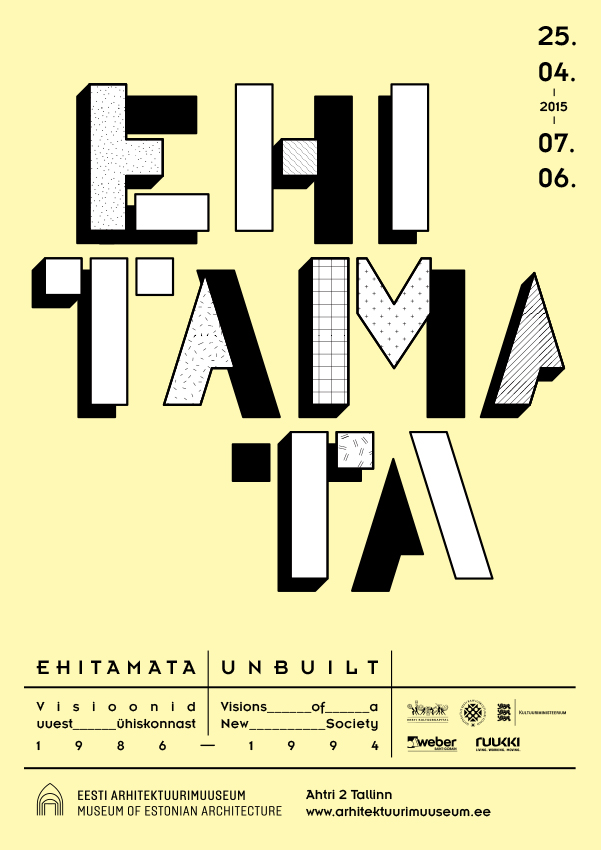 Poster and catalogue for Ehitamata (Unbuilt), Visions for a New Society 1986–1994, an exhibition in the Museum of Estonian Architecture exploring the unrealized architectural projects and proposals from the period of socio-economical transition in Estonia.