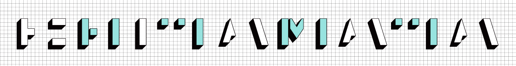 The exhibition title – set in Neville Brody’s 1989 Insignia – was designed with half-assembled letters forming the word EHITAMATA (unbuilt).