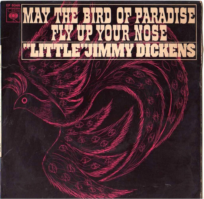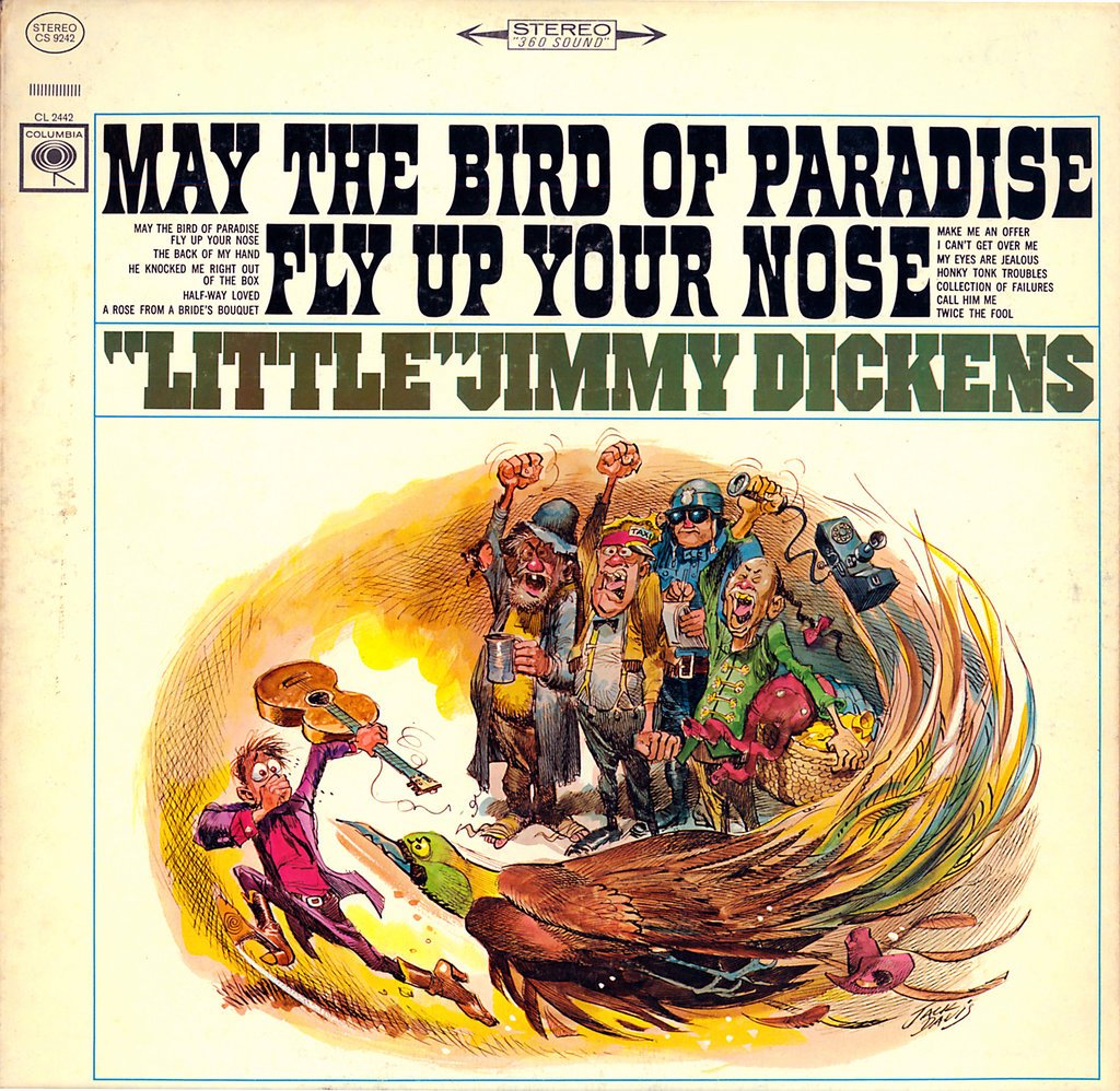 “May the Bird of Paradise Fly Up Your Nose” is a 1965 novelty song written by Neal Merritt (1930–1975) and performed by Little Jimmy Dickens (1920–2015). From Wikipedia: