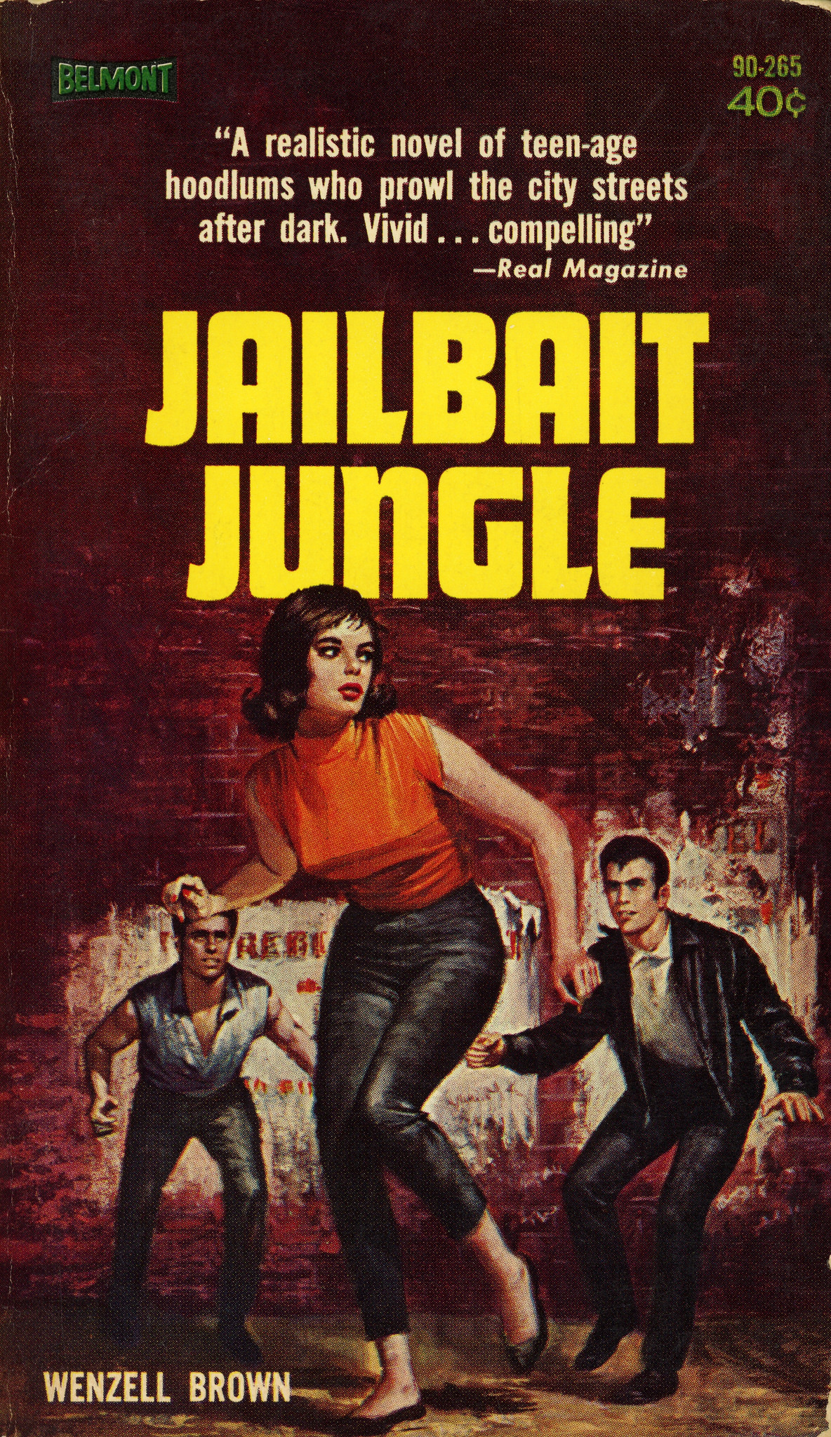 Jailbait Jungle by Wenzell Brown (Belmont Books) Photo(s) by Steve. Imported from Flickr on Apr 7, 2019. Artwork published in 1962. Source: www.flickr.com Uploaded to Flickr by Steve and tagged with “futuradisplay”. License: All Rights Reserved. “A realistic novel of teen-age hoodlums who prowl the city streets after dark. Vivid… compelling.” Wenzell Brown – Jailbait Jungle (Original Title: The Big Rumble). Published by Belmont Books [90–265]. Cover artist unknown… Robert Maguire? Typefaces More about Futura DisplayGet Futura DisplayMore about Alternate GothicGet Alternate GothicMore about FuturaGet Futura Formats Books (6469) Topics Entertainment (1520) Literature (3003) Tagged withbook covers (5810)paperbacks/softcovers (1946)pulp (81)flat depth (206)type integrated with image (438)biform/unicase (278)fiction books (500)1960s (769)Belmont Books (2)reversed type on an image (1203) Artwork location United States (9840) In Setsvintage (isabel) (76)color (isabel) (53)retro-font (Maria E) (6)Futura Display (Maria E) (4) Post a comment Name Email – will not be published Website Your response Submit Comment More Futura Display in use Ray Charles – Yes Indeed! album art1958Marvin IsraelLoring EutemeyContributed by Florian Hardwig Harry Belafonte – Sings Five Early Songs / The Islanders – Calypso In The Sun album artc. 1961Burt PortnoyPhoto(s) by Bart Solenthaler on Flickr. The Regimental Band of the Windsor Guards – Brass Band Bash: Famous Military Marches album art1961Sam SulimanContributed by Stephen Coles Sponsor More in Literature Untitled Epic Poem on the History of Industrialization by R. Buckminster Fuller1962Contributed by Stephen Coles Staff Pick Tschann 13, Librairie de la BnFc. 2016Brest Brest BrestContributed by 205TF Ius deambulandi by Sarah Vanuxem2023T&D StudioTom BücherDelhia DondainContributed by delhia dondain Doskonała próżnia by Stanisław Lem (Czytelnik)1971Andrzej HeidrichContributed by Malou Messien More in Books Épreuves de la matière. La photographie contemporaine et ses métamorphoses2023Des SignesContributed by 205TF Capitalism & Slavery by Eric Williams1966Sam SalantContributed by Chris Purcell Greenwood by Jean Phillips (Lancer)1965unknownContributed by Garrison Martin Martiaanse tijdsverschuiving by Philip K. Dick (Meulenhoff, 1974)1974Chris FossContributed by Florian Hardwig More Fonts In Use Citibank Identity1998PentagramPaula ScherContributed by Stephen Coles Staff Pick Opuscolo Editions #1, Rosa, the World of Baroque and Galante Italian Music by Federico Campagna2020Tânia RaposoContributed by Tânia Raposo Staff Pick The English Riviera tourism postersc. 1982unknownJohn GorhamDavid HughesContributed by Florian Hardwig Staff Pick Wolf-Musterbox2012Wehr & WeissweilerContributed by Florian Hardwig Blog