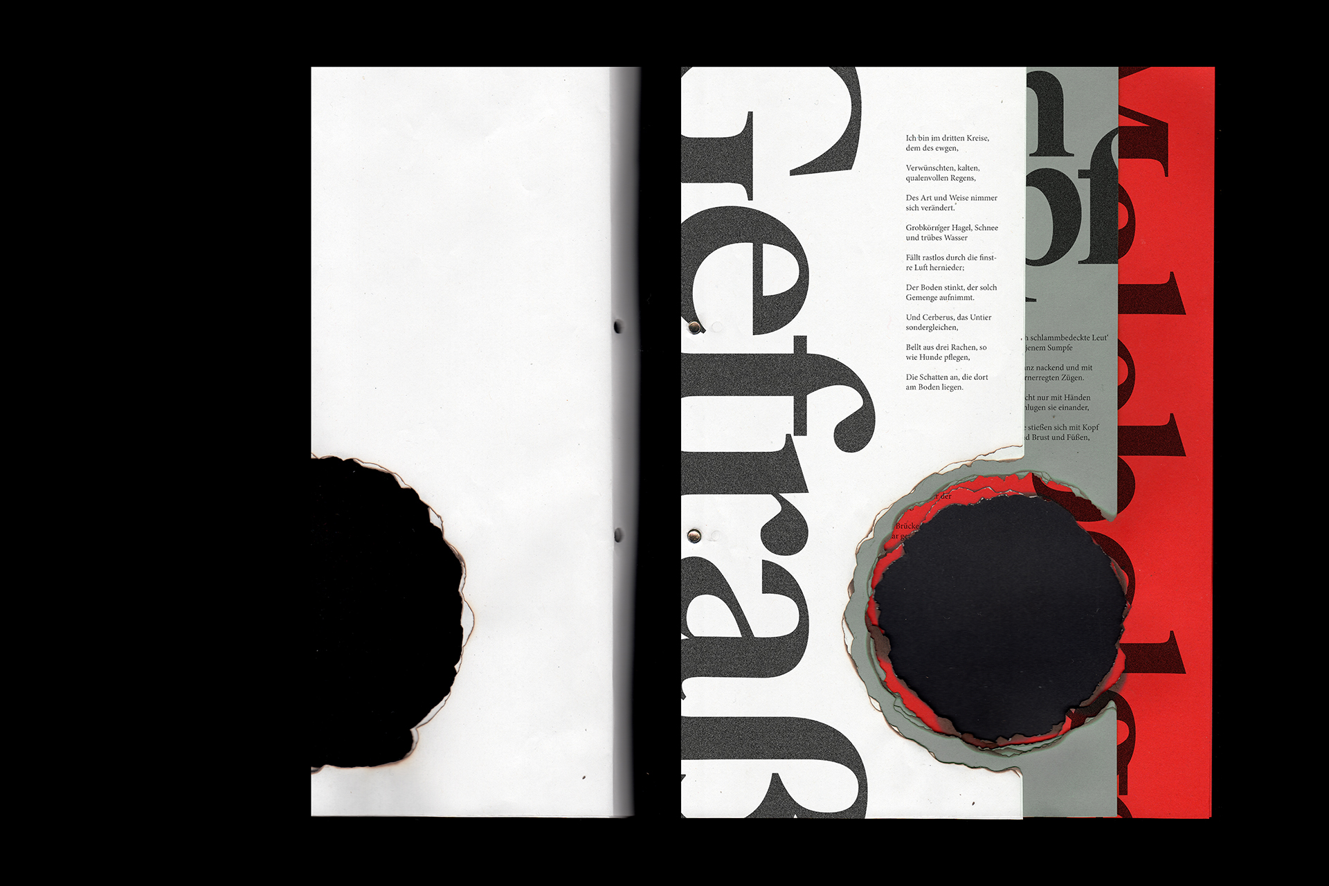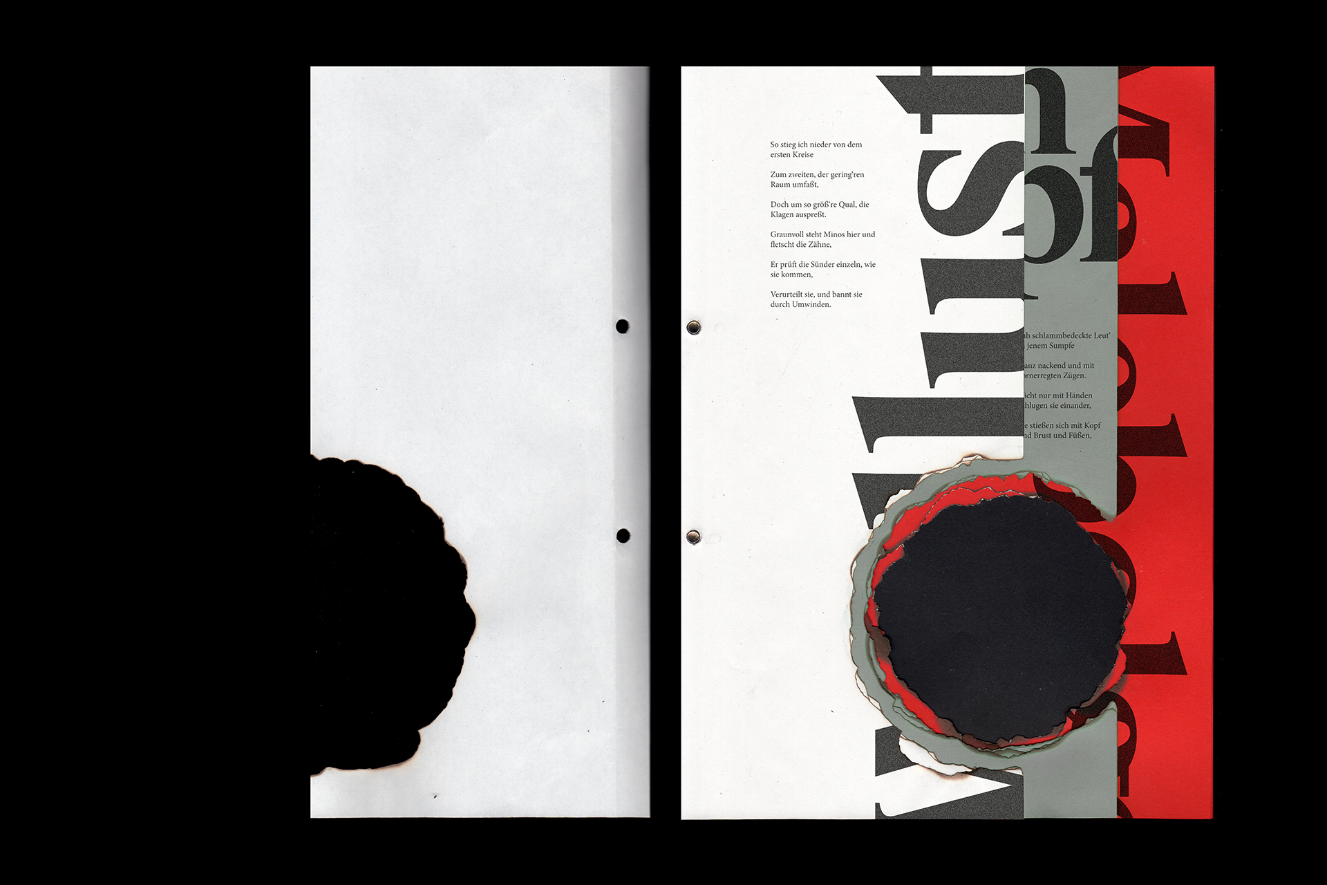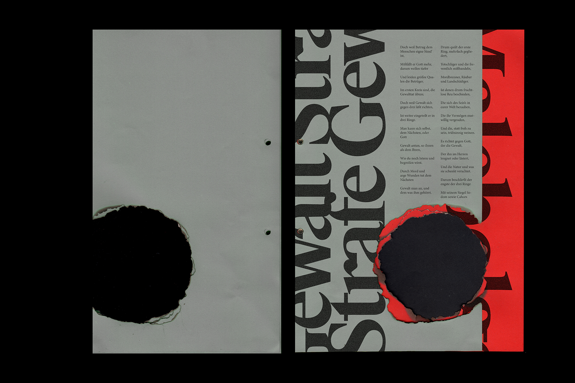 The Divine Comedy by Dante Alighieri Contributed by Swiss Typefaces on May 23rd, 2018. Artwork published in circa 2018. Source: www.behance.net Viktor Tittel. License: CC BY-NC-ND. “This project is a conceptual visualization of Dante Alighieri’s Divine Comedy. The different combinations of material characteristics should generate an interactive way of reading and reflect the textual content.” – Viktor Tittel Suisse Works is part of Suisse typeface, available from Swiss Typefaces. Source: www.behance.net Viktor Tittel. License: CC BY-NC-ND. Source: www.behance.net Viktor Tittel. License: CC BY-NC-ND. Source: www.behance.net Viktor Tittel. License: CC BY-NC-ND. Source: www.behance.net Viktor Tittel. License: CC BY-NC-ND. Source: www.behance.net Viktor Tittel. License: CC BY-NC-ND. Source: www.behance.net Viktor Tittel. License: CC BY-NC-ND. Source: www.behance.net Viktor Tittel. License: CC BY-NC-ND. Source: www.behance.net Viktor Tittel. License: CC BY-NC-ND. Source: www.behance.net Viktor Tittel. License: CC BY-NC-ND. Source: www.behance.net Viktor Tittel. License: CC BY-NC-ND. Typefaces More about Suisse WorksGet Suisse Works Formats Booklets/Pamphlets (2431) Topics Graphic Design (3041) Literature (3081) Designers/Agencies Viktor Tittel (1) Tagged withpoetry (399)red and black (1151)one typeface family (1708)rotated type (2250)contrasting sizes (680)holes (5)Dante Alighieri (2)German (language) (2579)tight linespacing (363)self-initiated projects (441)Divina Commedia (2) Artwork location Germany (3923) Berlin (1166) In SetsType (Wych Hendra) (47)Hierarchy + Pairing (Jeré Alyse) (6)Book (Albert Hartanto) (6)Experimental (Lucas Bevilaqua) (200)Book Design (Lucas Bevilaqua) (1370) Post a comment Name Email – will not be published Website Your response Submit Comment More Suisse Works in use MIT fundraising campaign20167d8Contributed by Swiss Typefaces Staff Pick Rebelle2018Yi MaoContributed by Yi Mao ¿Dónde está mi raza?2025Raúl ZeaContributed by Monoespacio Staff Pick Sponsor More in Literature Averoigne by Clark Ashton Smith (Inpatient Press)2019Clark FilioContributed by Florian Hardwig The Thief’s Journal by Jean Genet1965unknownPhoto(s) by Make It Old on Flickr. The Halloween Tree by Ray Bradbury, Bantam1974unknownJoseph MugnainiPhoto(s) by Make It Old on Flickr. A Spell of Winter by Helen Dunmore (Penguin, 2019)2019Holly OvendenJohn HamiltonContributed by Florian Hardwig Staff Pick More in Booklets/Pamphlets Design for all? Diversity as the norm exhibitionc. 2024SkalaContributed by Anna-Sophia Pohlmann (kimera) Changer la mode pour le climat Marrakech 20162016Maison SolideContributed by Production Type Staff Pick Farmer’s memo booksc. 1975Contributed by Stephen Coles Compositions2021Studio BerginiContributed by Studio Bergini Staff Pick More Fonts In Use Tonibral adc. 1979Eduardo A. CánovasContributed by Florian Hardwig Staff Pick White Girl movie graphics2016CHIPSContributed by Gareth Hague Staff Pick Of His Kingdom There Shall Be No End2018Nigel EwanContributed by Nigel Ewan Staff Pick Musée du Monde en Mutation edition2022Super TerrainContributed by 205TF Staff Pick