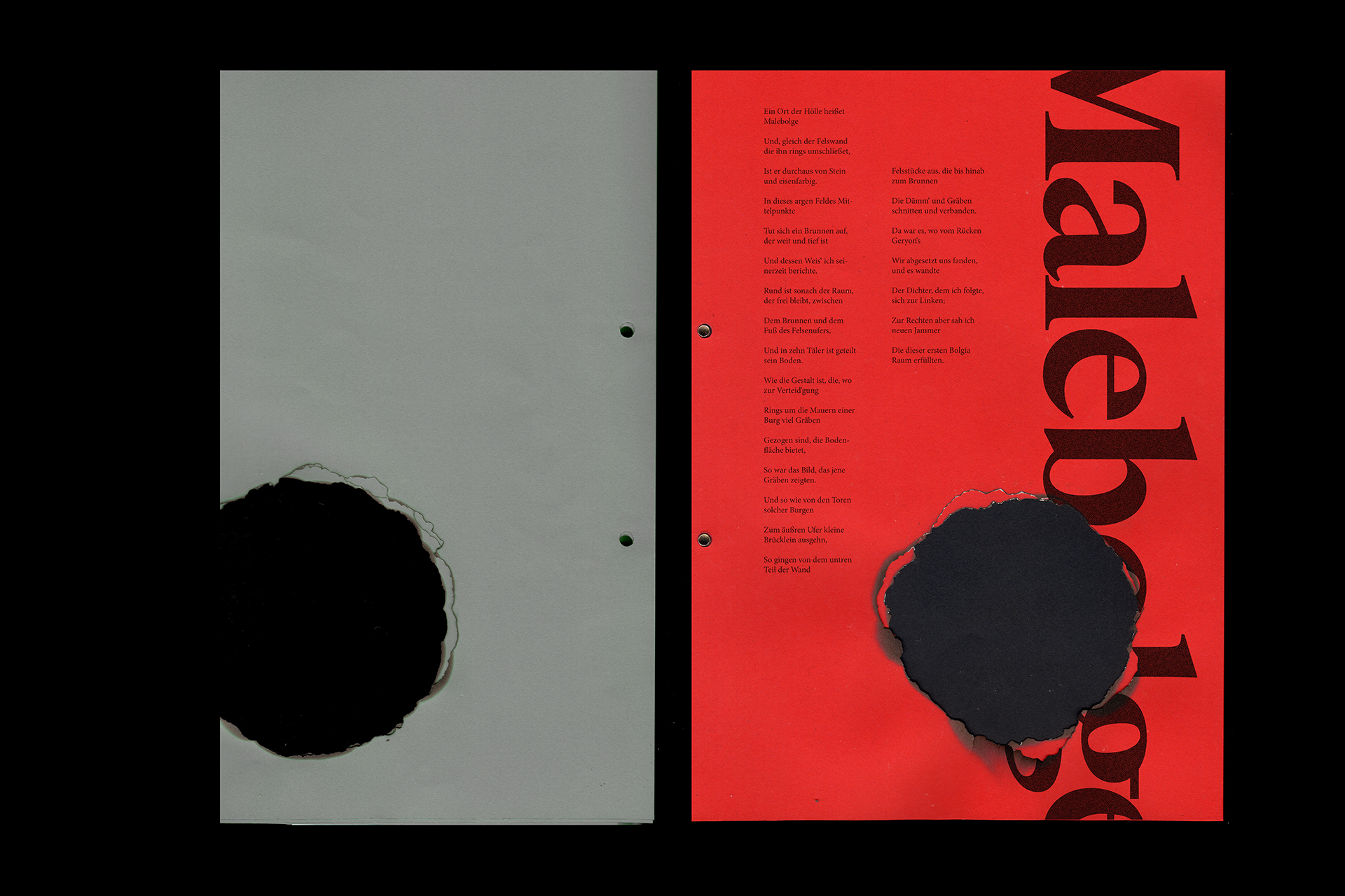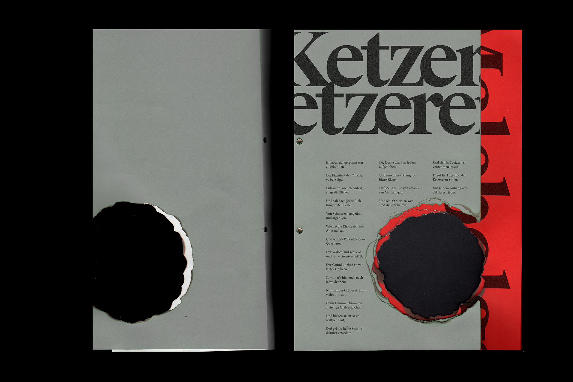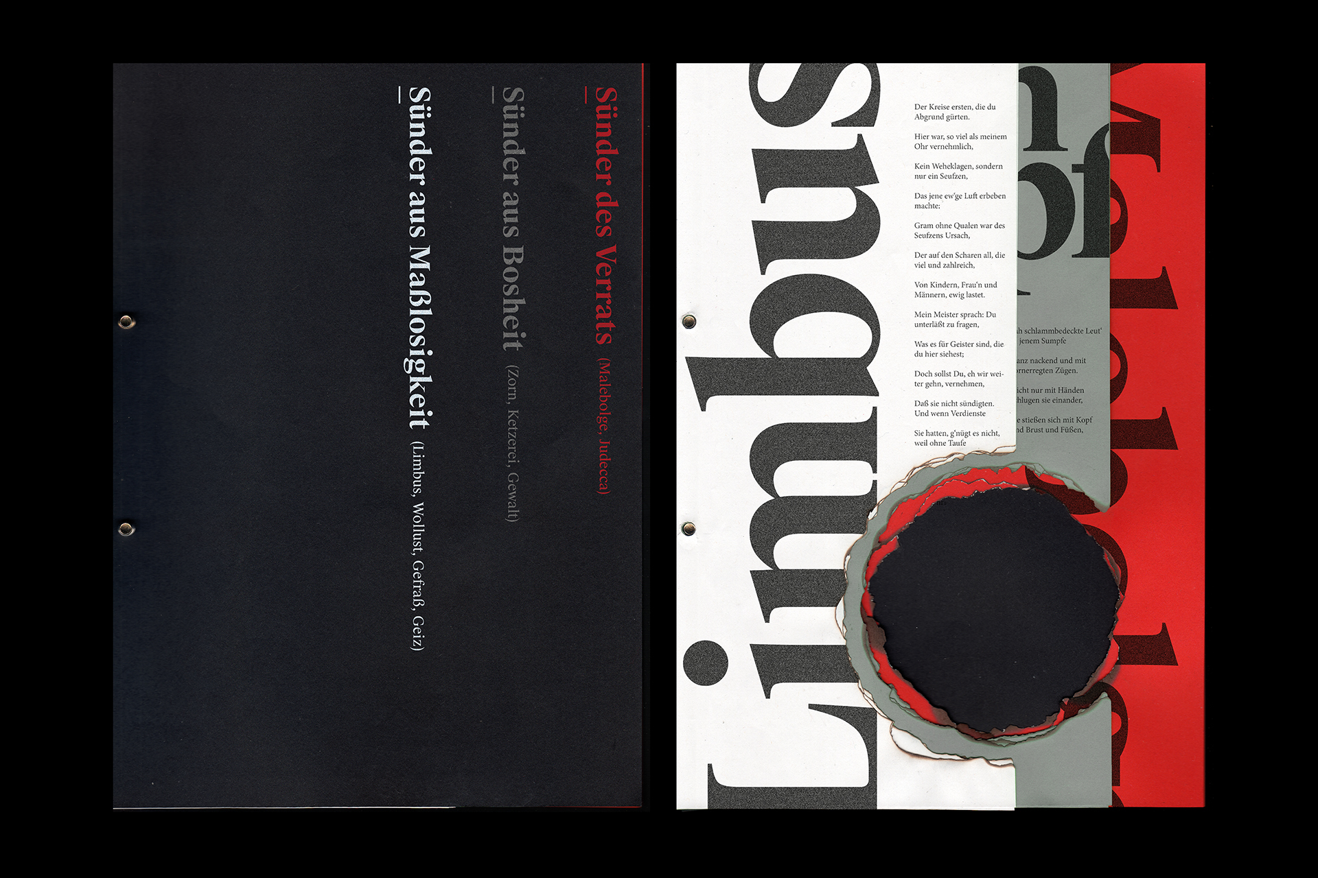 The Divine Comedy by Dante Alighieri Contributed by Swiss Typefaces on May 23rd, 2018. Artwork published in circa 2018. Source: www.behance.net Viktor Tittel. License: CC BY-NC-ND. “This project is a conceptual visualization of Dante Alighieri’s Divine Comedy. The different combinations of material characteristics should generate an interactive way of reading and reflect the textual content.” – Viktor Tittel Suisse Works is part of Suisse typeface, available from Swiss Typefaces. Source: www.behance.net Viktor Tittel. License: CC BY-NC-ND. Source: www.behance.net Viktor Tittel. License: CC BY-NC-ND. Source: www.behance.net Viktor Tittel. License: CC BY-NC-ND. Source: www.behance.net Viktor Tittel. License: CC BY-NC-ND. Source: www.behance.net Viktor Tittel. License: CC BY-NC-ND. Source: www.behance.net Viktor Tittel. License: CC BY-NC-ND. Source: www.behance.net Viktor Tittel. License: CC BY-NC-ND. Source: www.behance.net Viktor Tittel. License: CC BY-NC-ND. Source: www.behance.net Viktor Tittel. License: CC BY-NC-ND. Source: www.behance.net Viktor Tittel. License: CC BY-NC-ND. Typefaces More about Suisse WorksGet Suisse Works Formats Booklets/Pamphlets (2431) Topics Graphic Design (3041) Literature (3081) Designers/Agencies Viktor Tittel (1) Tagged withpoetry (399)red and black (1151)one typeface family (1708)rotated type (2250)contrasting sizes (680)holes (5)Dante Alighieri (2)German (language) (2579)tight linespacing (363)self-initiated projects (441)Divina Commedia (2) Artwork location Germany (3923) Berlin (1166) In SetsType (Wych Hendra) (47)Hierarchy + Pairing (Jeré Alyse) (6)Book (Albert Hartanto) (6)Experimental (Lucas Bevilaqua) (200)Book Design (Lucas Bevilaqua) (1370) Post a comment Name Email – will not be published Website Your response Submit Comment More Suisse Works in use MIT fundraising campaign20167d8Contributed by Swiss Typefaces Staff Pick Rebelle2018Yi MaoContributed by Yi Mao ¿Dónde está mi raza?2025Raúl ZeaContributed by Monoespacio Staff Pick Sponsor More in Literature Averoigne by Clark Ashton Smith (Inpatient Press)2019Clark FilioContributed by Florian Hardwig The Thief’s Journal by Jean Genet1965unknownPhoto(s) by Make It Old on Flickr. The Halloween Tree by Ray Bradbury, Bantam1974unknownJoseph MugnainiPhoto(s) by Make It Old on Flickr. A Spell of Winter by Helen Dunmore (Penguin, 2019)2019Holly OvendenJohn HamiltonContributed by Florian Hardwig Staff Pick More in Booklets/Pamphlets Design for all? Diversity as the norm exhibitionc. 2024SkalaContributed by Anna-Sophia Pohlmann (kimera) Changer la mode pour le climat Marrakech 20162016Maison SolideContributed by Production Type Staff Pick Farmer’s memo booksc. 1975Contributed by Stephen Coles Compositions2021Studio BerginiContributed by Studio Bergini Staff Pick More Fonts In Use Tonibral adc. 1979Eduardo A. CánovasContributed by Florian Hardwig Staff Pick White Girl movie graphics2016CHIPSContributed by Gareth Hague Staff Pick Of His Kingdom There Shall Be No End2018Nigel EwanContributed by Nigel Ewan Staff Pick Musée du Monde en Mutation edition2022Super TerrainContributed by 205TF Staff Pick