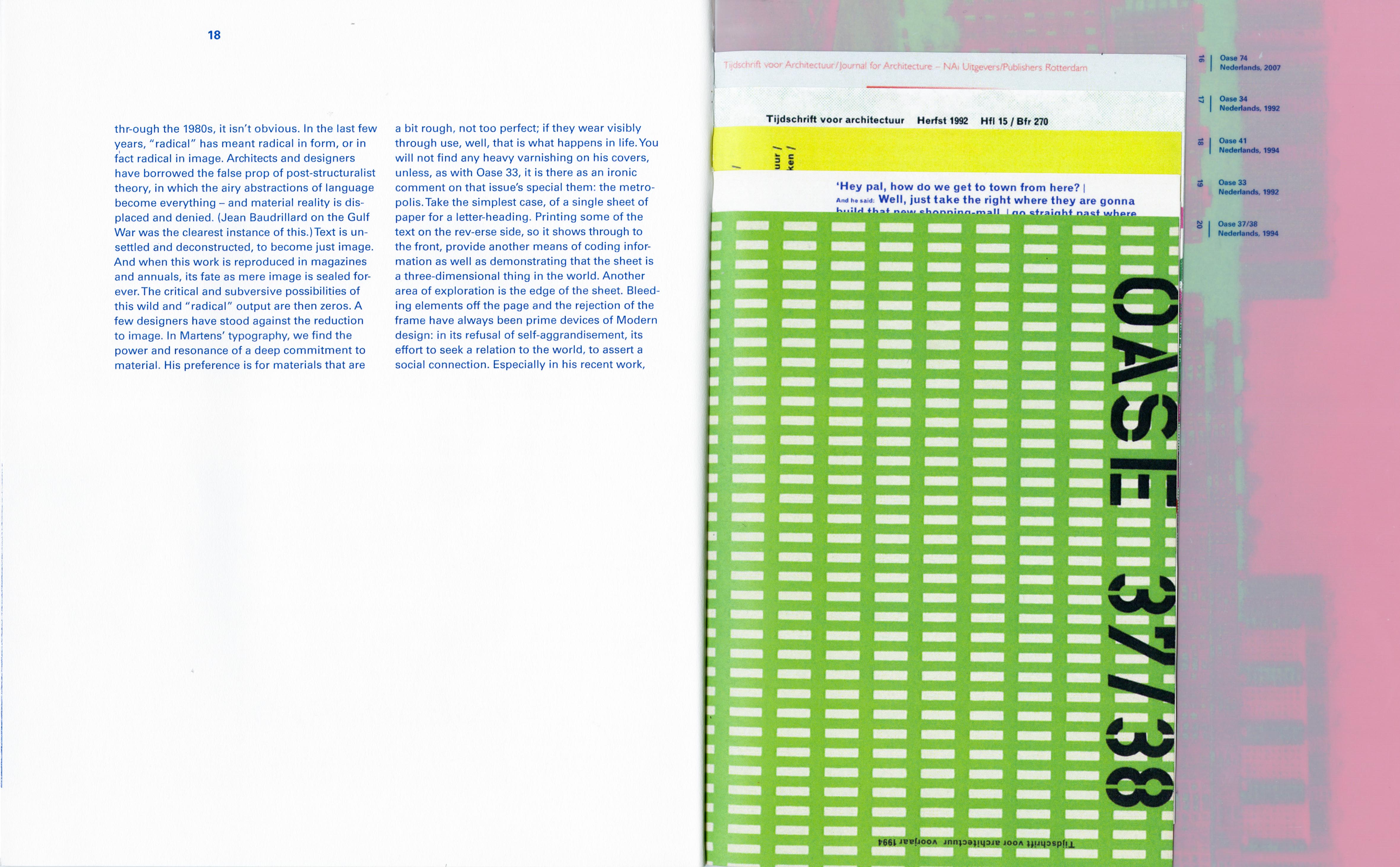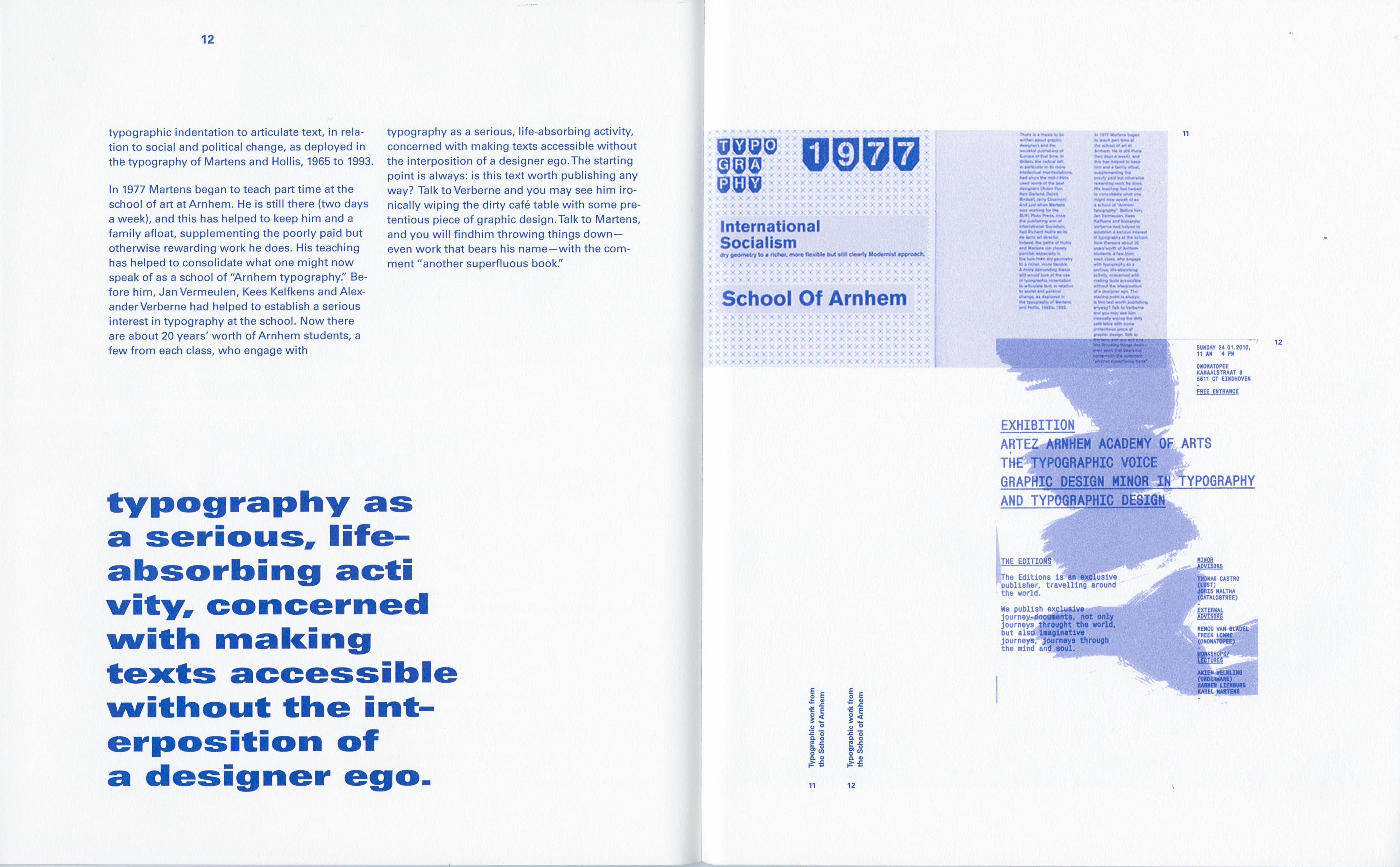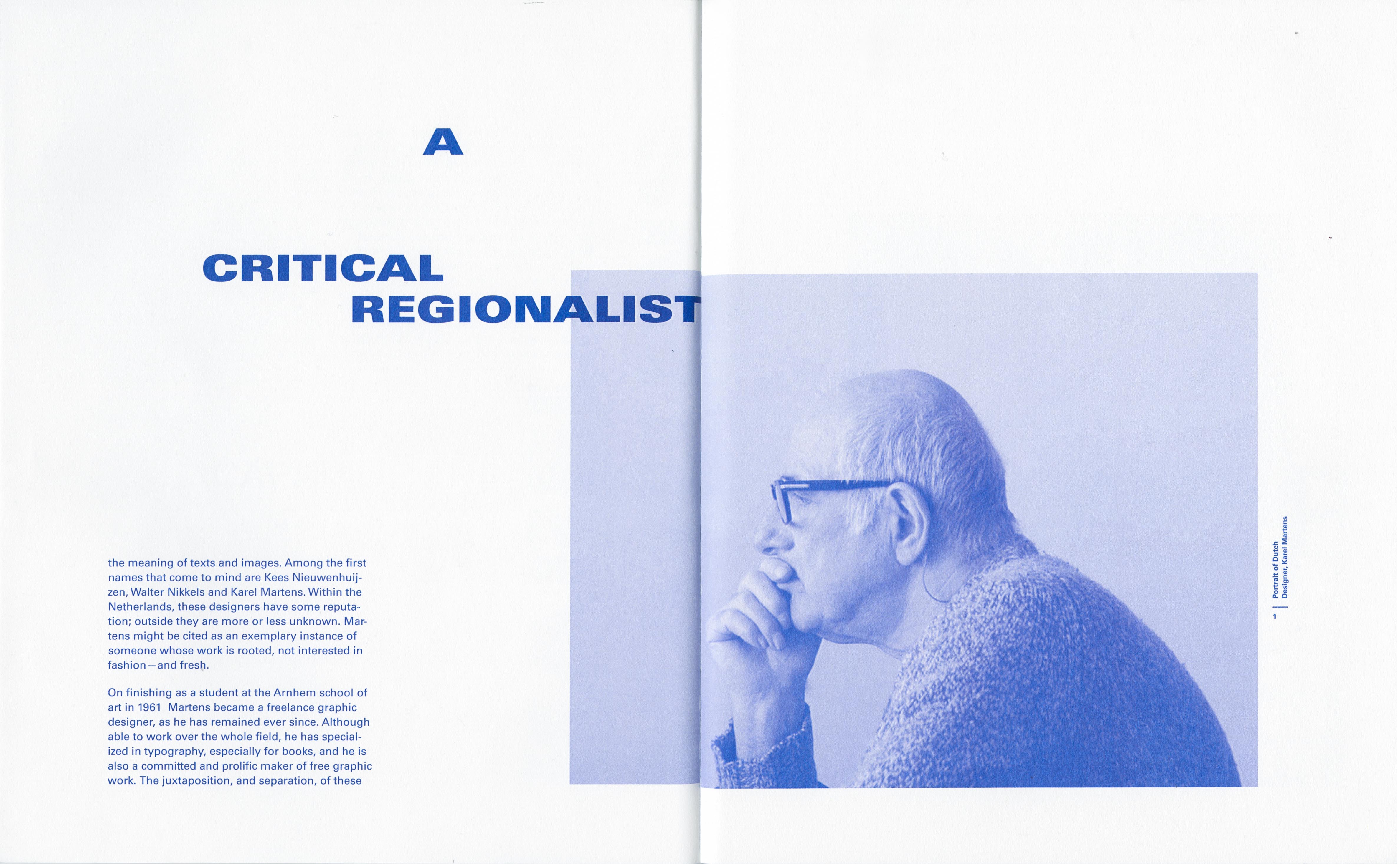 Student project for TypographyI class at the Sam Fox School in St Louis, USA. Amonochrome booklet presenting works by designer Karel Martens and the text from a Robin Kinross article – “Let the Object Speak” (Eye Magazine 1993) – which discusses Dutch graphic design with a focus on the work of Karel Martens. The fonts in use are the Regular and Ultra Black Extended styles of Univers.