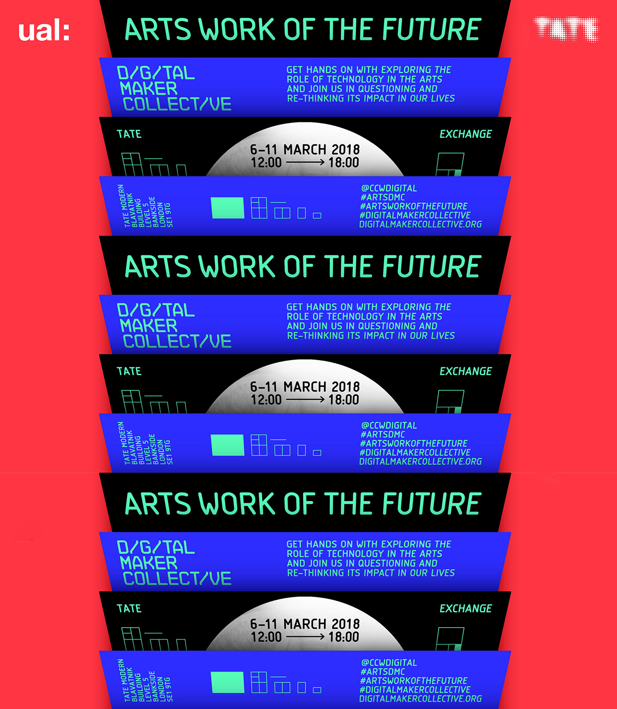 Tate London: The Digital Maker Collective, and invited guest contributors/makers from across the globe, will transform Tate Exchange into a large public tech innovation studio, a space to get hands-on with technology exploration and rapid prototyping, and discover new forms of collaborative digital making experimentation.