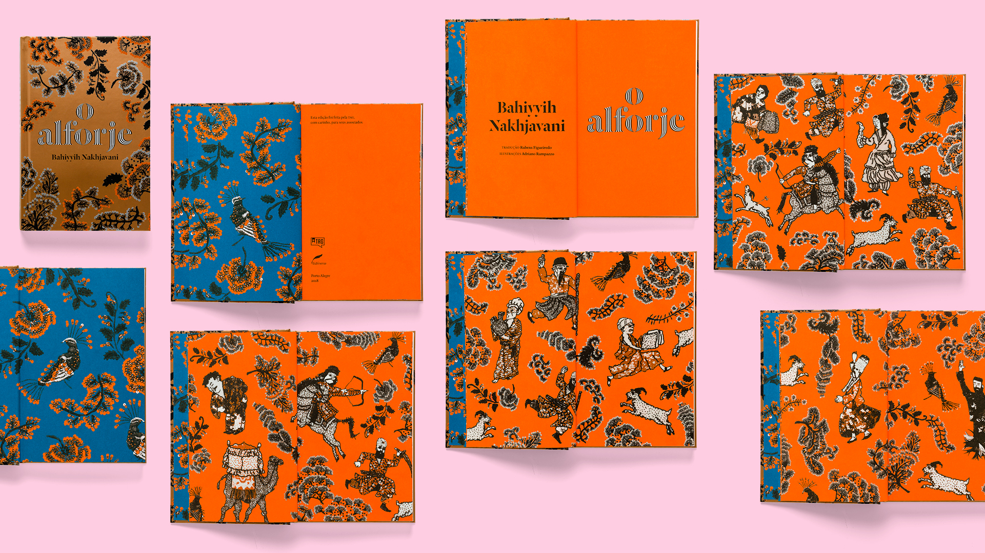 Cover and interior pages for O Alforje (The Saddlebag) by Iranian writer Bahiyyih Nakhjavani, published by Dublinense in partnership with TAG Livros — a book club in Brazil that sends a monthly surprise book to more than 20,000 subscribers.