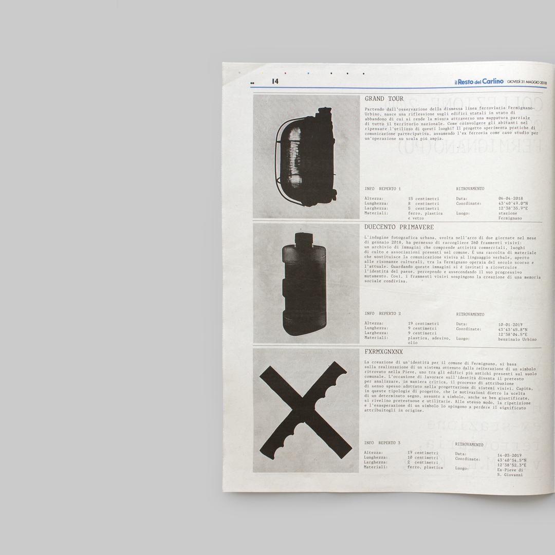 The project was realized by the students of the second year of the specialized course in communication, design and publishing, curated by Jonathan Pierini. The publication shown here was published as an insert in the Italian newspaper Il Resto Del Carlino.