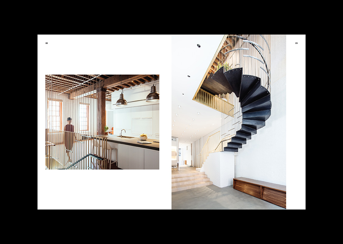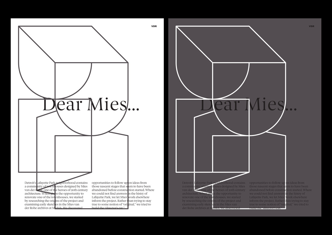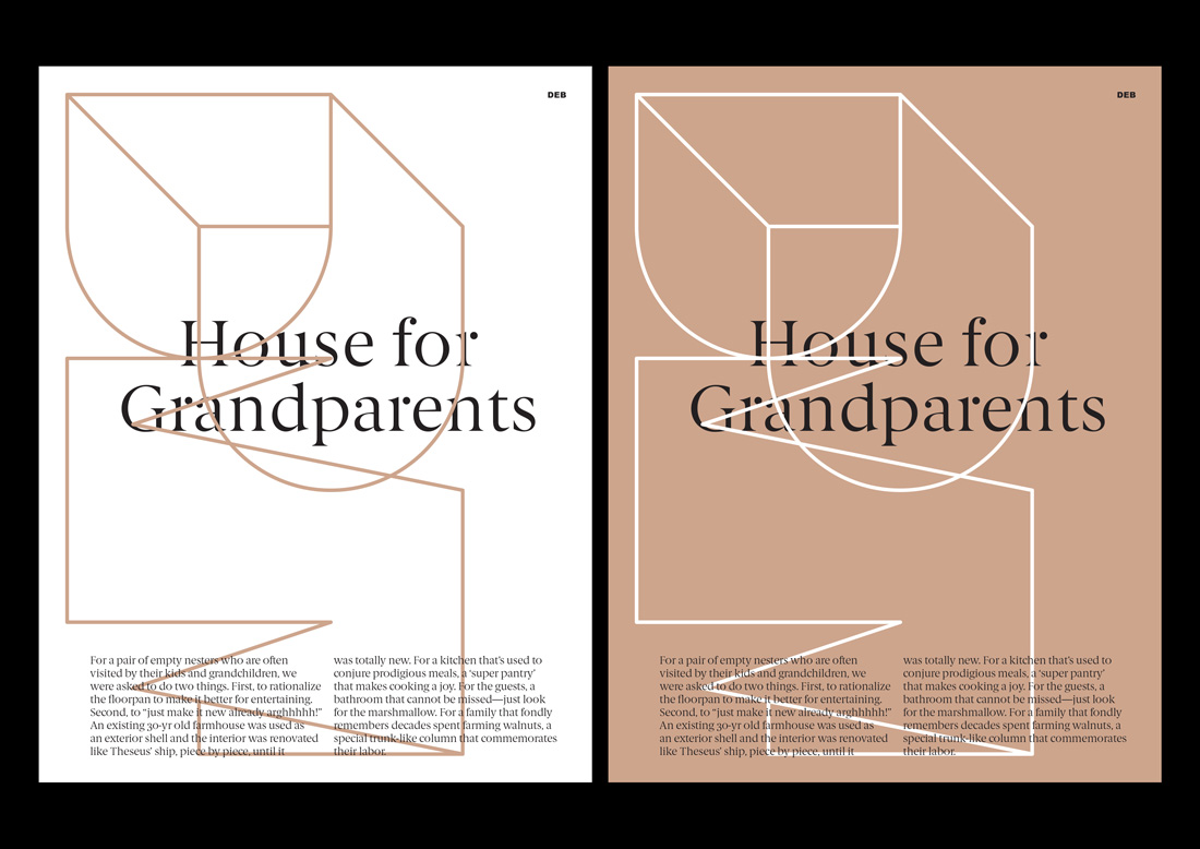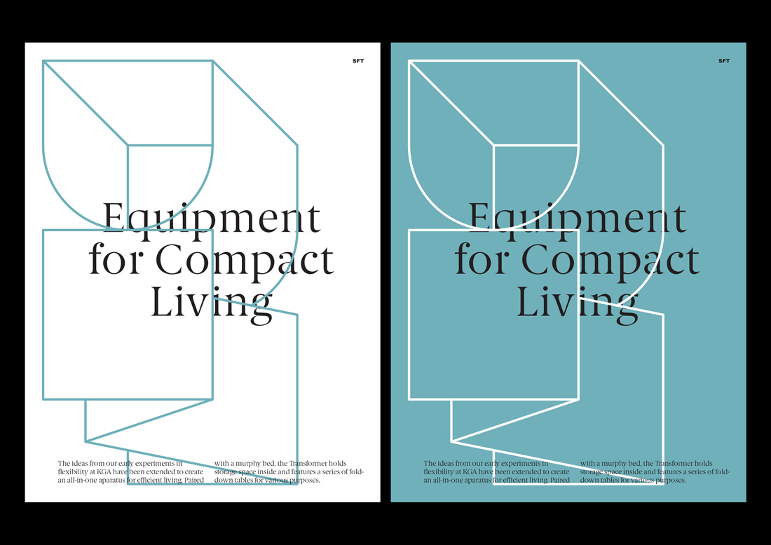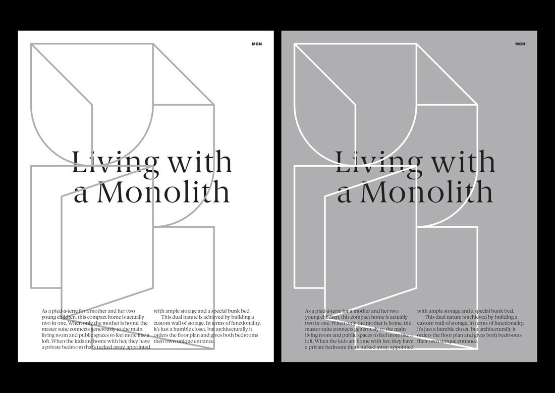 Dash Marshall’s architecture plays with contradictions as old and new, classic and modern, emotional and rational. To visualize these contrasts we added Berlingske to the constructed graphic system.