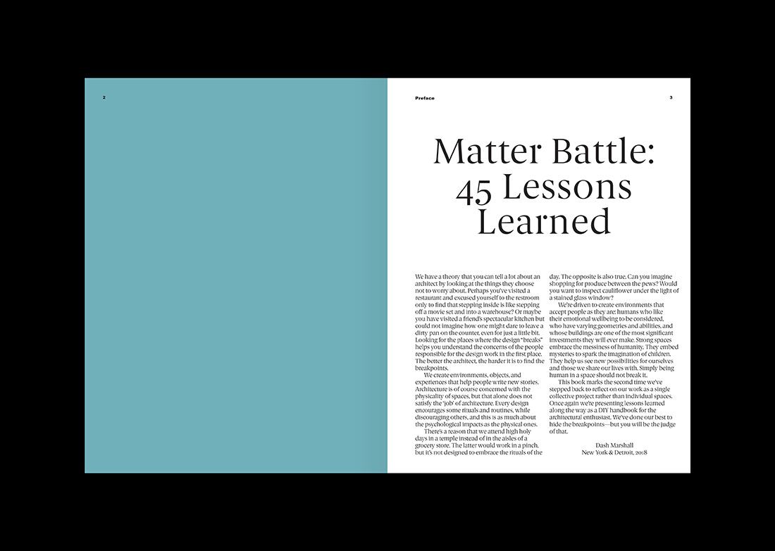 To tell the stories of Dash Marshall we have not just designed their visual identity, but also their website, the book Matter Battles: 45 Lessons Learned and the booklet Small Measures.