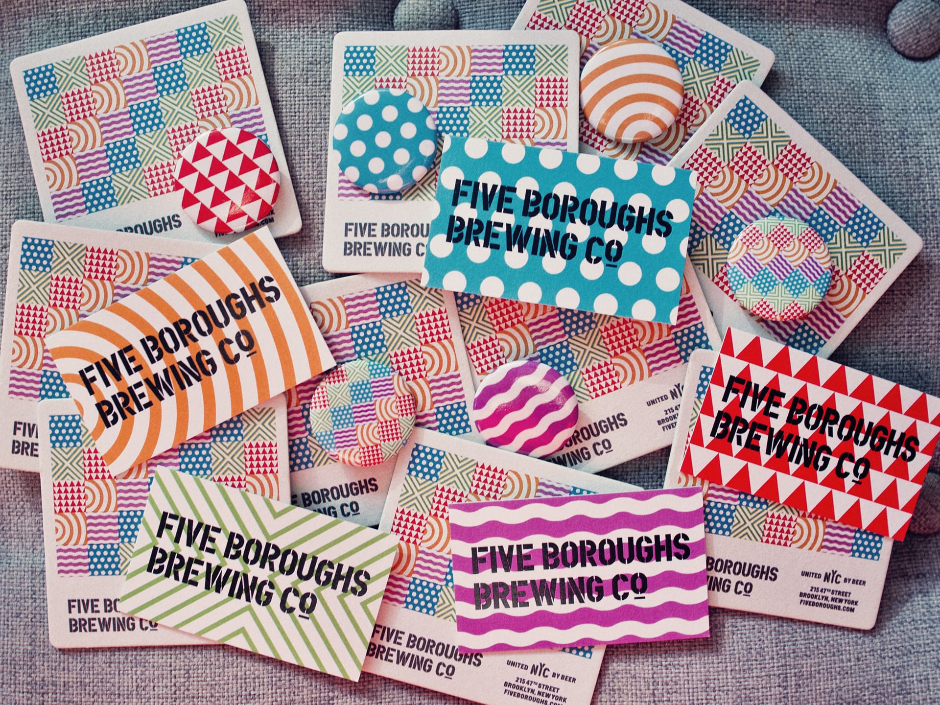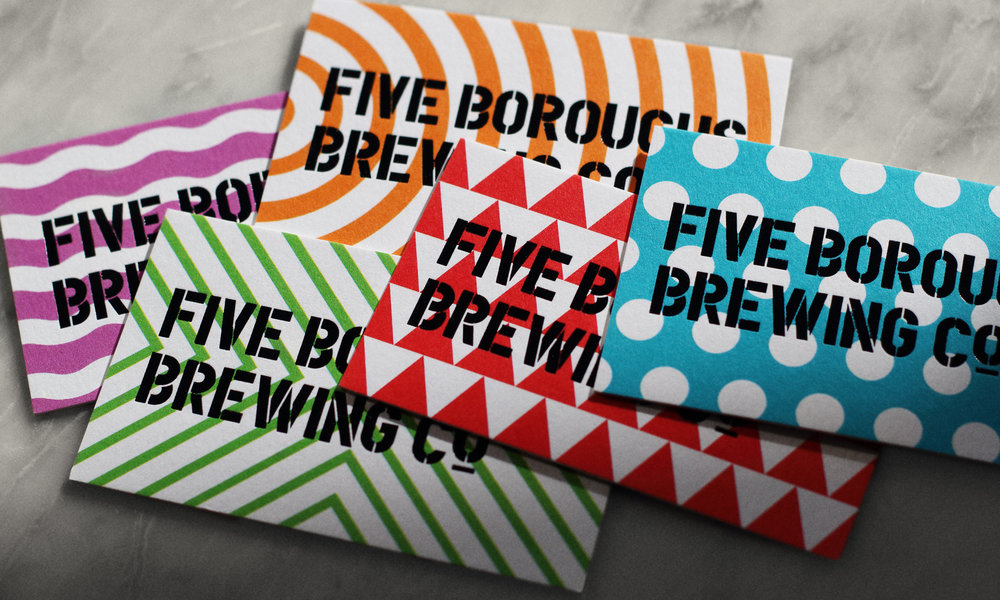 PDU Stencil (a stencil version of a typeface that originally consisted of one single stencil plate) and Ludwig Übele’s Helsinki in use for the branding of Five Boroughs Brewing Co. designed by Studio No.9: