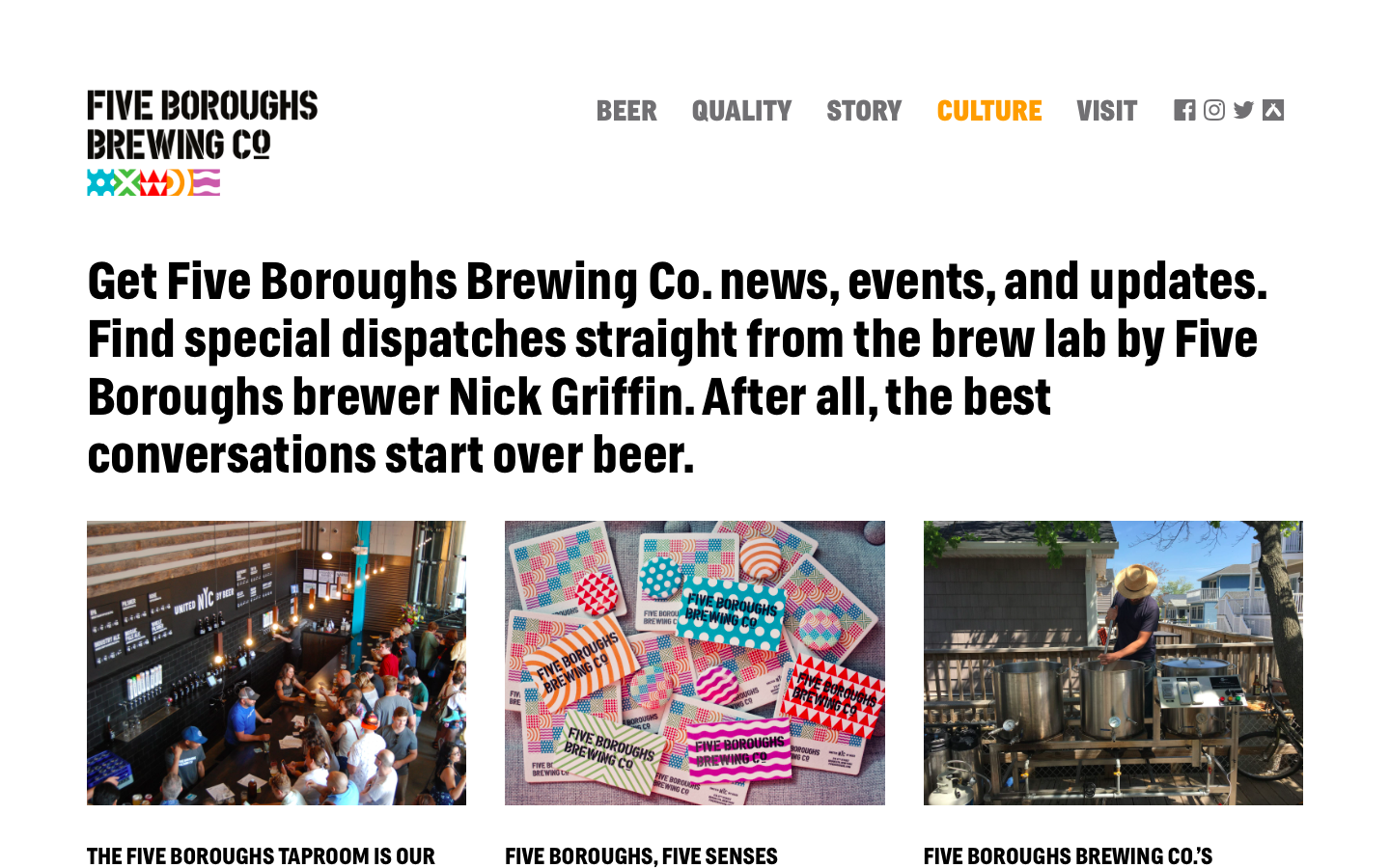 Just like New York City is greater than the sum of its parts, the brewery is bigger than beer — Five Boroughs is all about discovery. They’re a brewery built to celebrate and encourage the exploration of craft beer, the neighborhoods and all the wonders the five boroughs have to offer. Their goal — a community that crosses borders, through sharing experiences and beer.