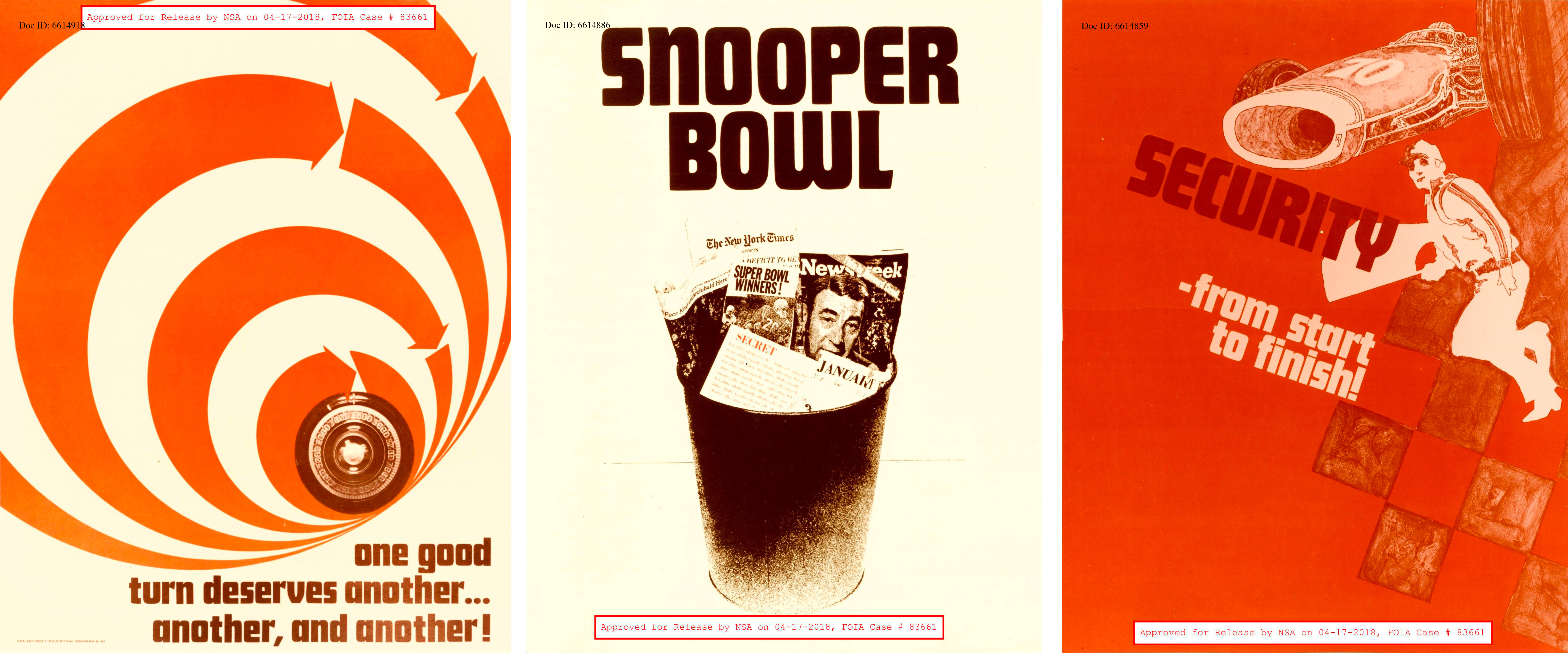 Over 100 motivational posters from inside NSA headquarters […] have been revealed by a Freedom of Information Act request, delivering a significant and penetrating strike into the canon of graphics design.