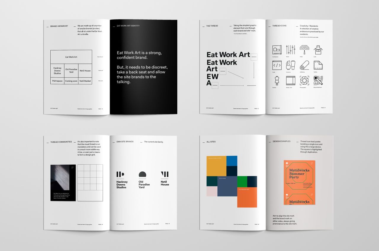 We wanted to represent the diversity of the creative community whilst bringing structure to an evergrowing organisation. The parent brand is confident but modest, taking a back seat and allowing the site brands to do the talking. Strong colour palettes and typographic approaches help to keep the sites’ communication to be individual and playful, whilst staying part of the Eat Work Art family.