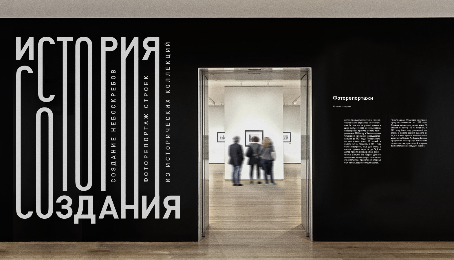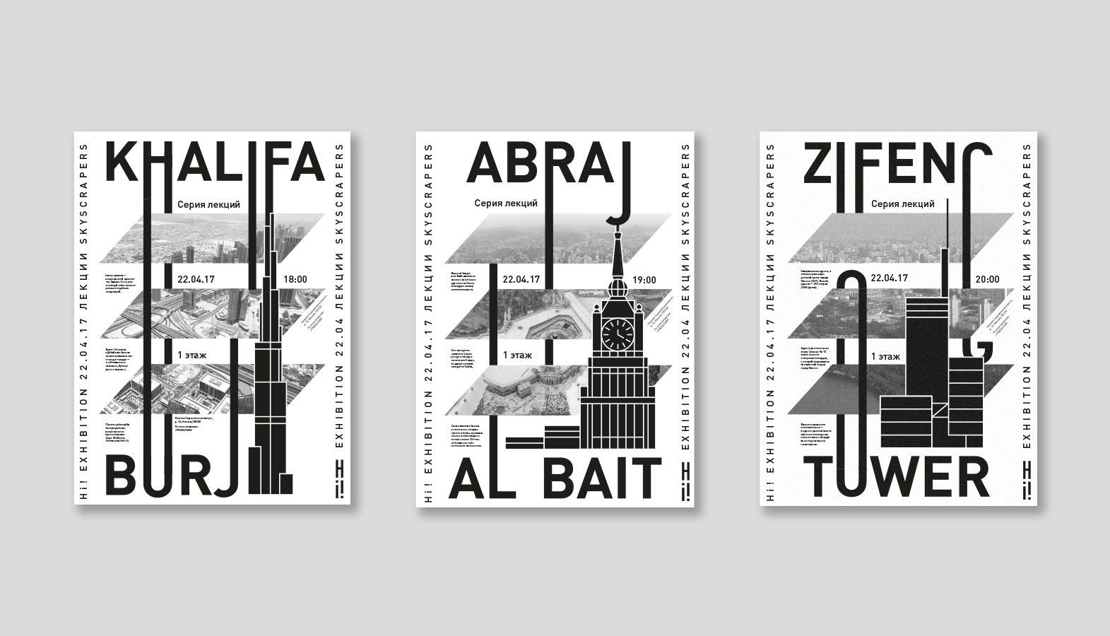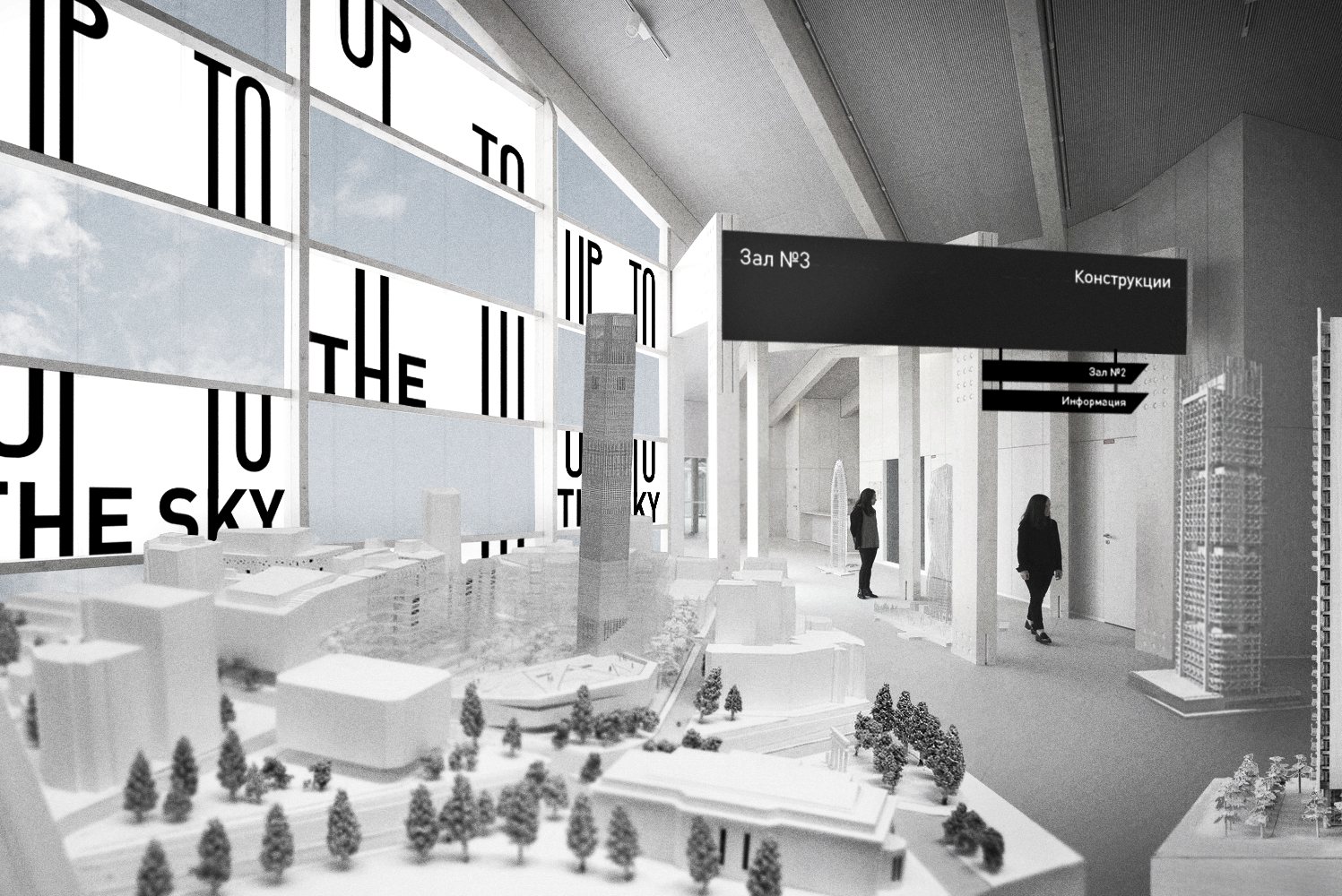 Fictional designs for an exhibition (see the full project at Behance). For longer than we can remember, humanity is trying to reach the sky. Skyscrapers are the most complex architectural objects. Design of the buildings is the main engineering problem, but it has found many solutions in the modern world. The purpose of the exhibition is to show people the achievements of architects in this difficult job and tell about how humanity has passed long way to the sky.